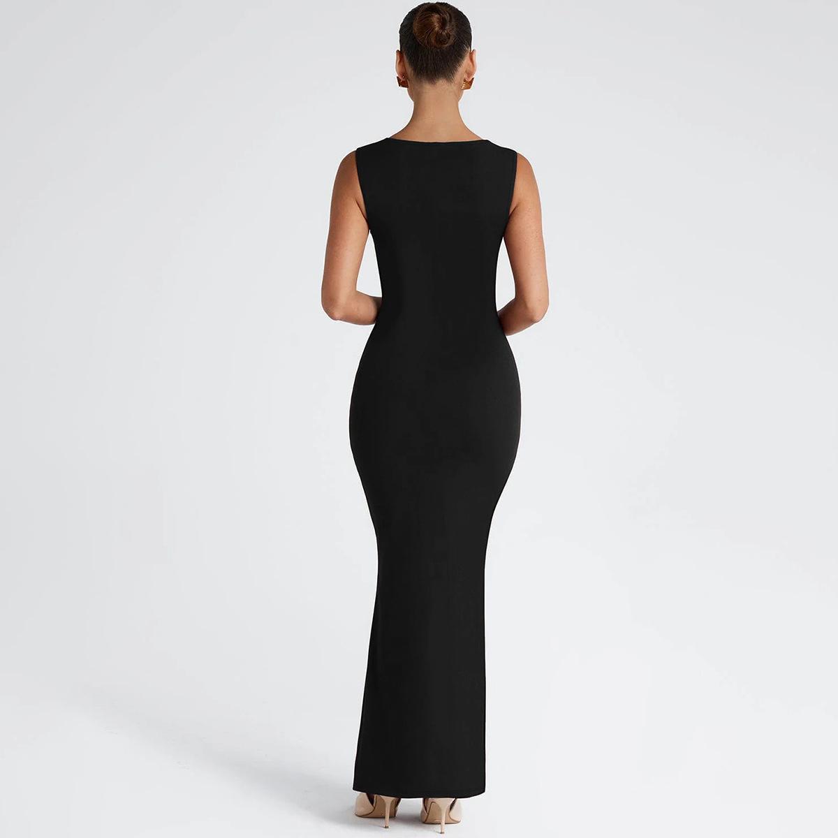 2025 Exportación Europea y Americana Nueva Moda Elegante Slim Cuello Cuadrado Slim Sin Mangas Amazon Vestido Slim Largo