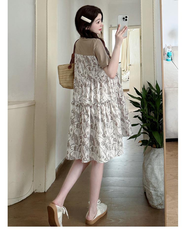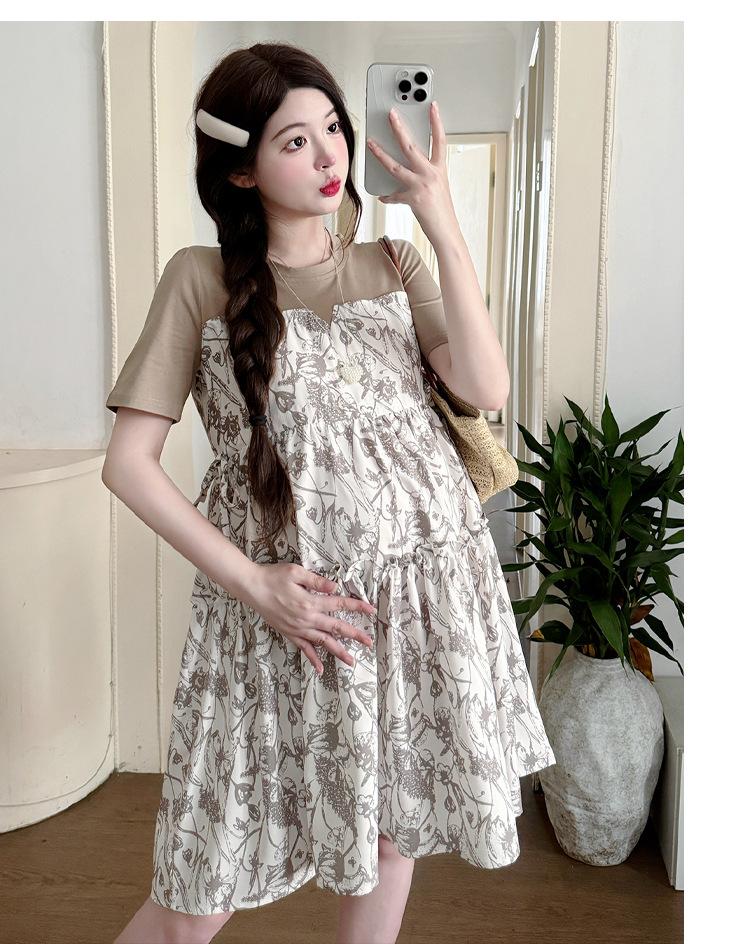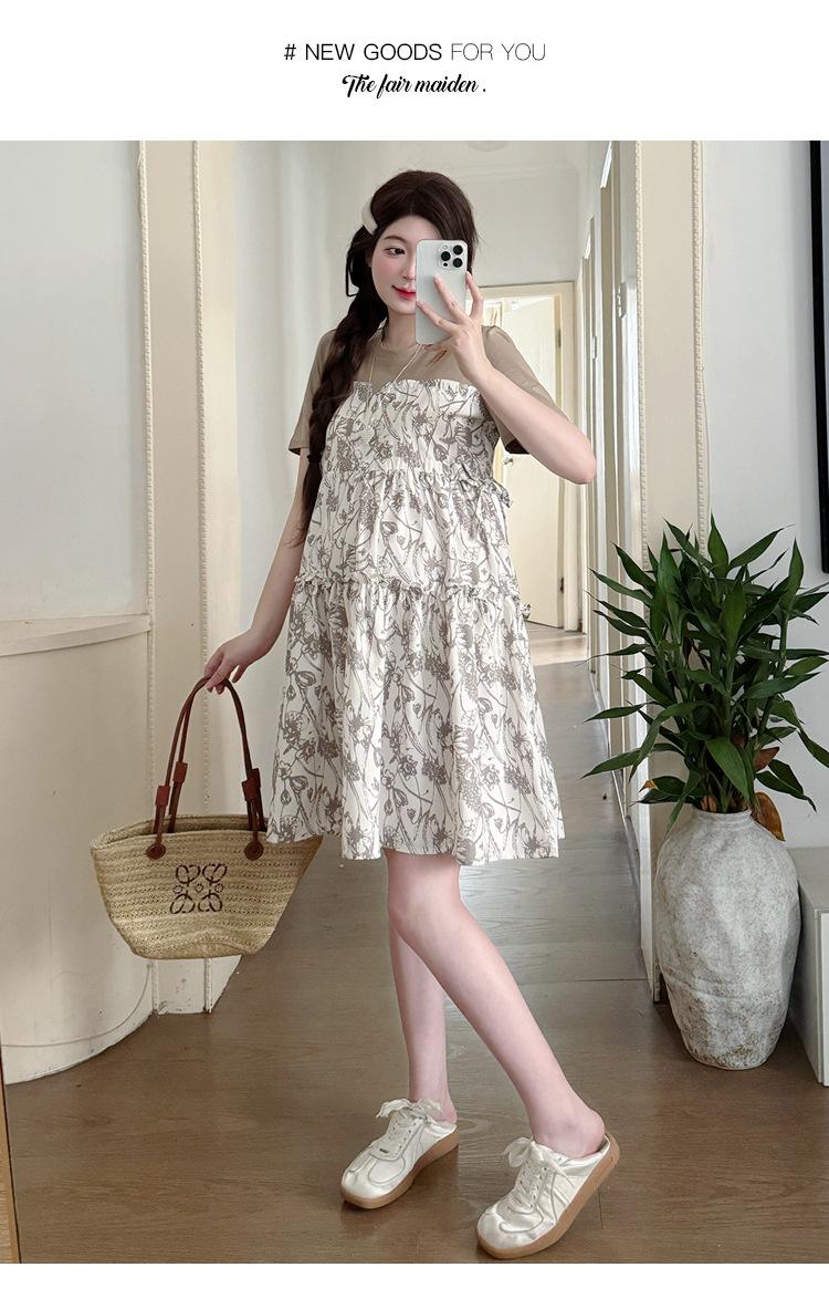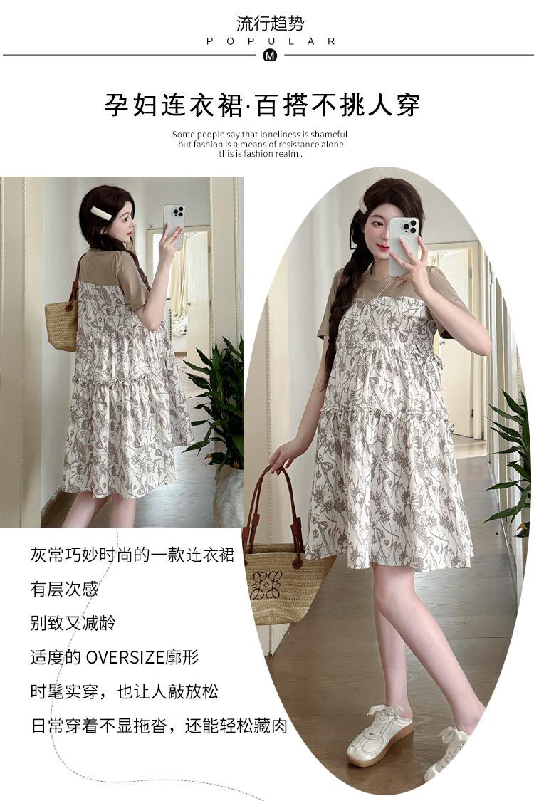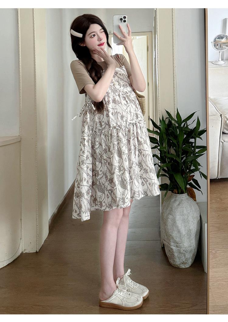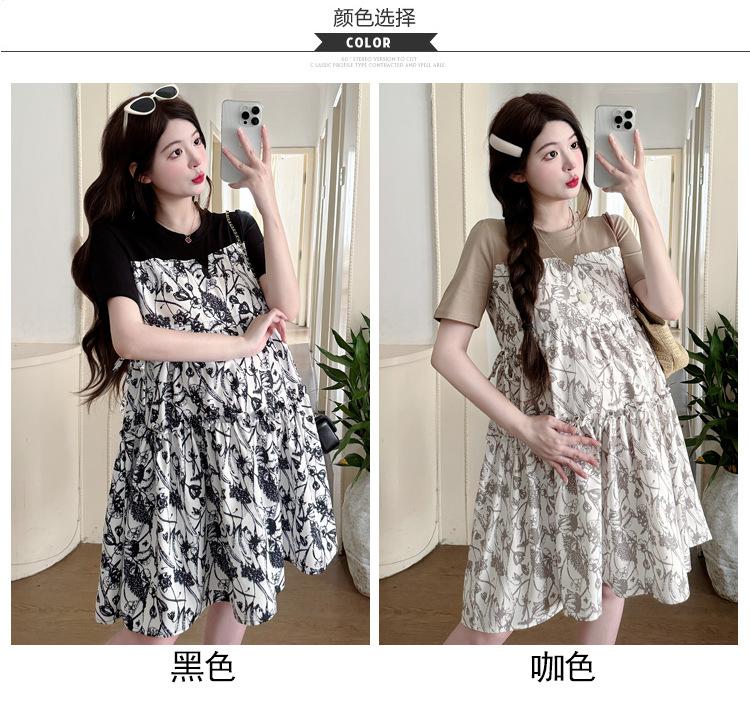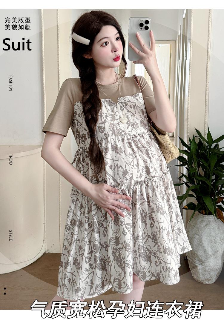 En Stock 2025 Verano Ropa de Maternidad Elegante Adelgazante Falso Vestido Floral de Maternidad de Dos Piezas