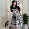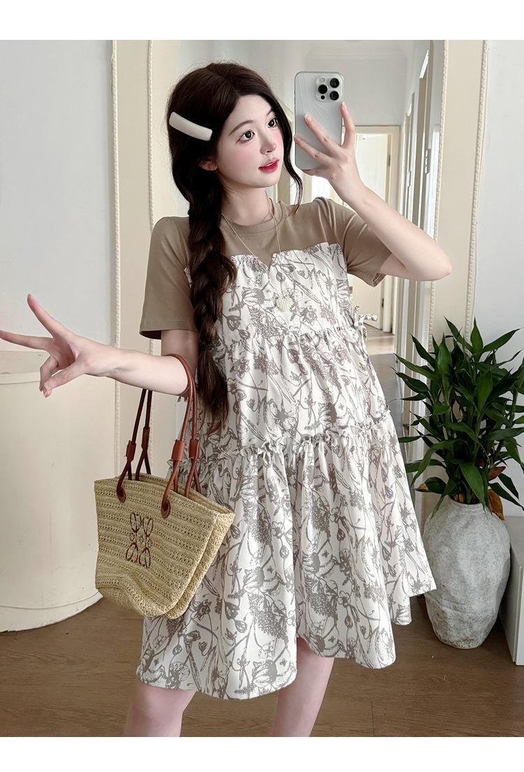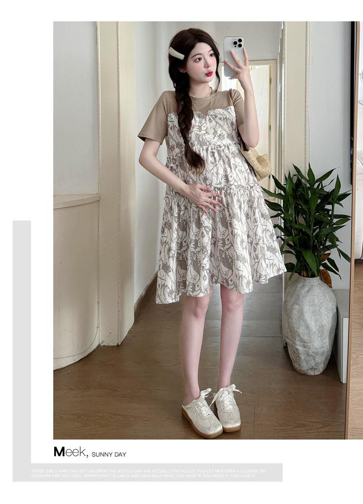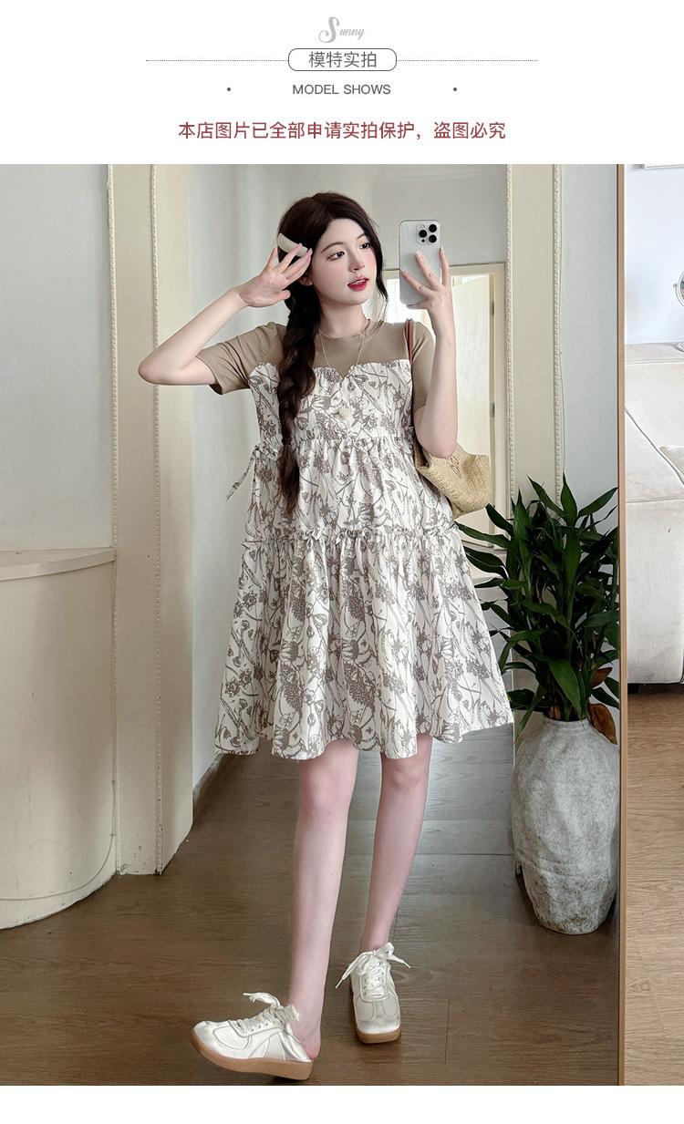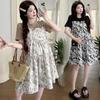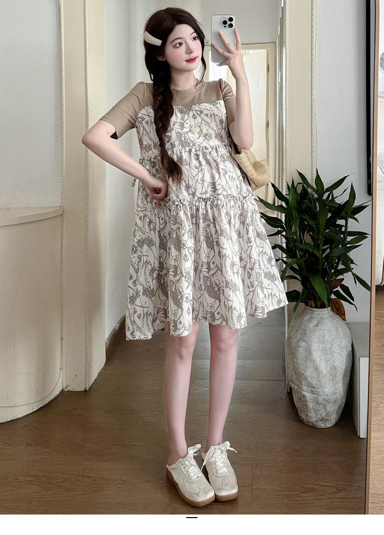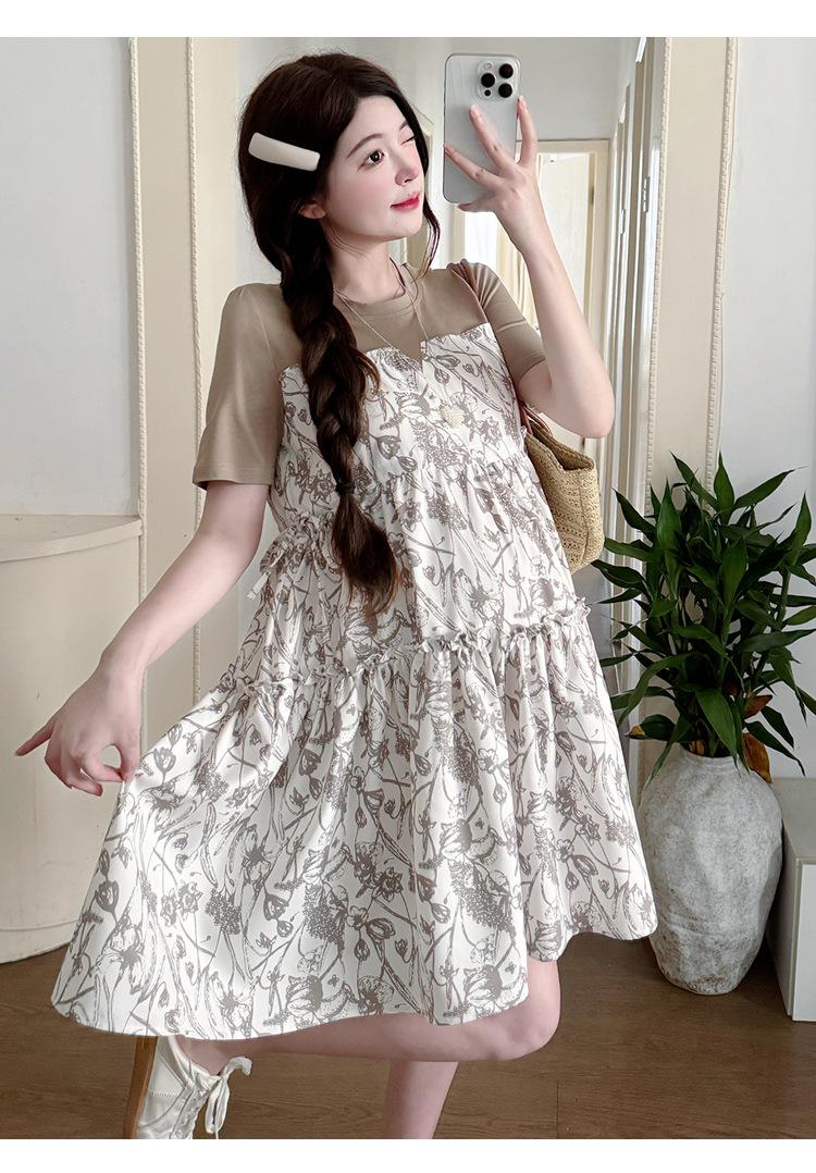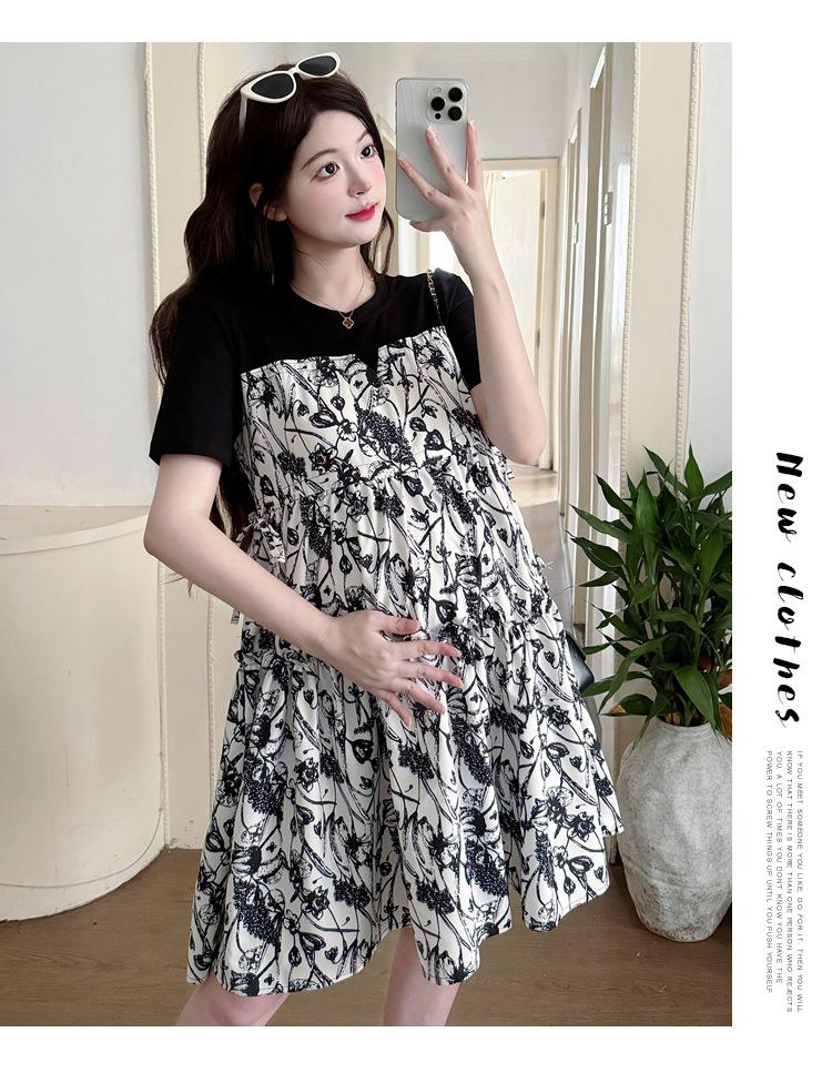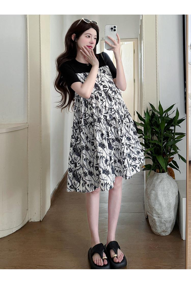 En Stock 2025 Verano Ropa de Maternidad Elegante Adelgazante Falso Vestido Floral de Maternidad de Dos Piezas