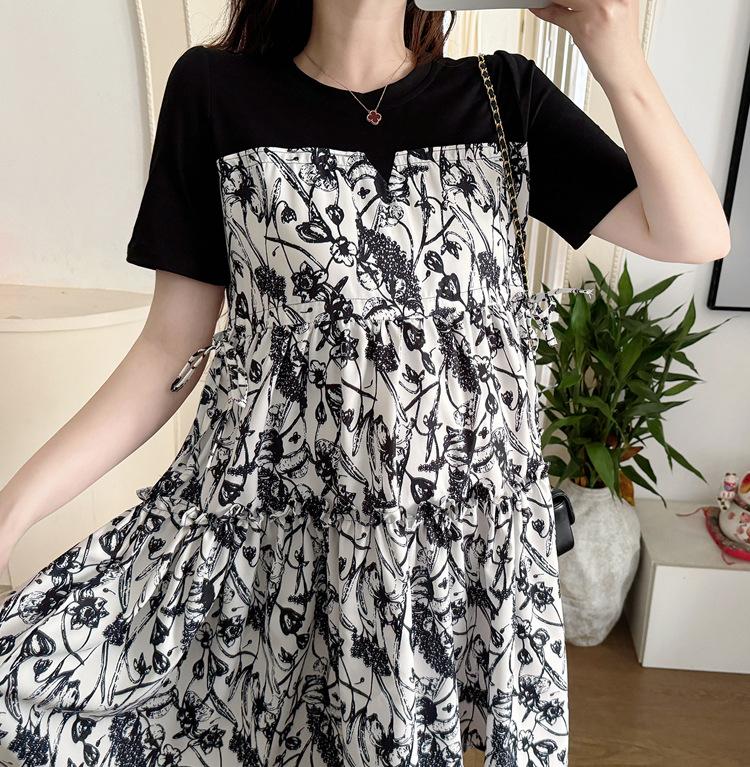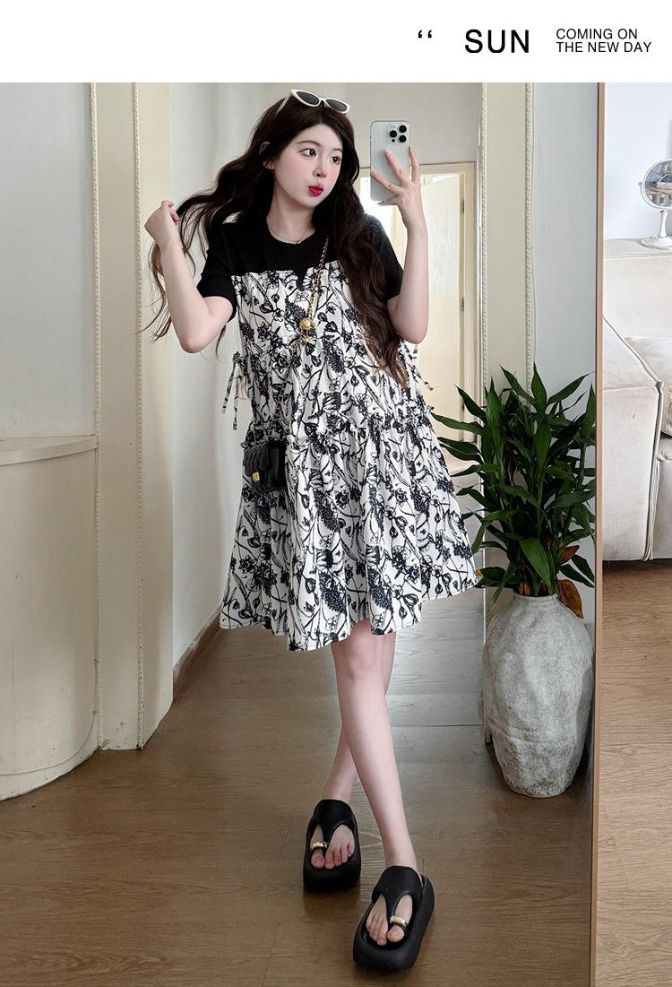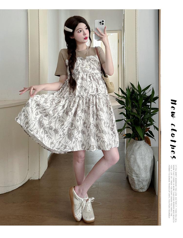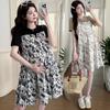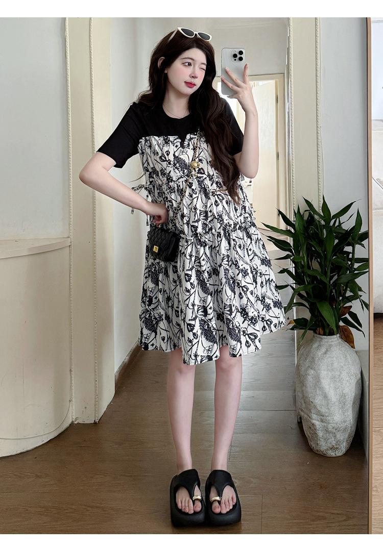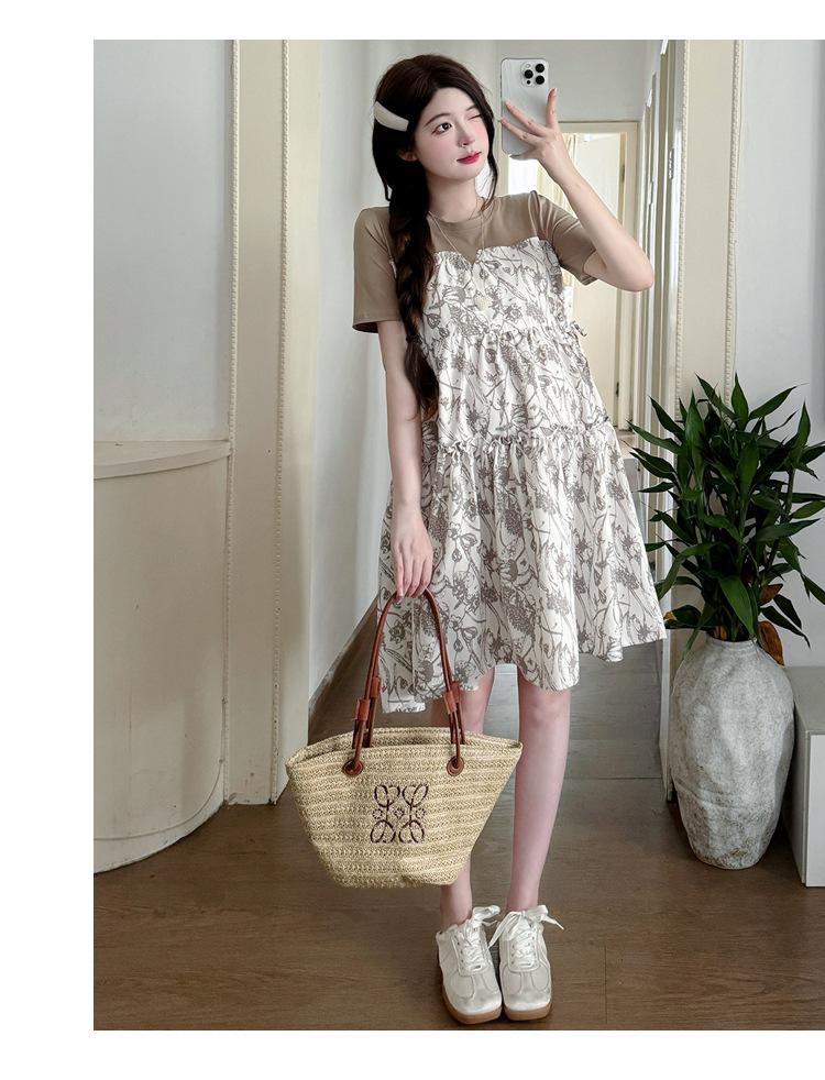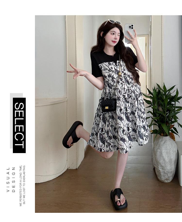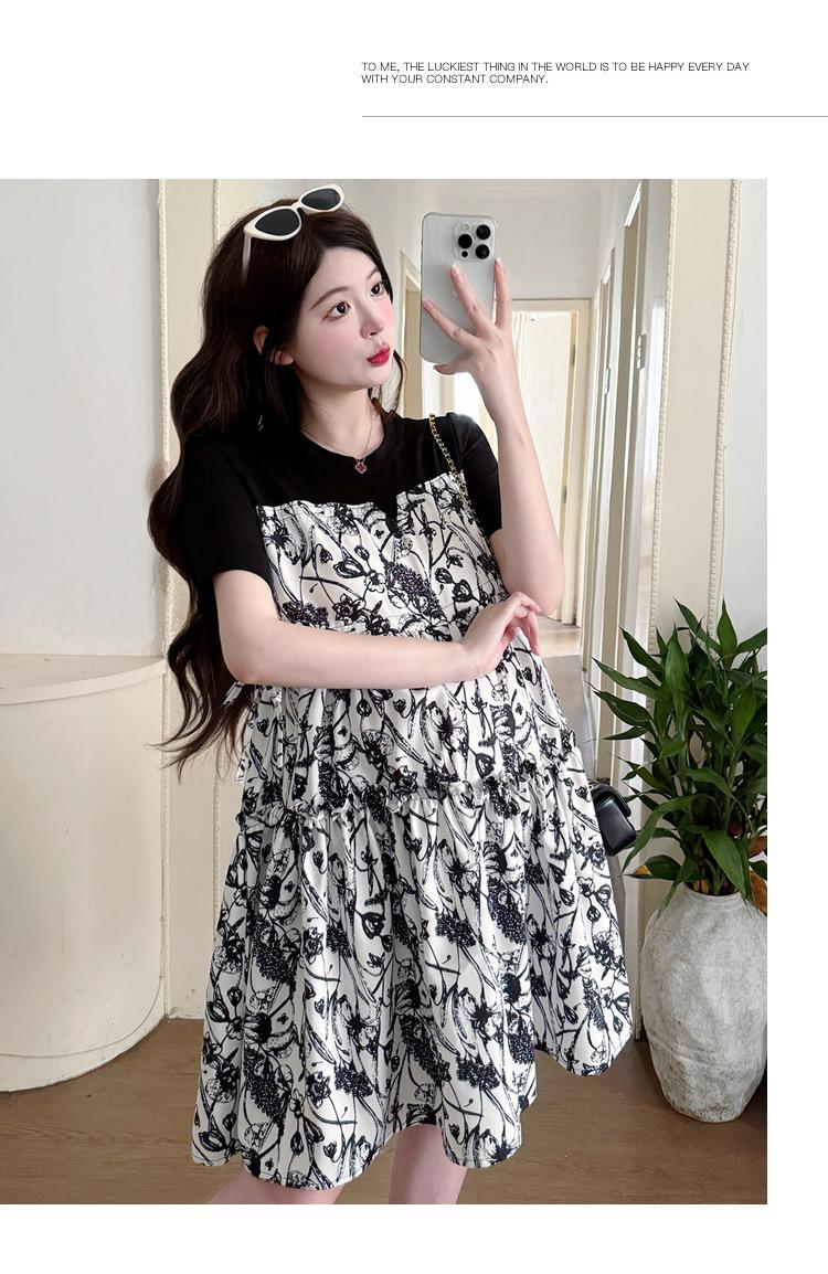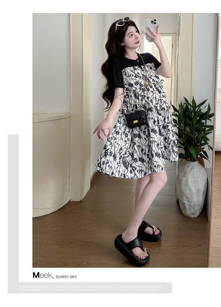 En Stock 2025 Verano Ropa de Maternidad Elegante Adelgazante Falso Vestido Floral de Maternidad de Dos Piezas