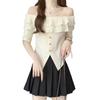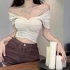 Estilo Deseo Puro Dulce Sexy Suéter de Punto con Hombros Descubiertos Diseño de Verano para Mujer Nicho Manga Corta para Llevar Debajo Top Corto