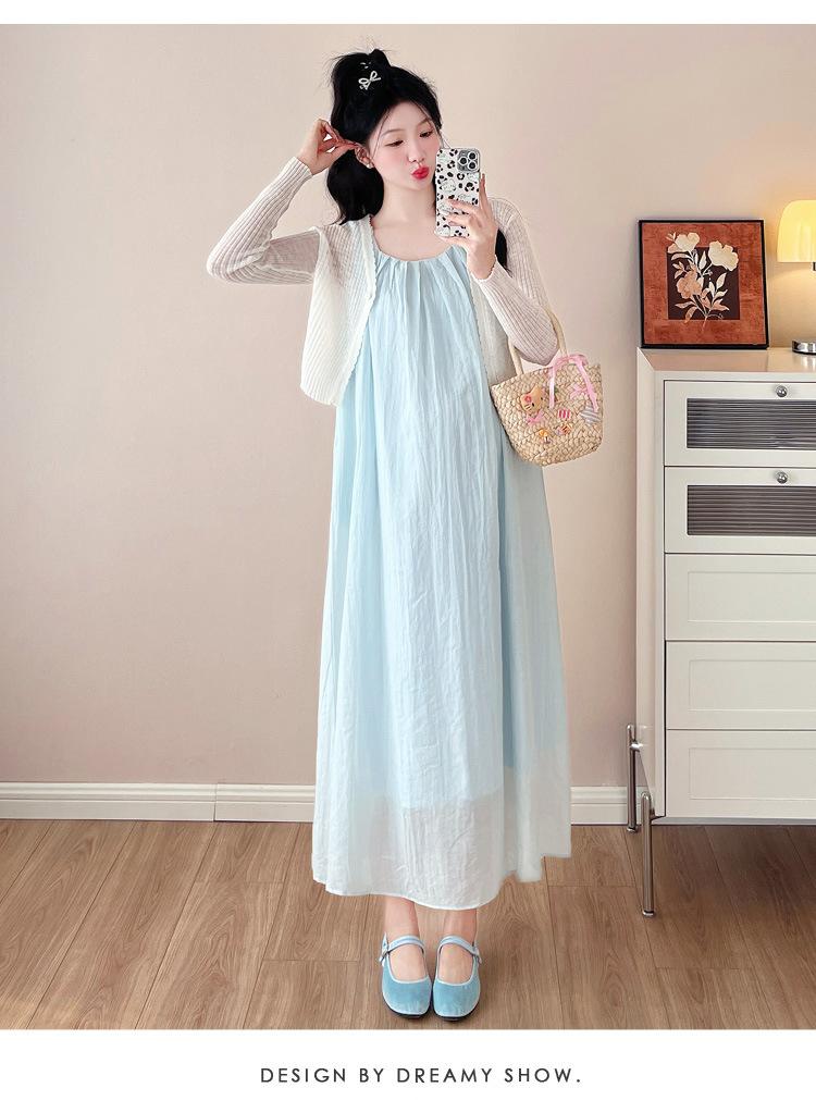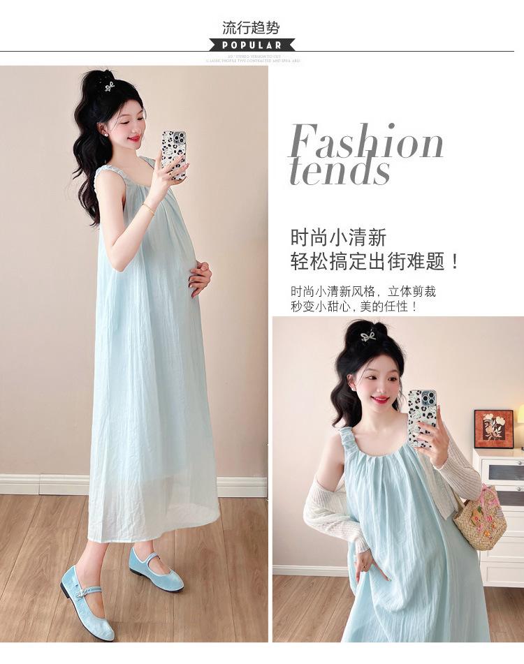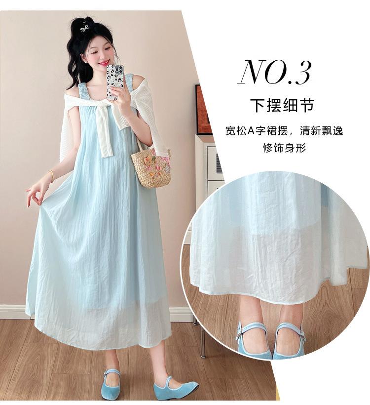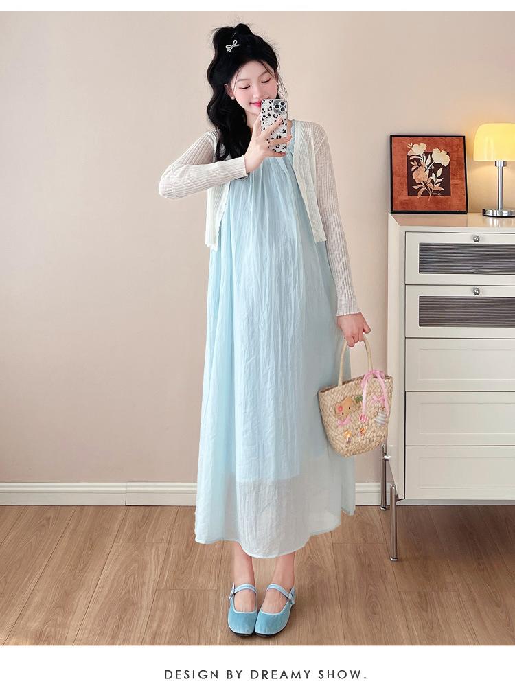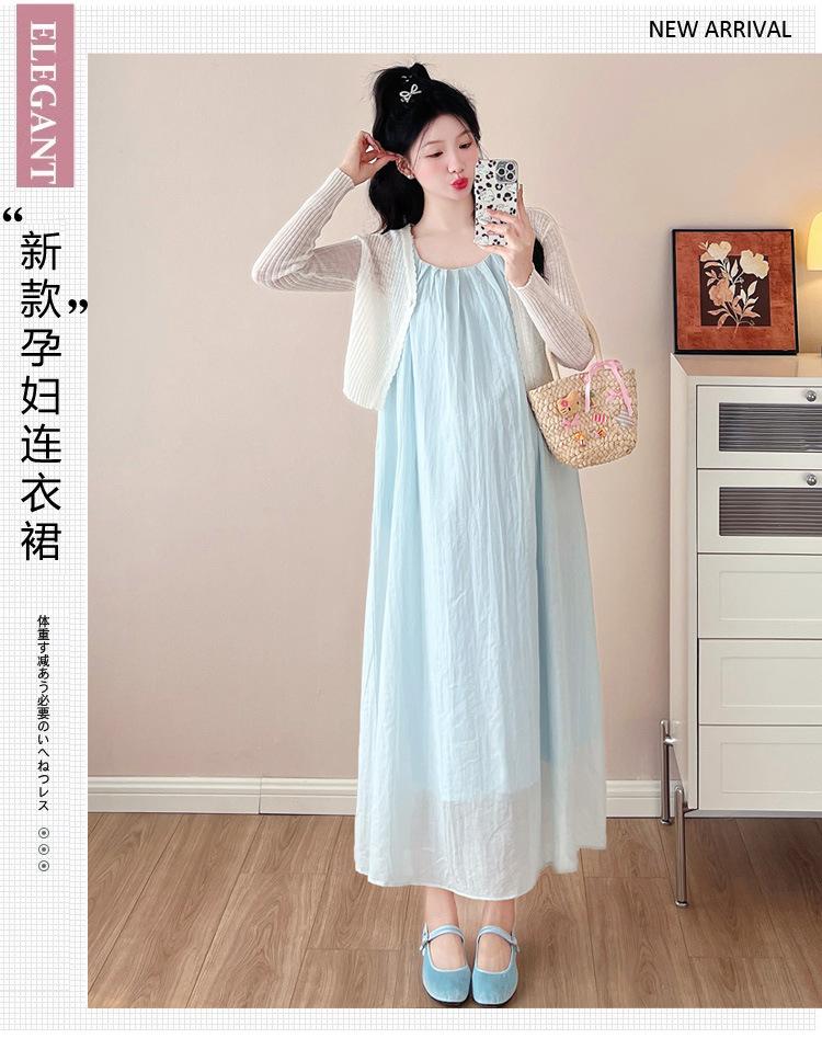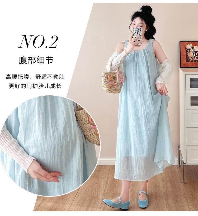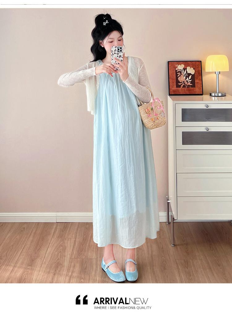 Vestido de Verano de Maternidad Nuevo Vestido Chaleco de Maternidad de Gasa + Cárdigan Pequeño Vestido de Maternidad de Dos Piezas