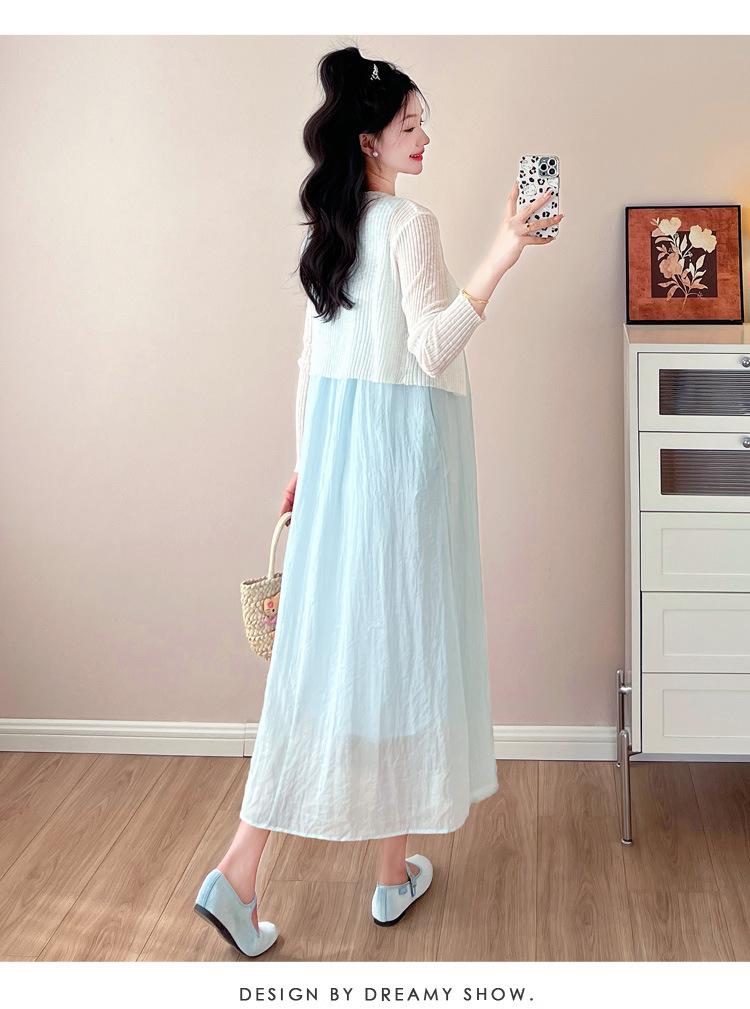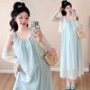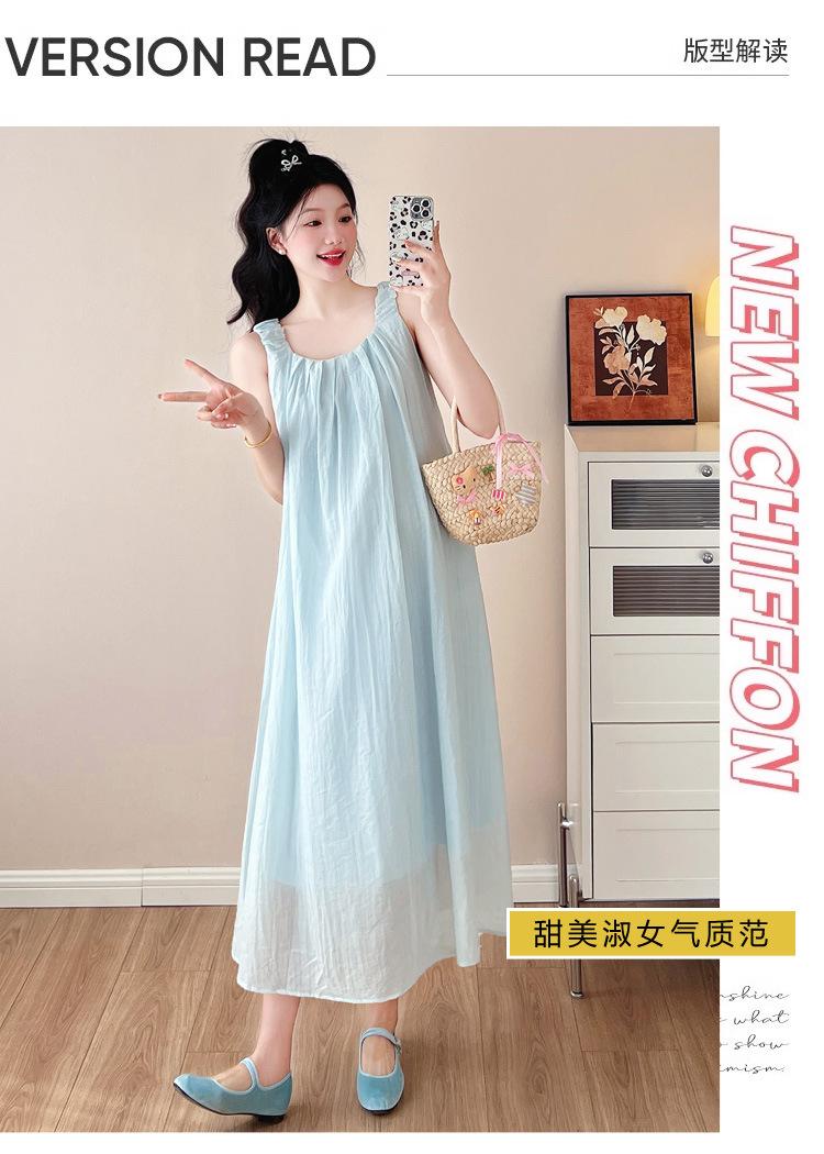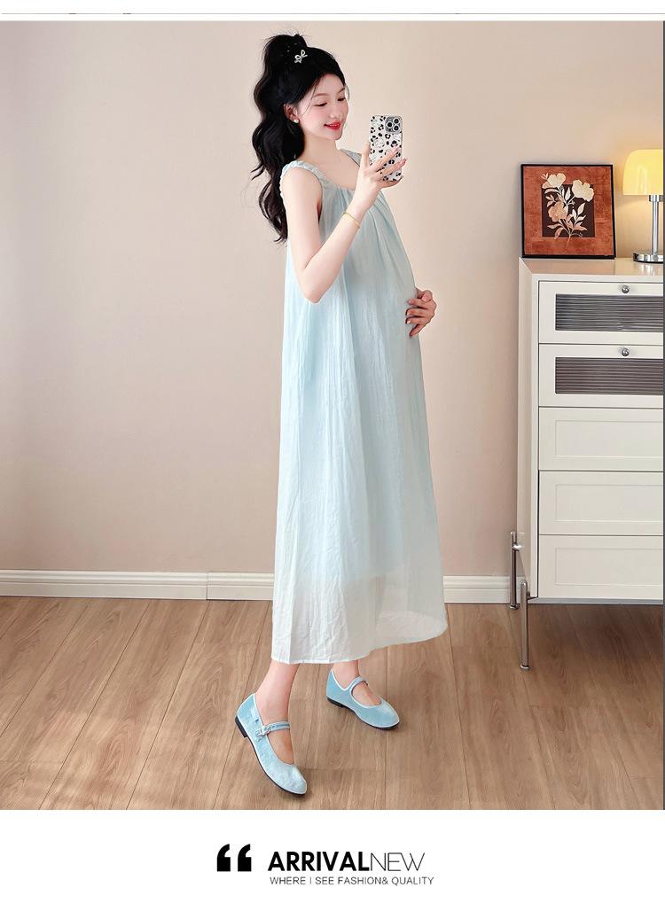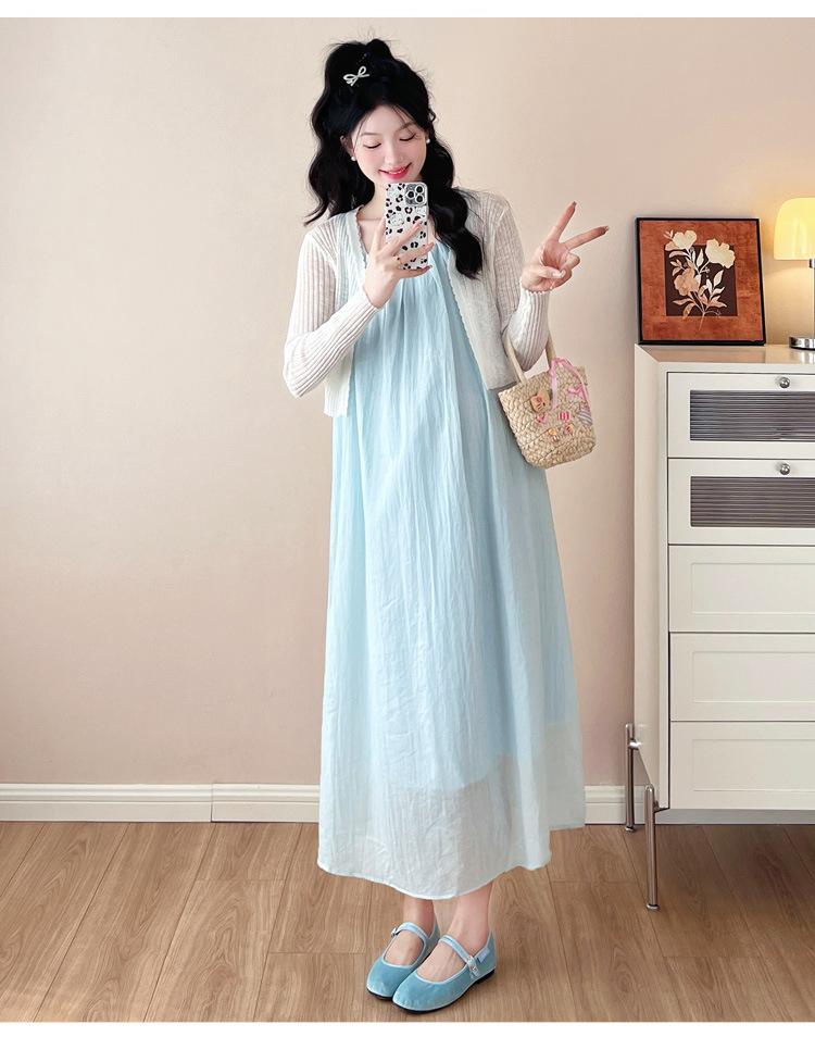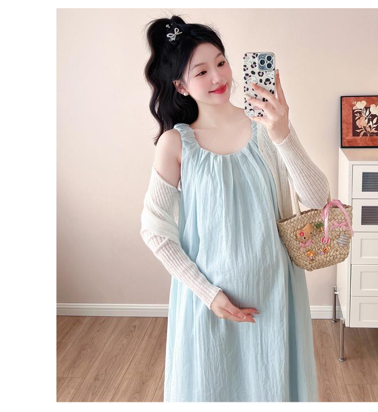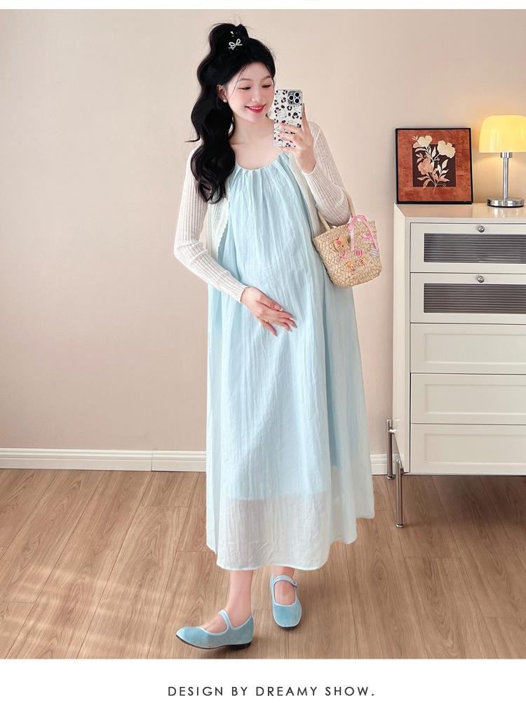 Vestido de Verano de Maternidad Nuevo Vestido Chaleco de Maternidad de Gasa + Cárdigan Pequeño Vestido de Maternidad de Dos Piezas