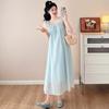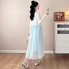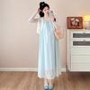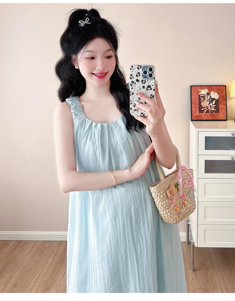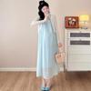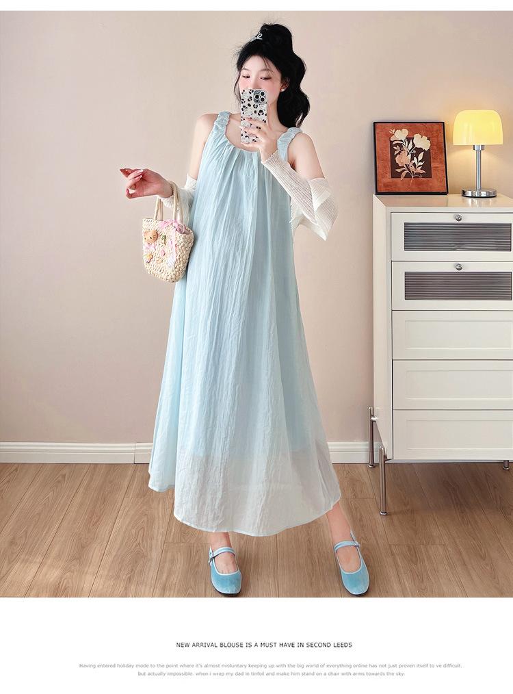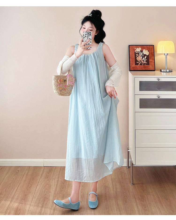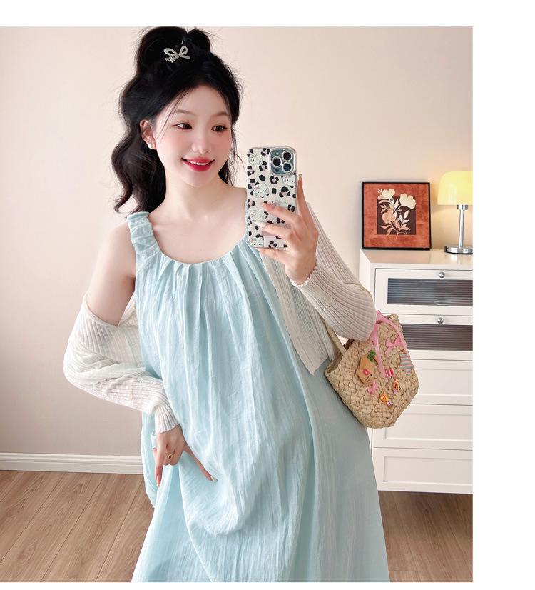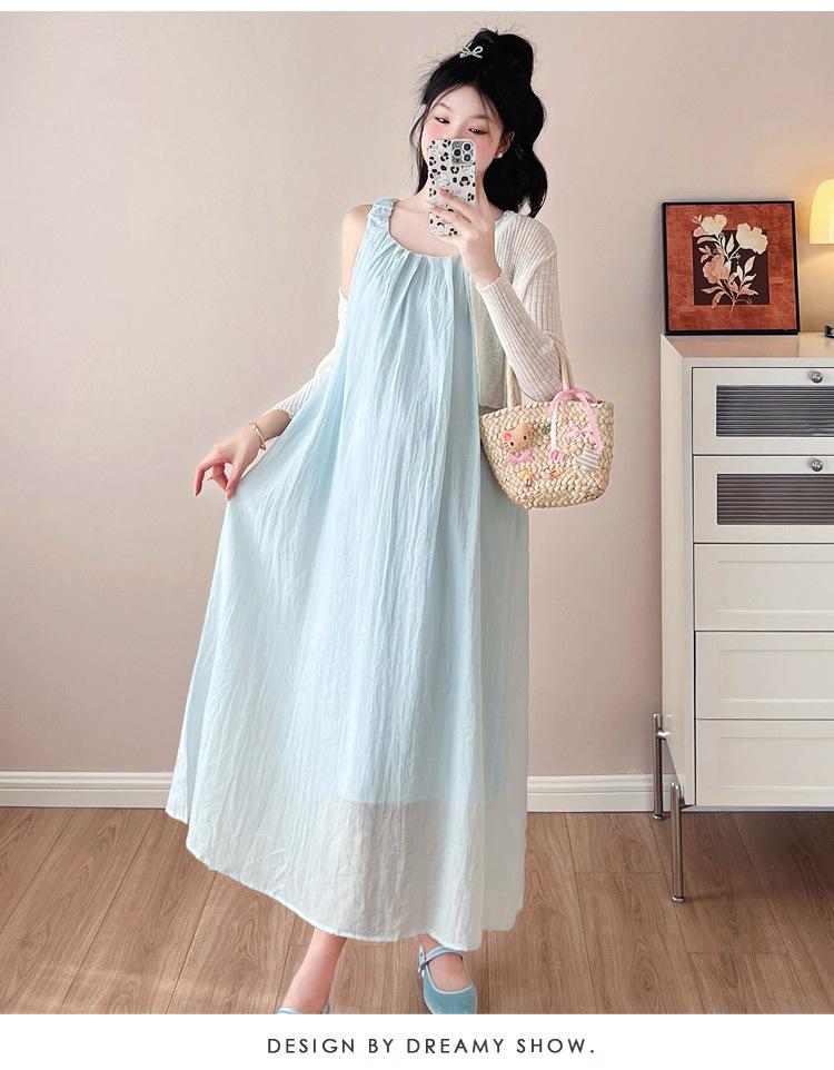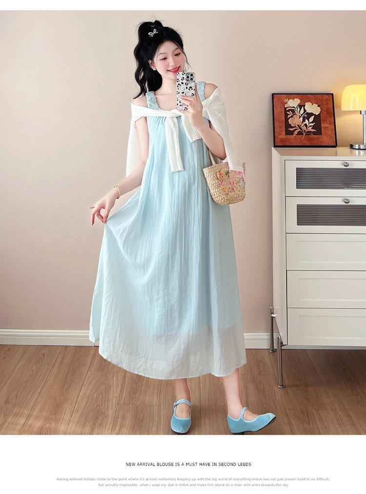 Vestido de Verano de Maternidad Nuevo Vestido Chaleco de Maternidad de Gasa + Cárdigan Pequeño Vestido de Maternidad de Dos Piezas