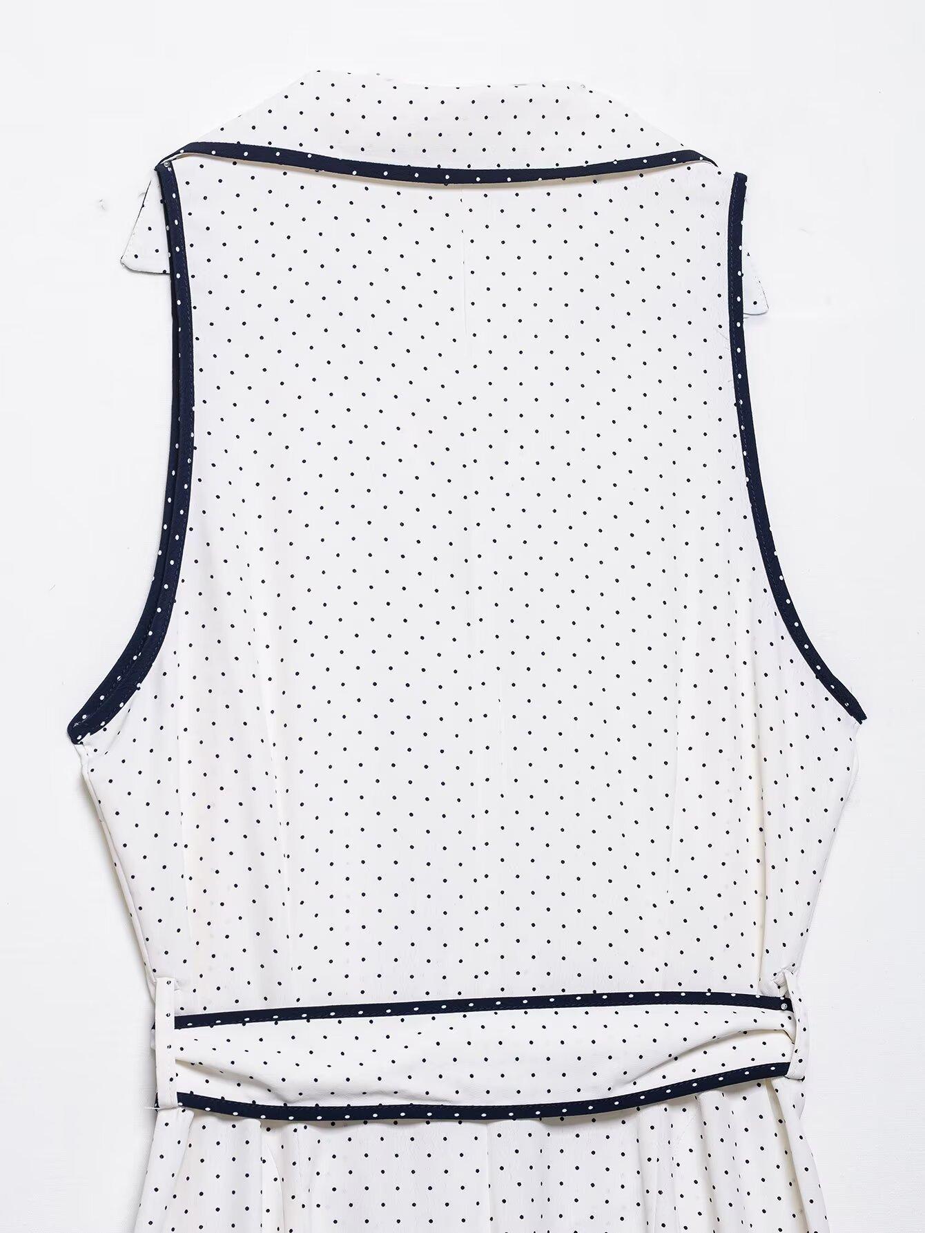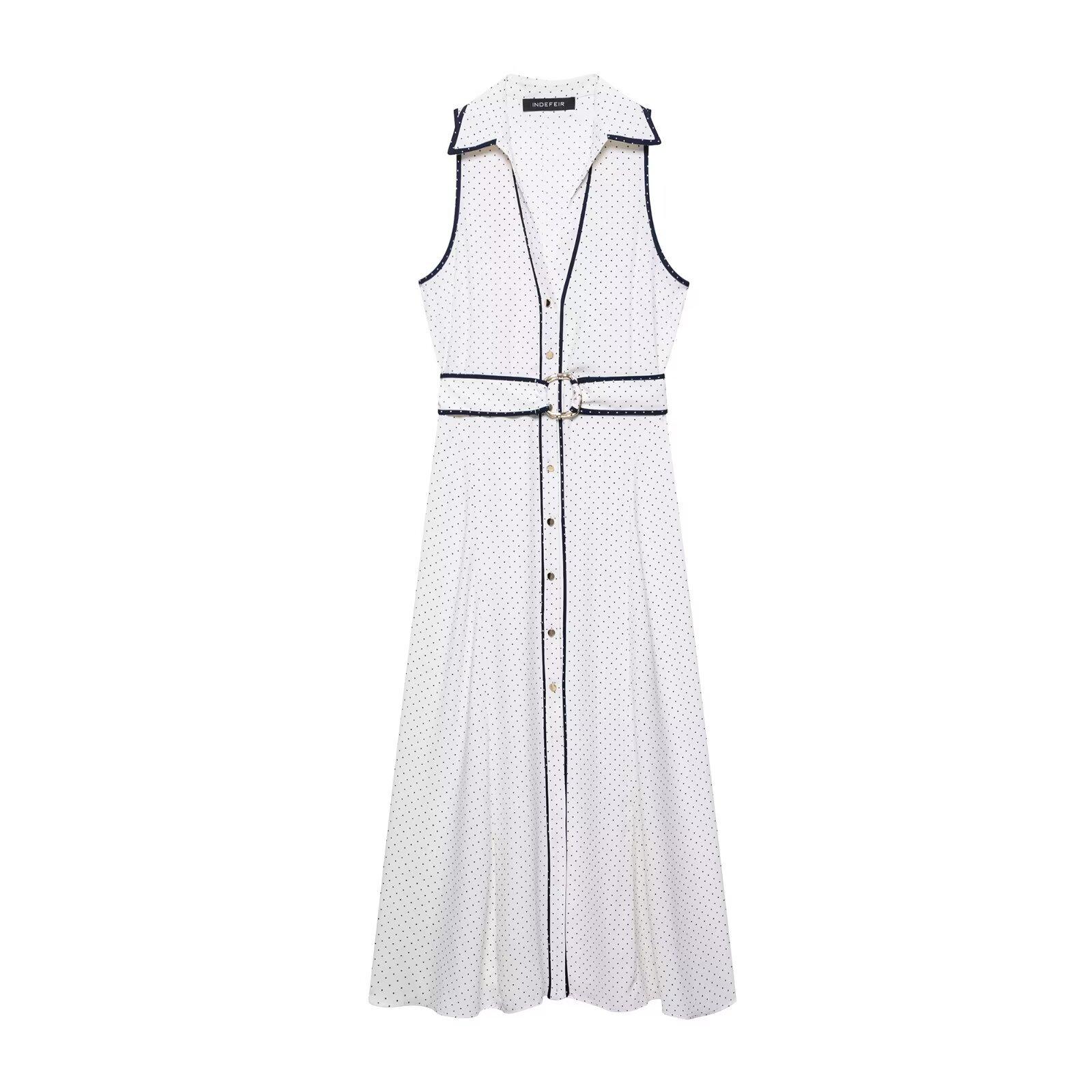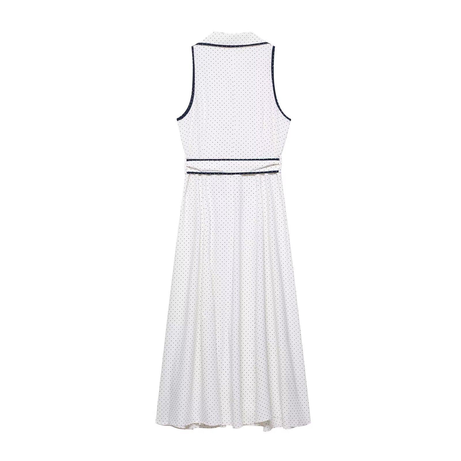 2025 Nuevo Verano para Mujer Solapa Sin Mangas Lunares Estilo Camisa Slim Vestido Midi Estilo Transfronterizo Europeo y Americano