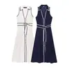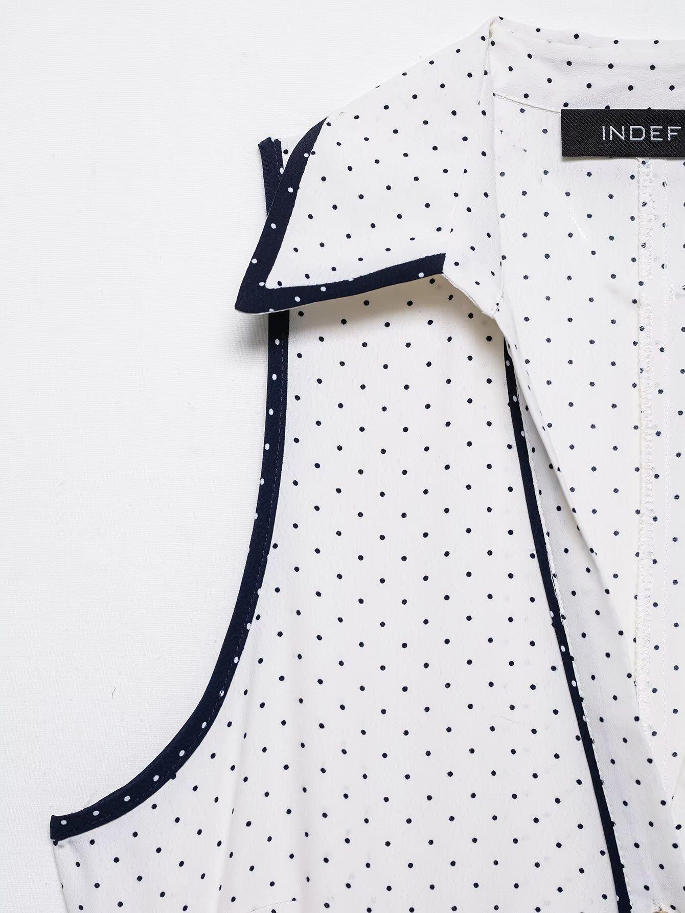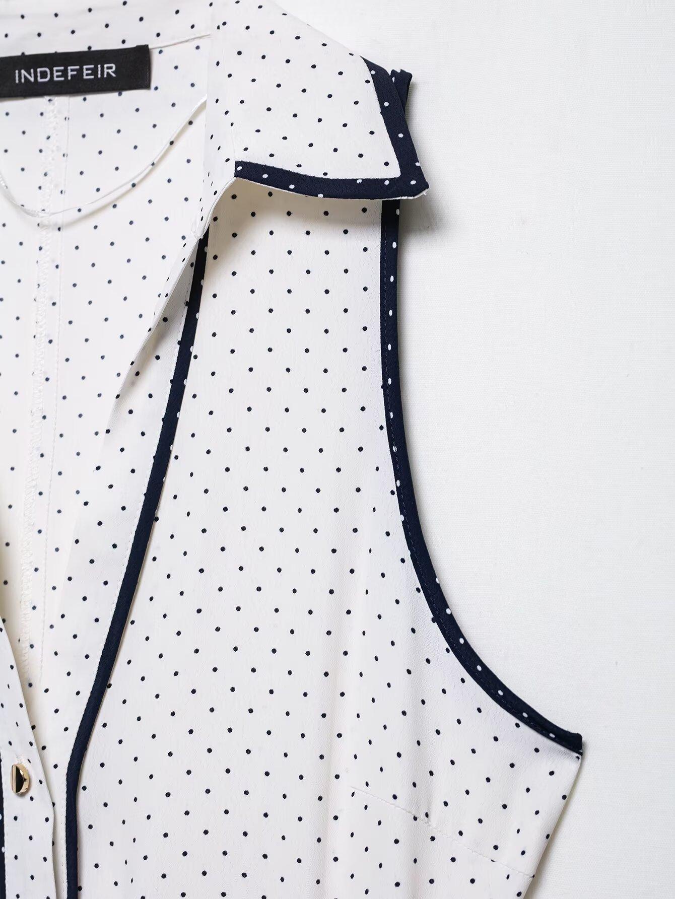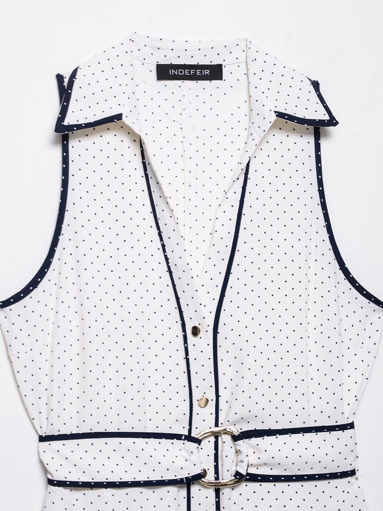 2025 Nuevo Verano para Mujer Solapa Sin Mangas Lunares Estilo Camisa Slim Vestido Midi Estilo Transfronterizo Europeo y Americano