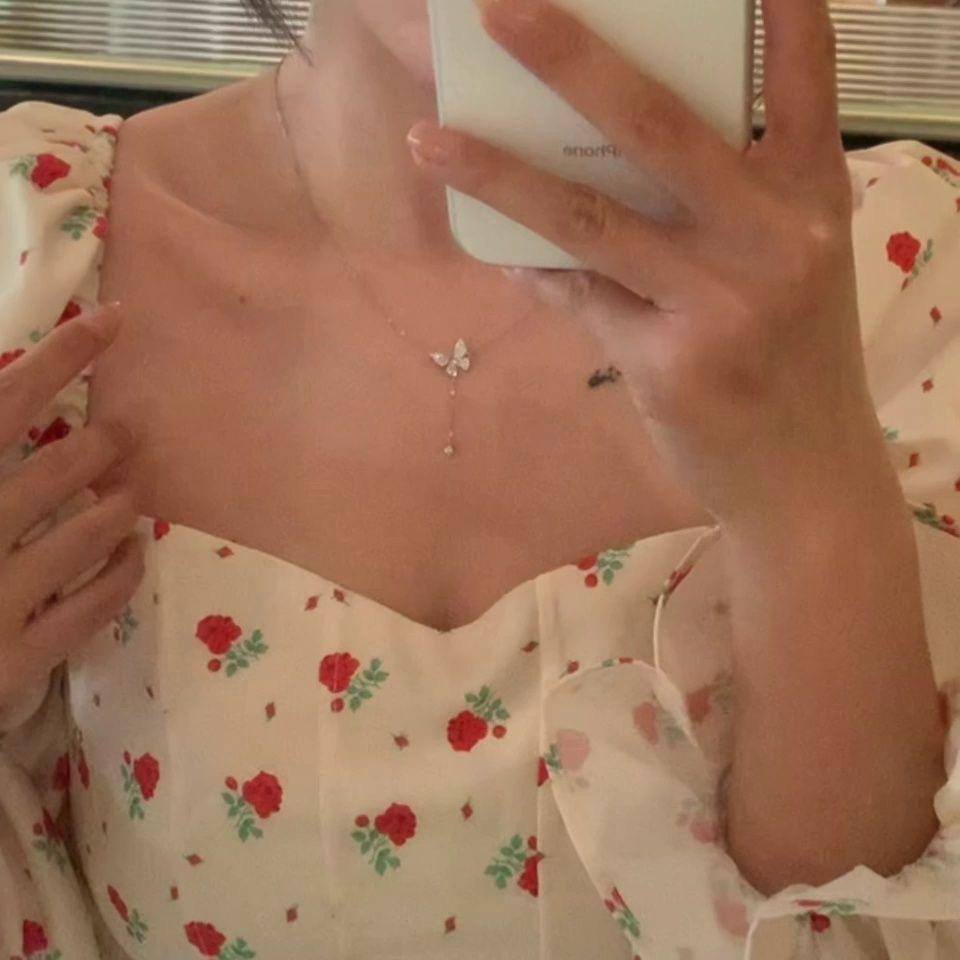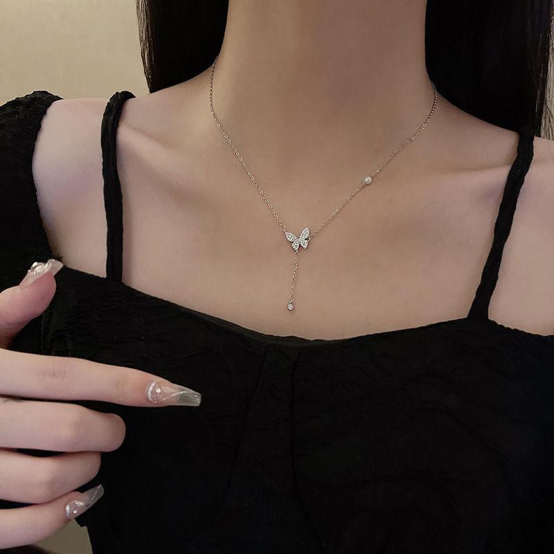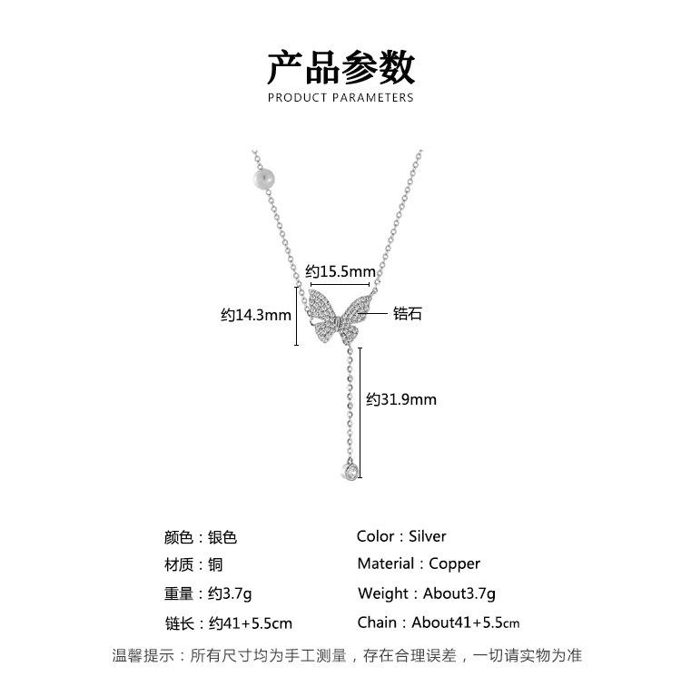 Collar de Borla de Mariposa de Perla Imitación para Mujer Super Hada Verano Cadena Clavícula Moda Elegante Viento Rojo de Internet Colgante de Zircón Cobre