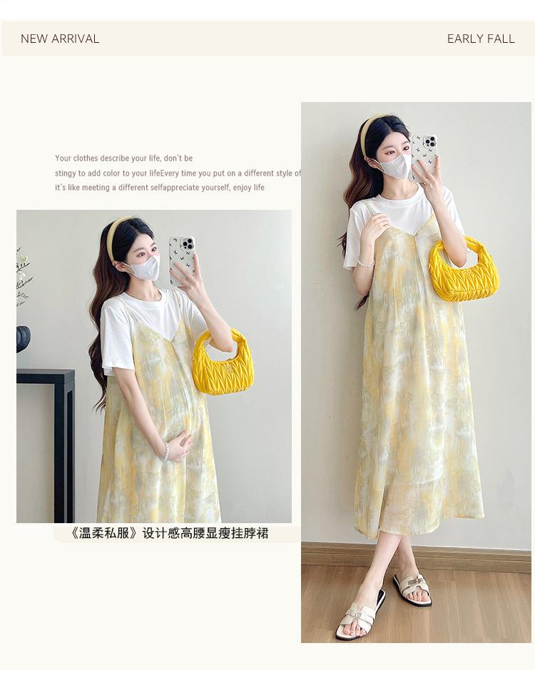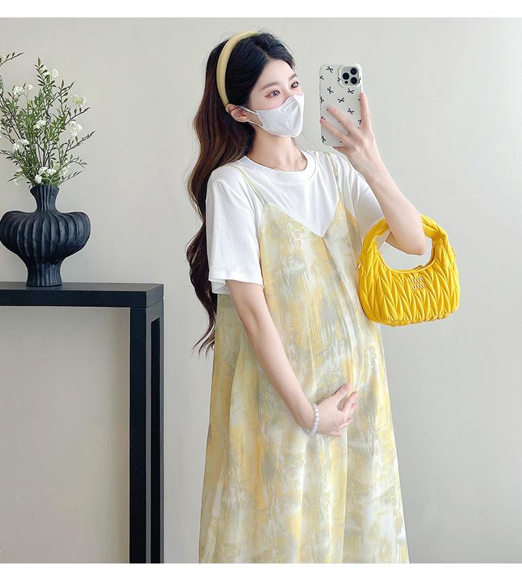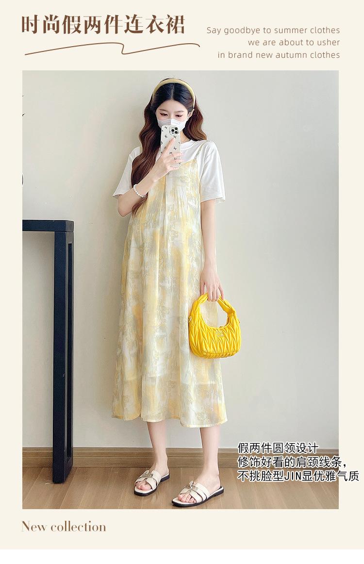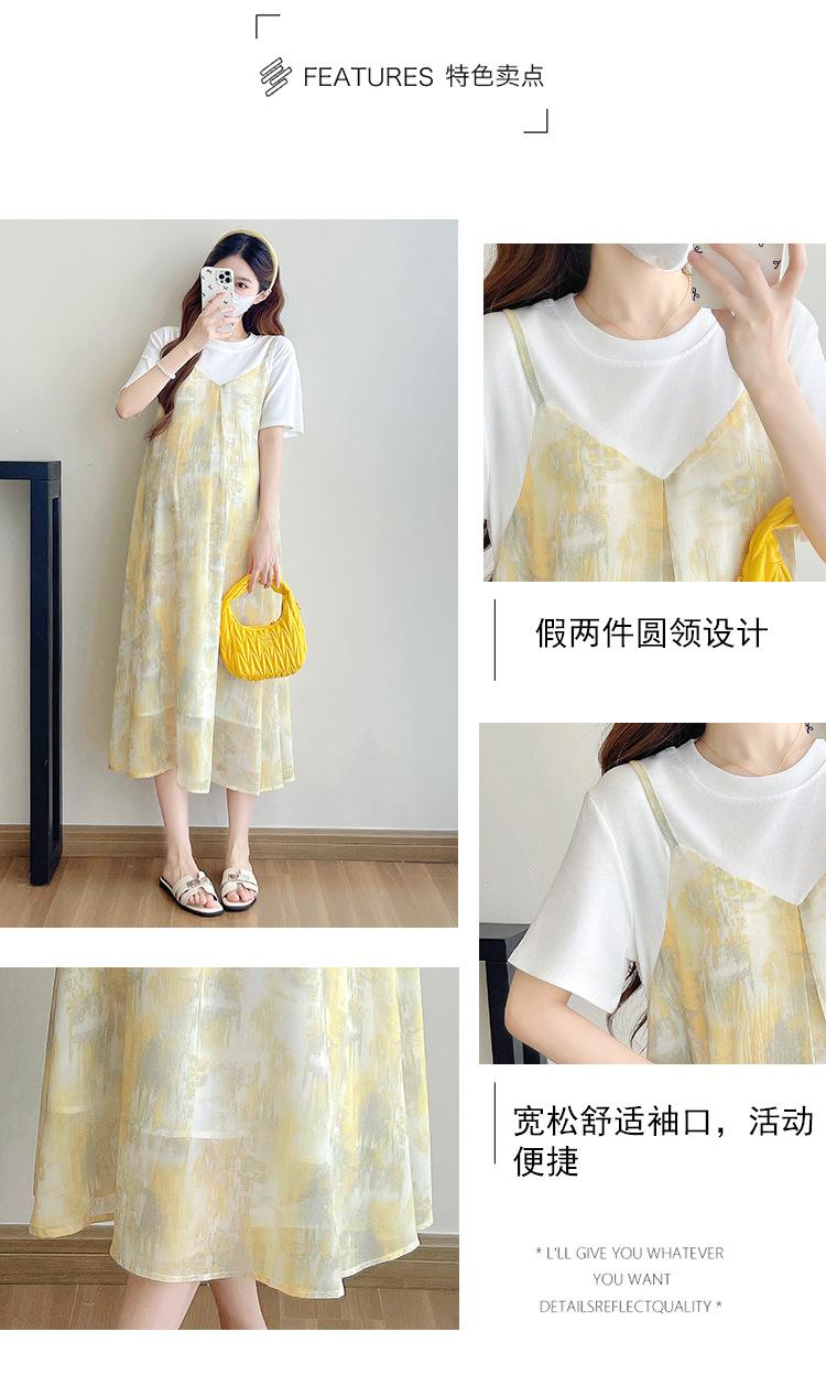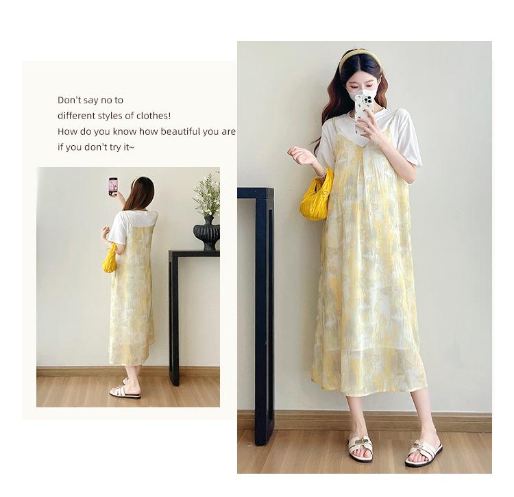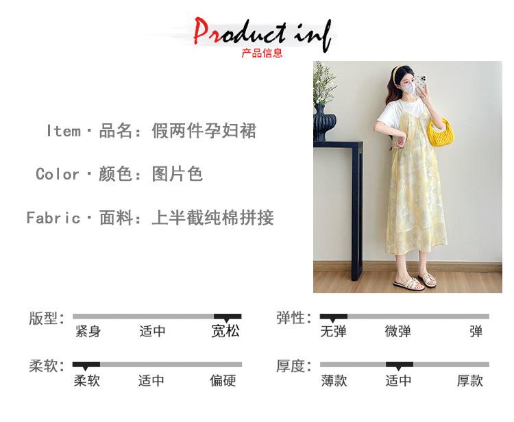 Vestido de Maternidad Nuevo Vestido Falso de Dos Piezas Cómodo Adelgazante Estilo Suave Holgado Talla Grande Vestido de Maternidad