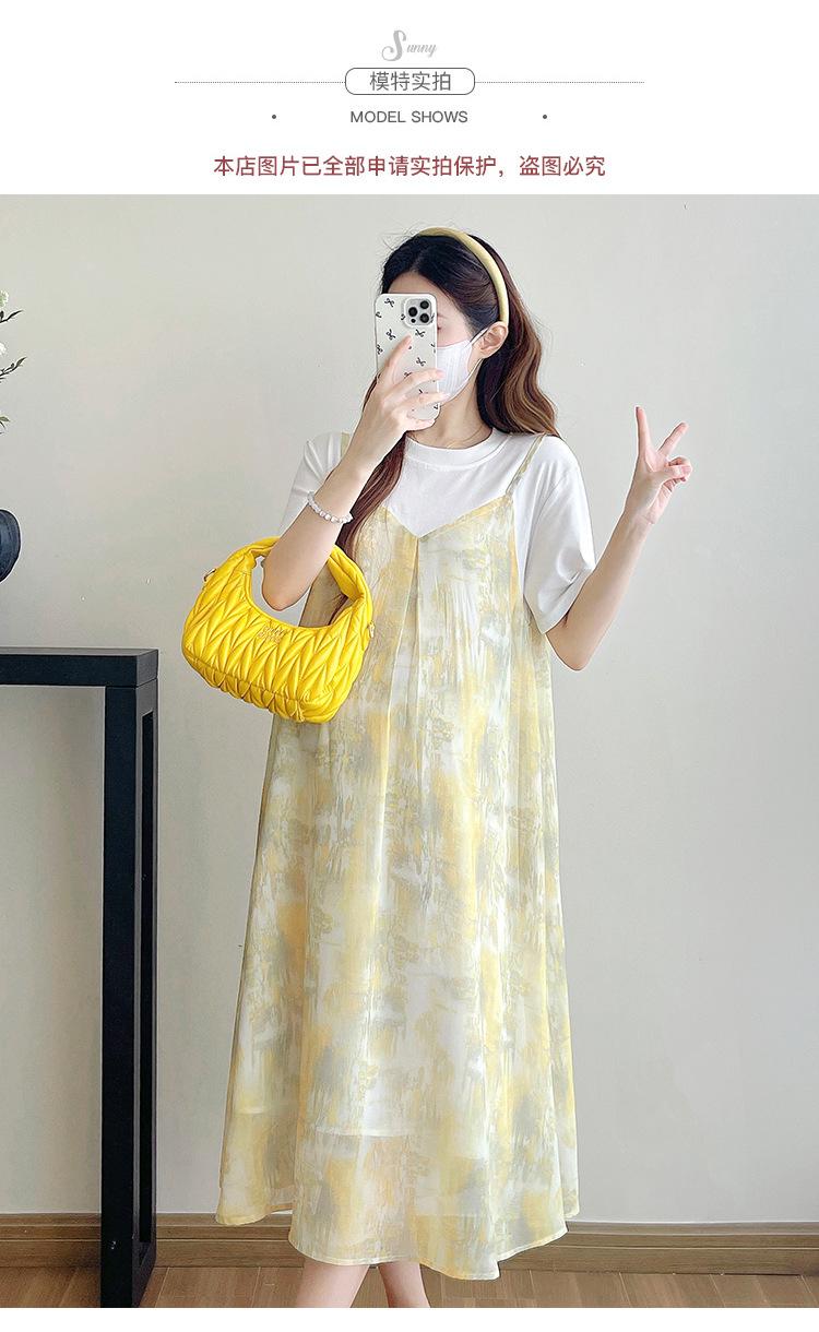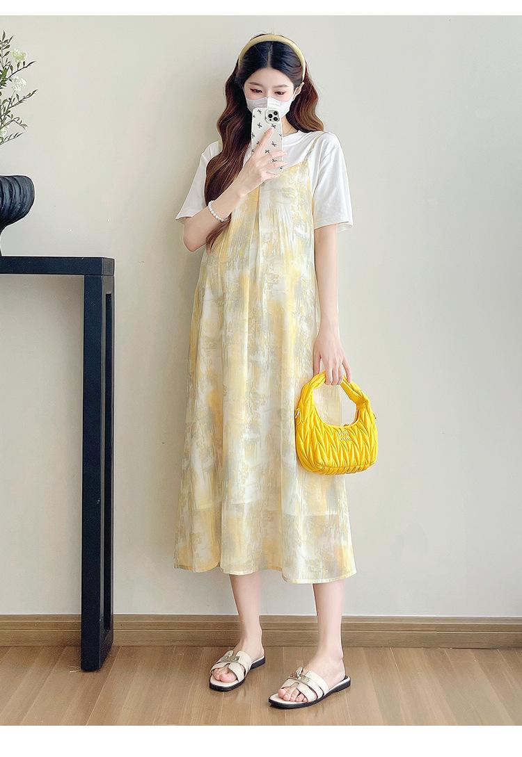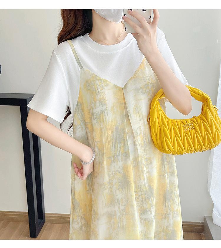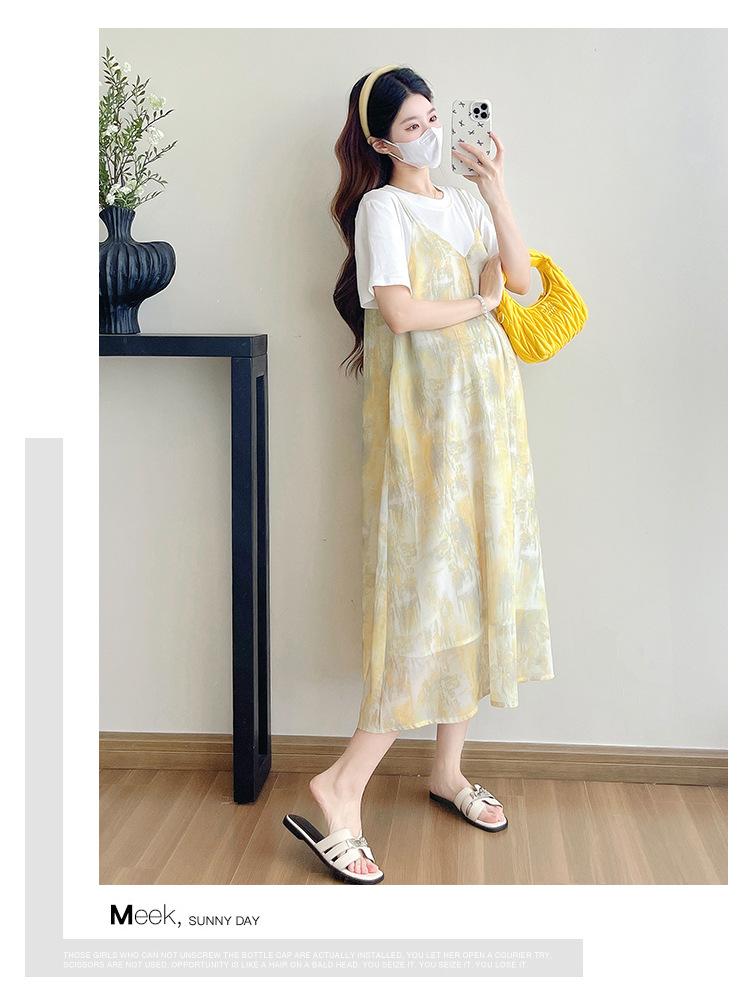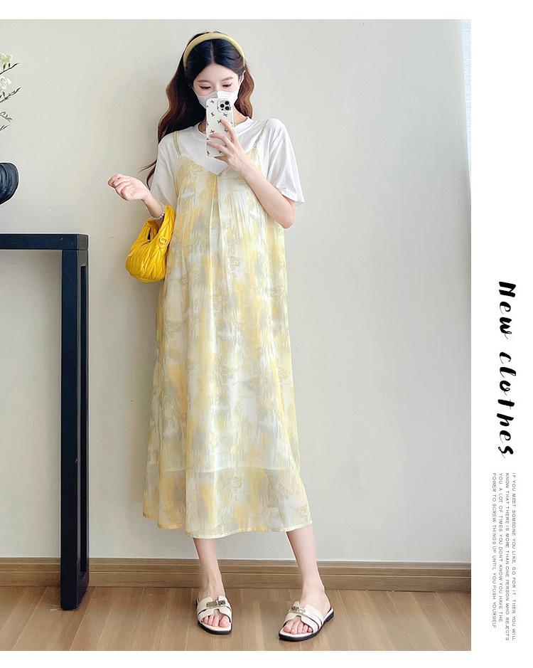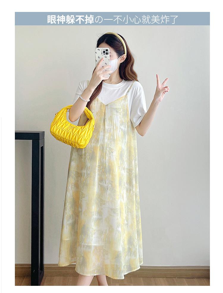 Vestido de Maternidad Nuevo Vestido Falso de Dos Piezas Cómodo Adelgazante Estilo Suave Holgado Talla Grande Vestido de Maternidad