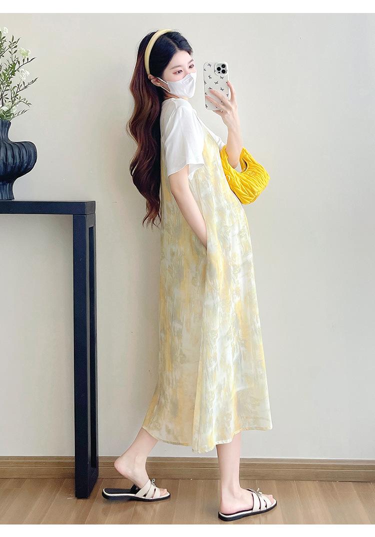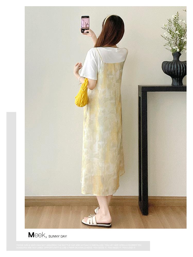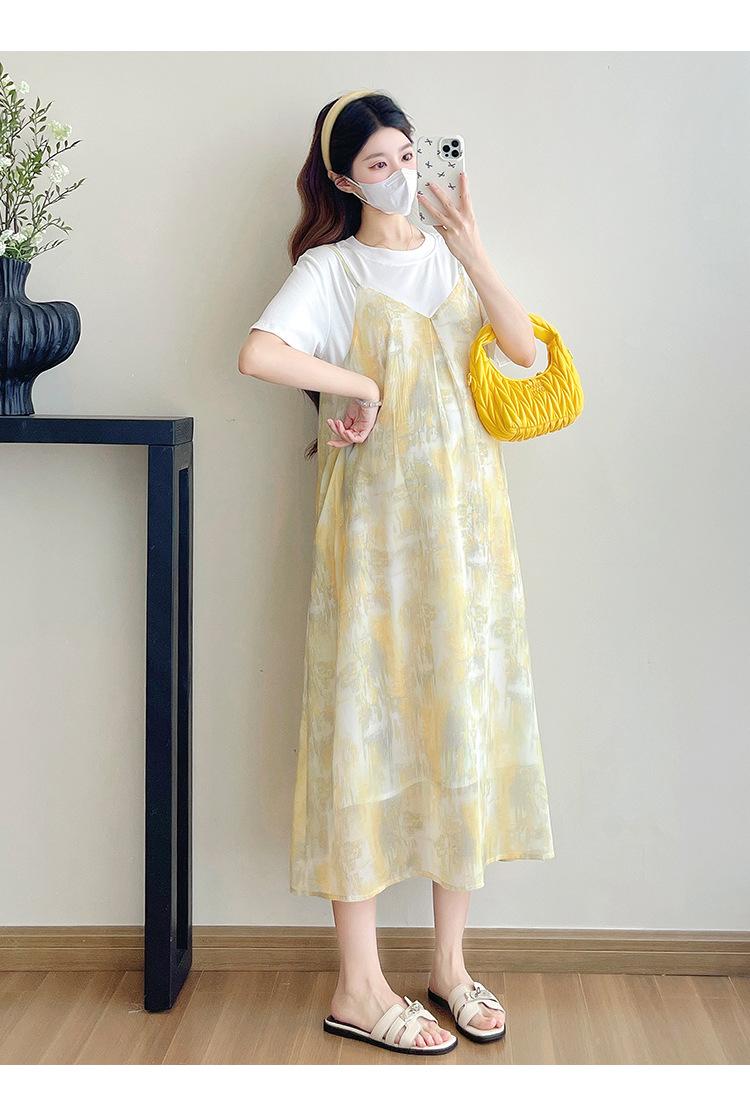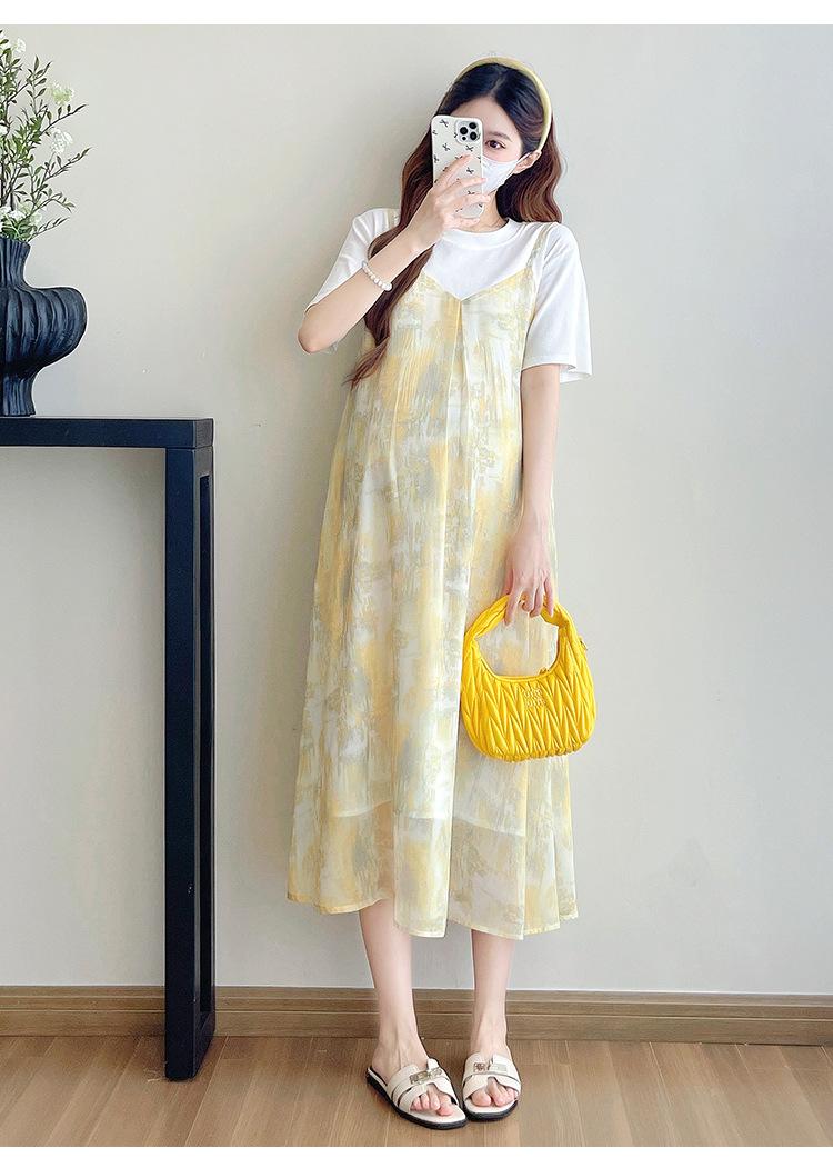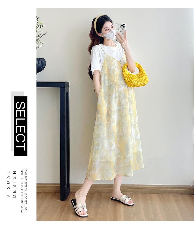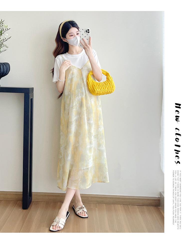 Vestido de Maternidad Nuevo Vestido Falso de Dos Piezas Cómodo Adelgazante Estilo Suave Holgado Talla Grande Vestido de Maternidad