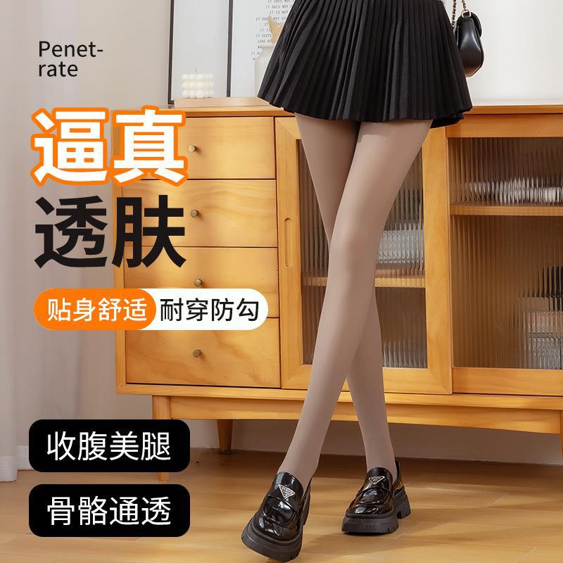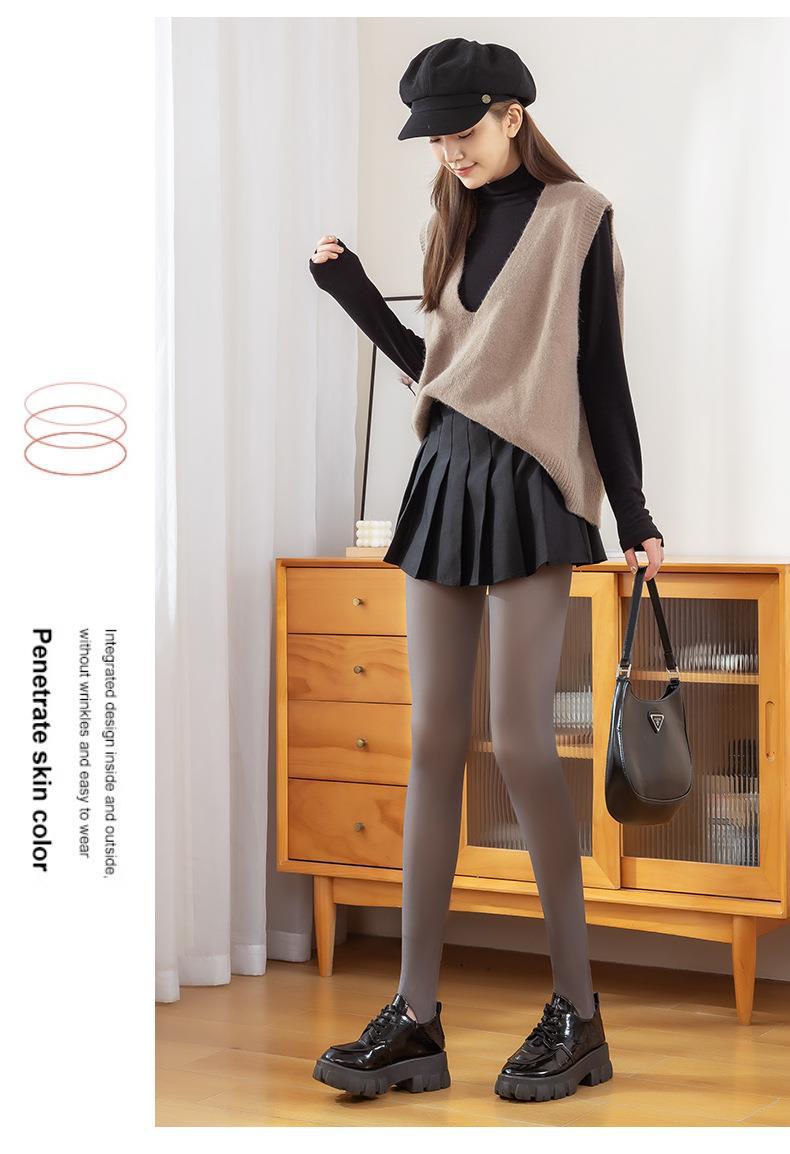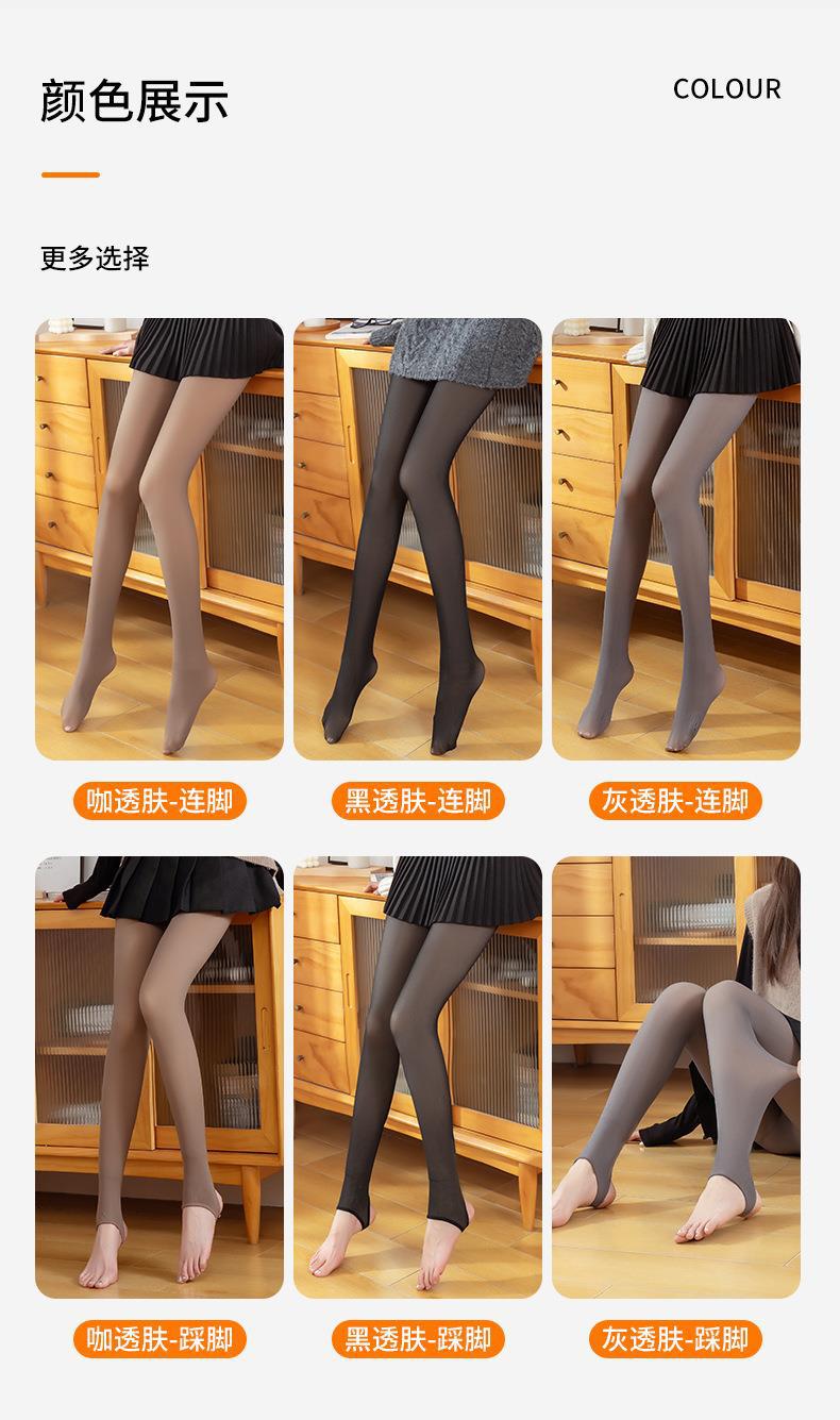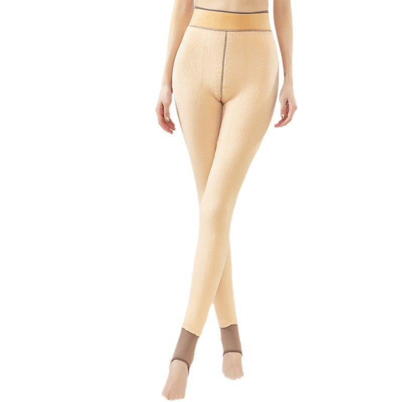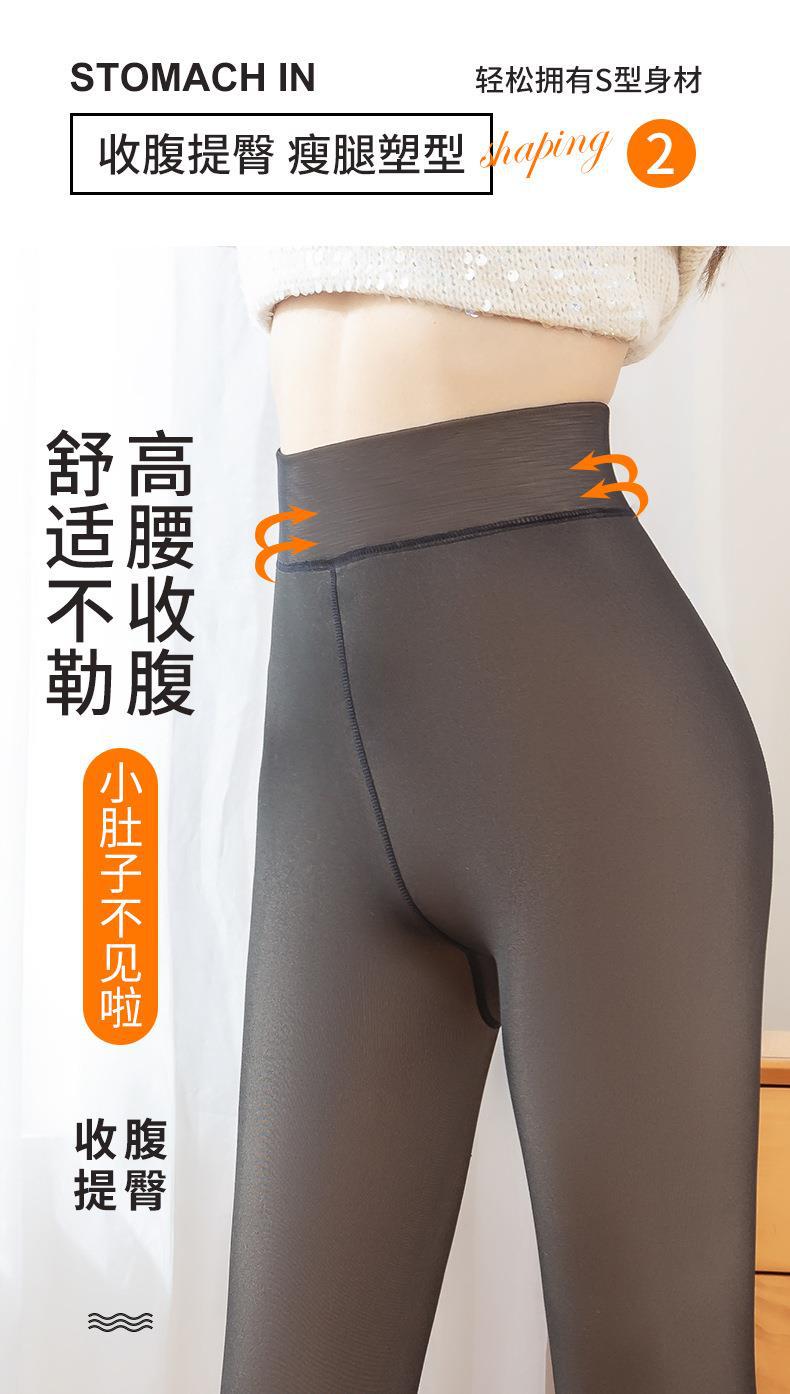 Leggings Gruesas de Otoño e Invierno Transfronterizas Forradas de Vellón Transparentes de Alta Elasticidad Talla Extra Pantimedias de Azafata Pantalones de Una Pieza Falso Transparente