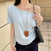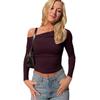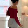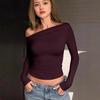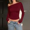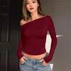 Europeo y Americano Nuevo Estilo 2025 Otoño Moda Retro Slim Sexy Versátil Color Sólido Hombro Descubierto Casual Manga Larga Top Camiseta