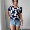 Comercio Exterior Transfronterizo Verano para Mujer Nuevo Estilo Vacacional Camisas Europeas y Americanas Camisas Coloridas de Jersey Tops de Manga Corta para Mujer