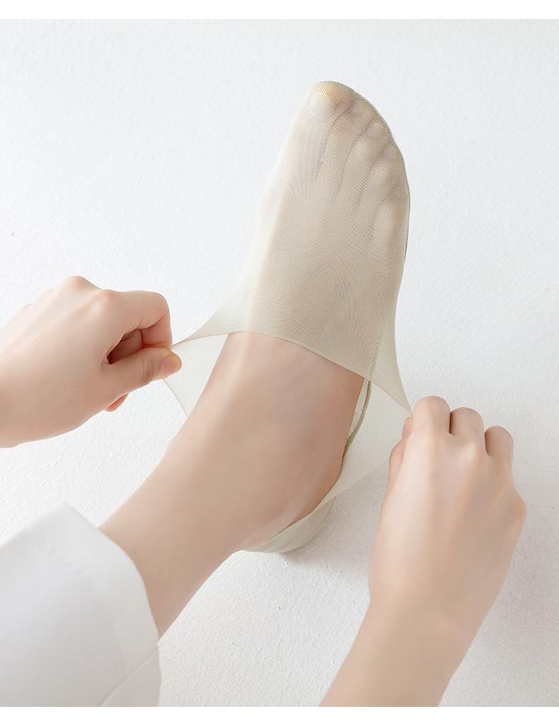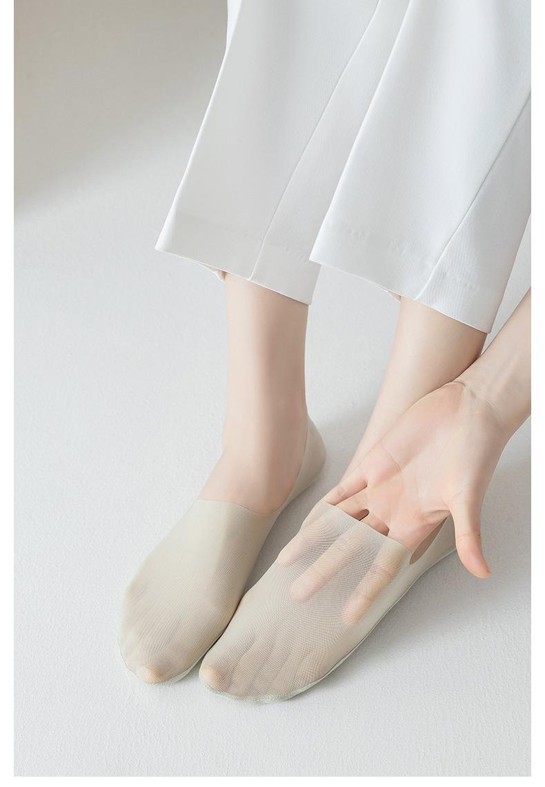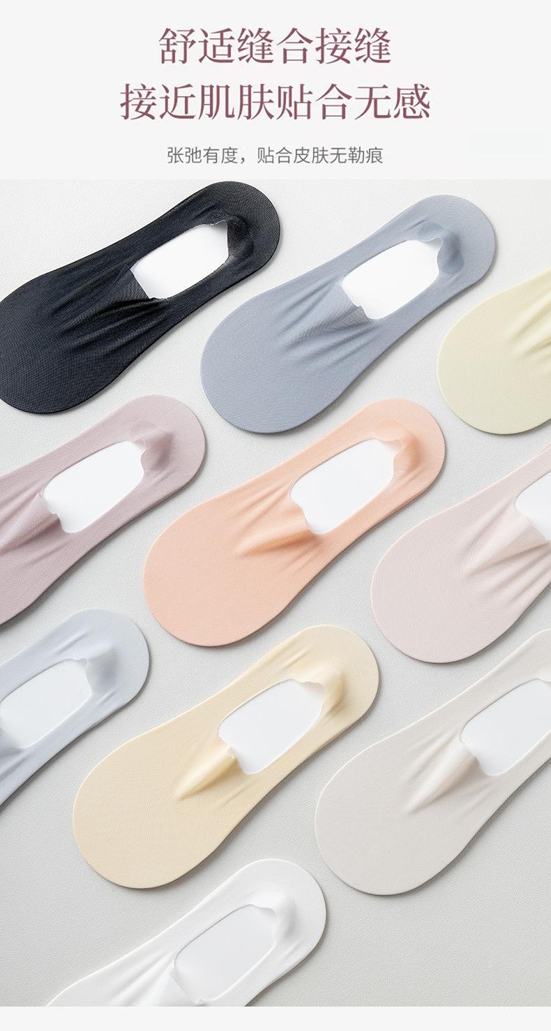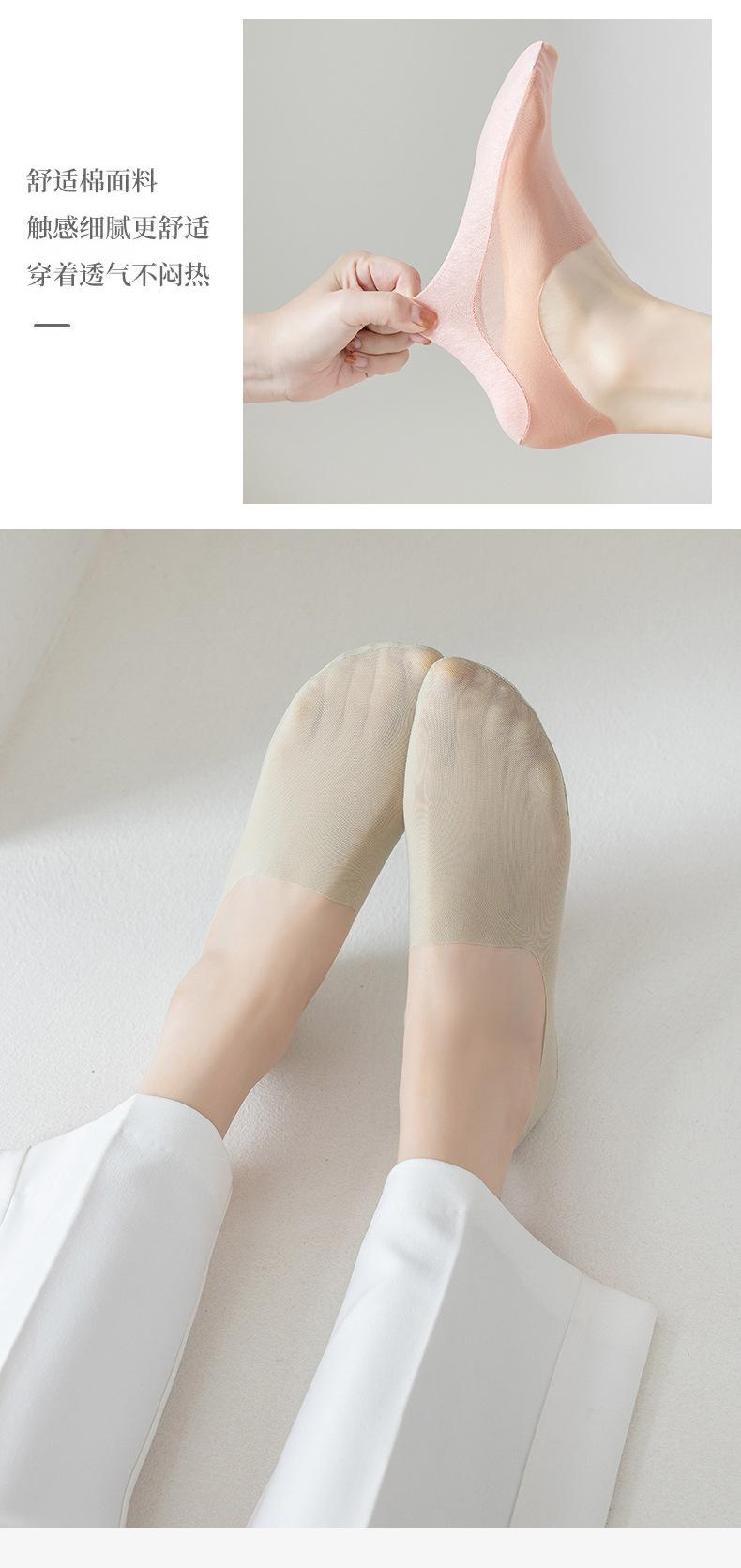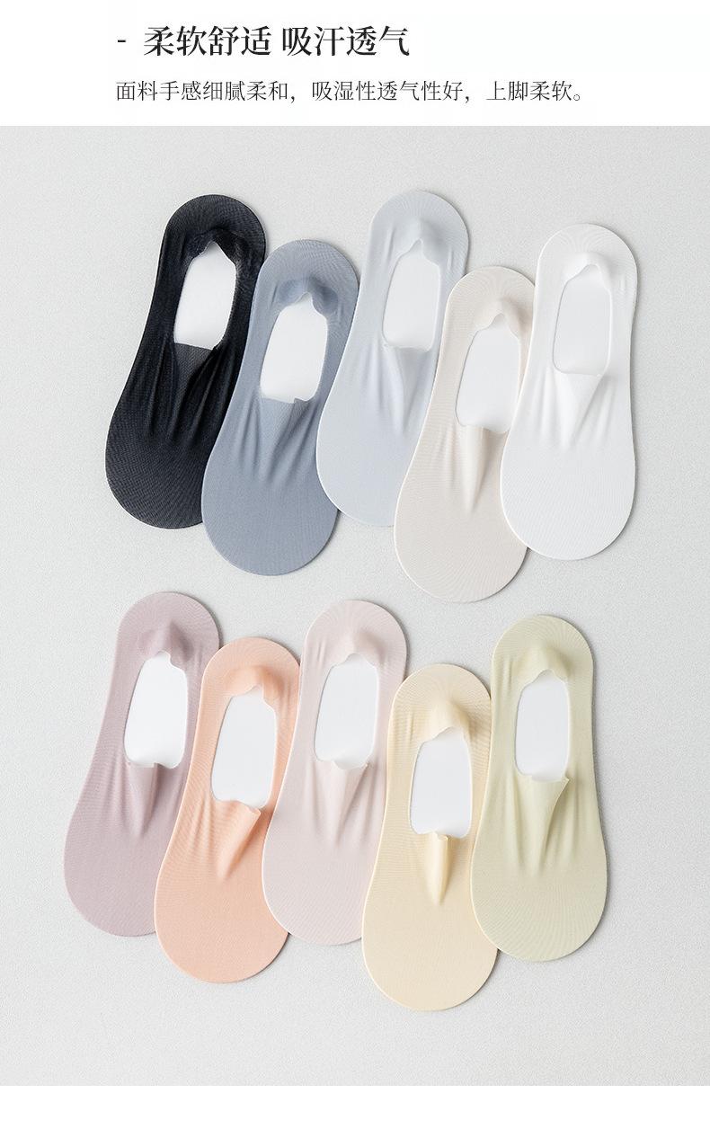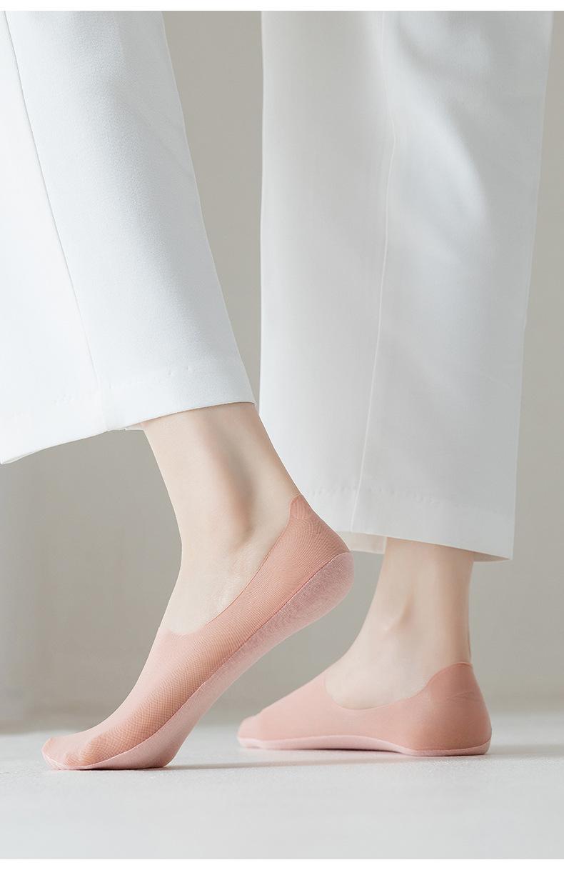 Calcetines de Barco de Boca Baja de Seda de Hielo para Mujer en Verano Color Puro Fondo de Algodón Calcetines Finos Invisibles Calcetines Antideslizantes de Silicona que No se Caen