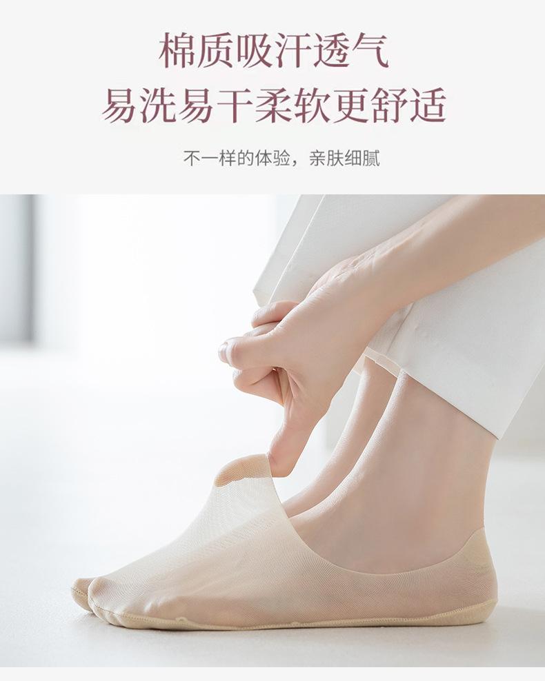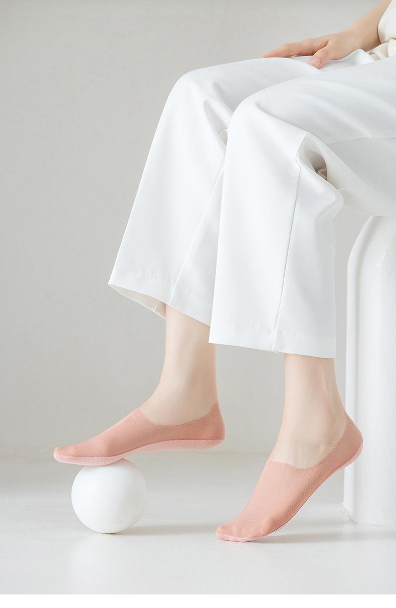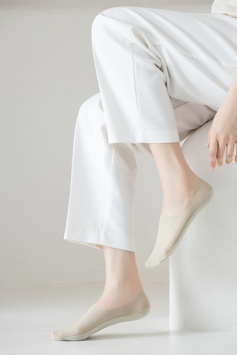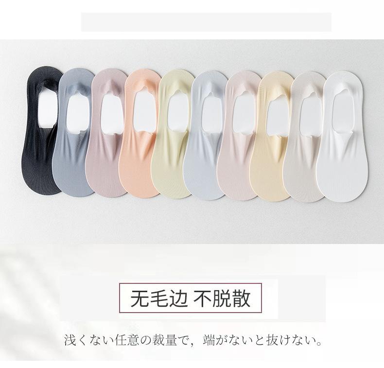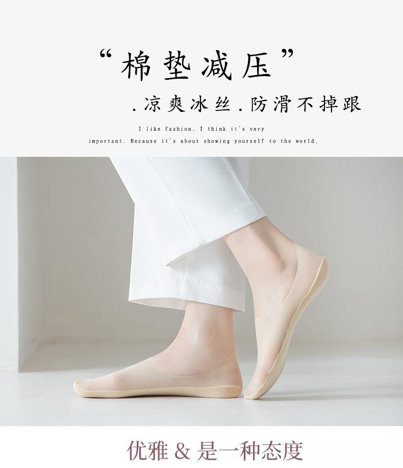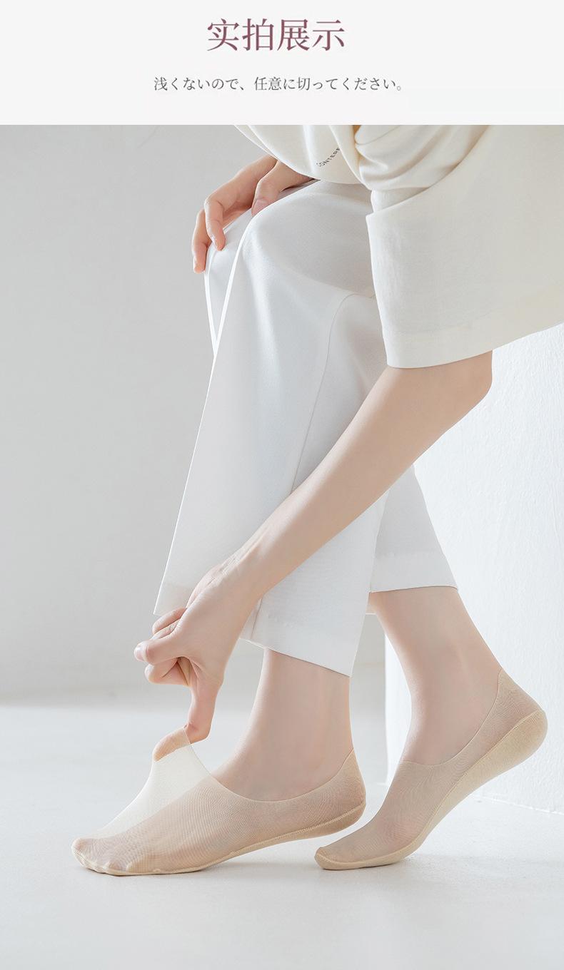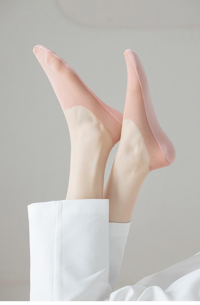 Calcetines de Barco de Boca Baja de Seda de Hielo para Mujer en Verano Color Puro Fondo de Algodón Calcetines Finos Invisibles Calcetines Antideslizantes de Silicona que No se Caen
