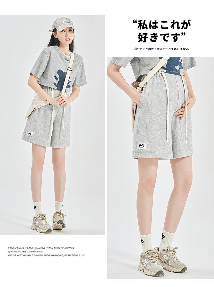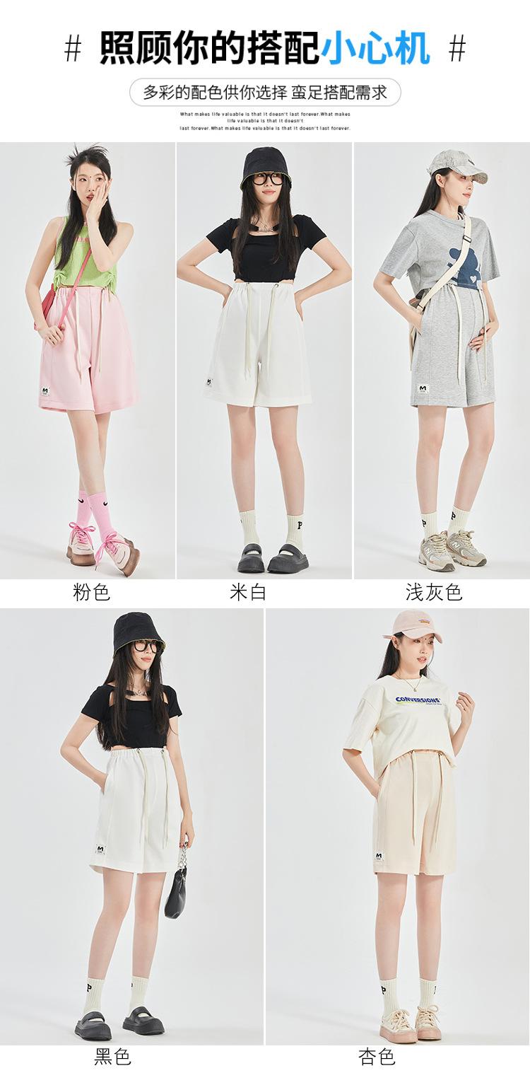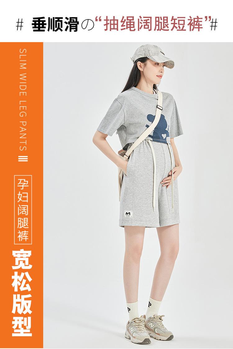 Pantalones Cortos de Maternidad Verano Delgados Ropa Exterior Casual Pierna Ancha Pantalones Tres Cuartos Pantalones Medios Bolsillo Moda Leggings