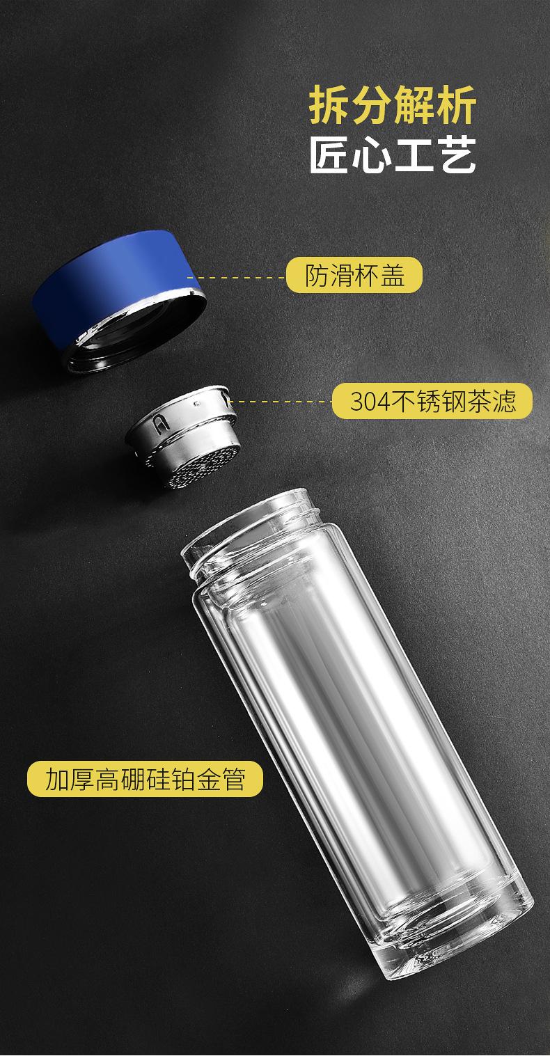 Taza de Vidrio de Doble Capa al por Mayor con Logotipo Impreso, Taza de Té Aislada de Borosilicato Transparente, Taza de Agua para Regalo, Vaso Publicitario con Texto Impreso