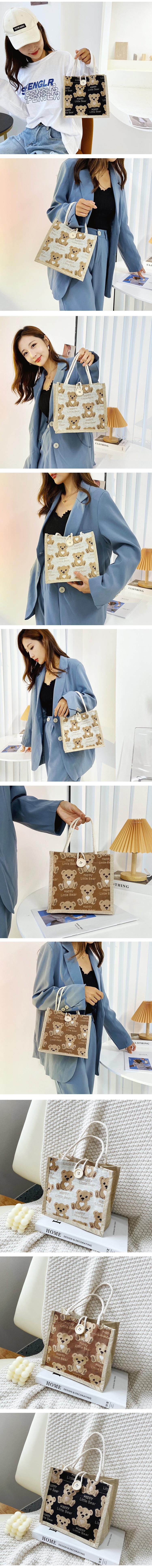 Bolsa Tote de Oso de Dibujos Animados Japonés Linda Ligera para Estudiante Almuerzo Bento Bolsa de Almacenamiento de Gran Capacidad Lonchera Bolso de Hombro