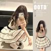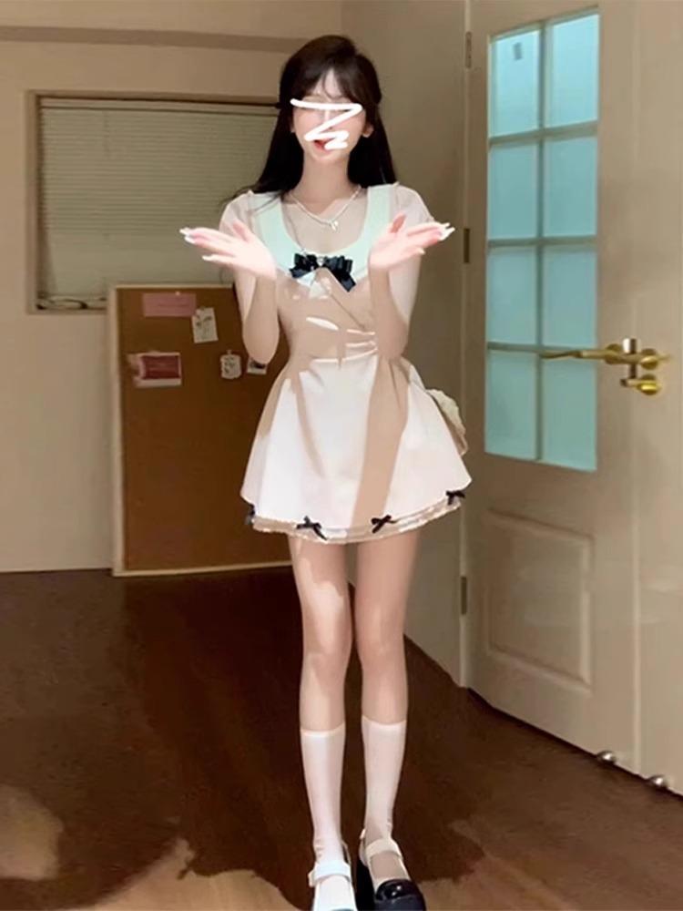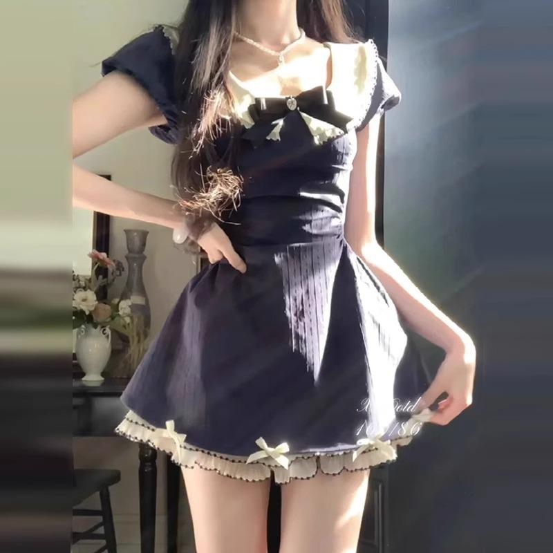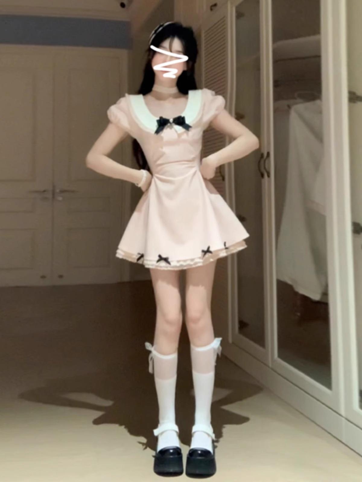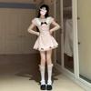Vestido Rosa Estilo Universitario Francés para Mujer Verano y Primavera Nuevo Estilo Cintura Pequeña Falda Abullonada
