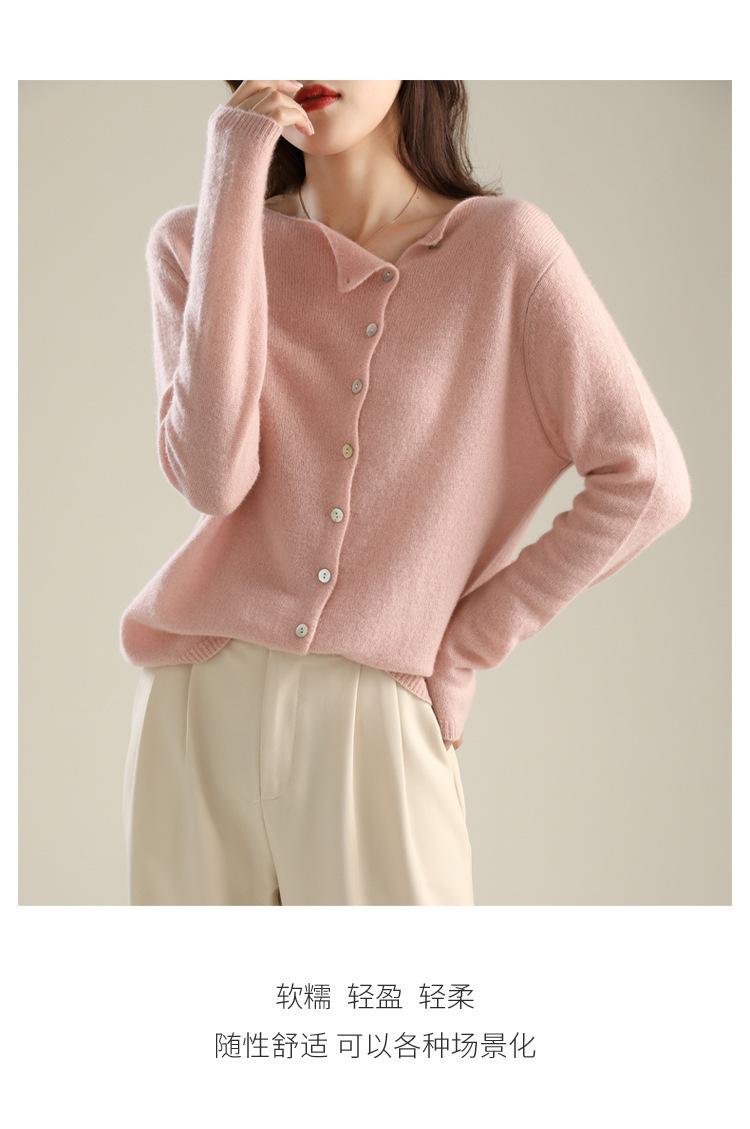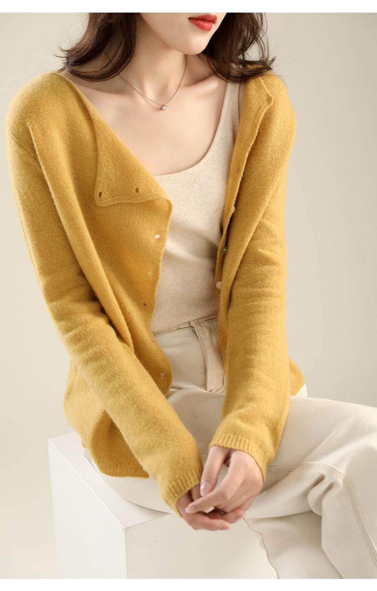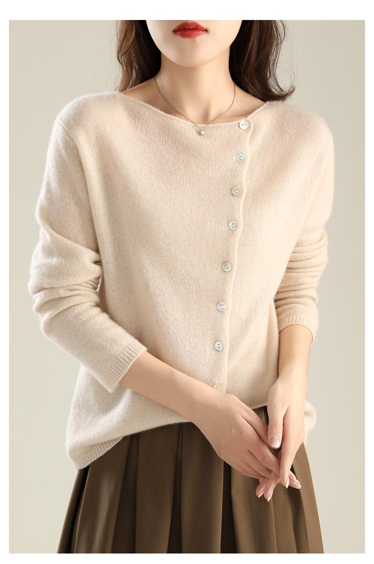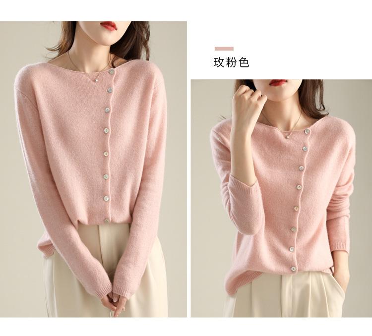 Suéter de Punto de Nuevo Estilo Cárdigan de un Solo Botón para Mujer con Cuello Redondo Bajo y Ropa Exterior de Punto Fino