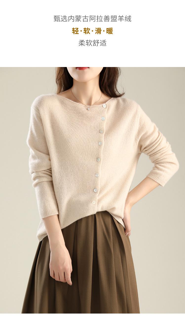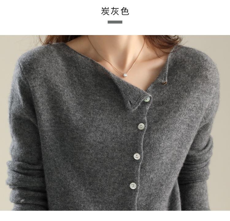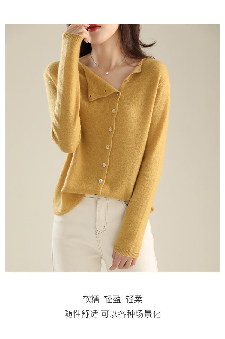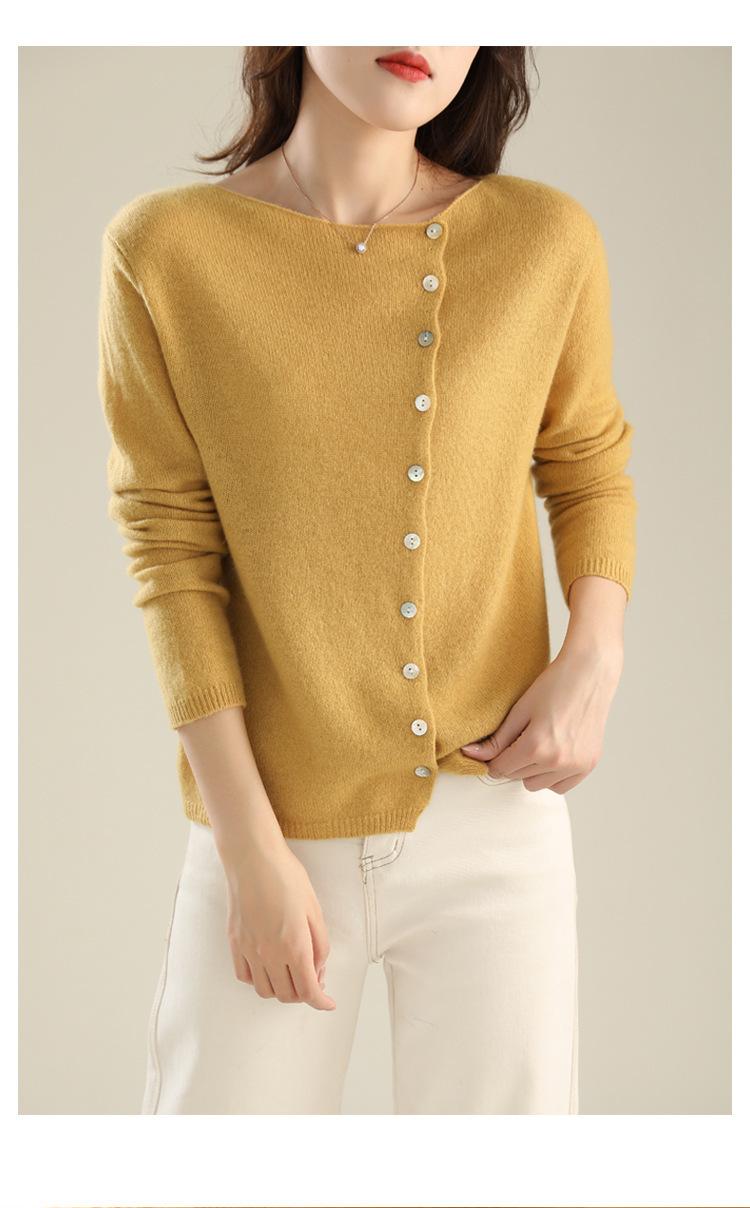 Suéter de Punto de Nuevo Estilo Cárdigan de un Solo Botón para Mujer con Cuello Redondo Bajo y Ropa Exterior de Punto Fino