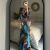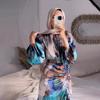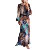 Amazon Medio Oriente Nuevo Vestido Adelgazante Exótico de Manga Larga y Largo Medio para Mujer con Cintura Plisada