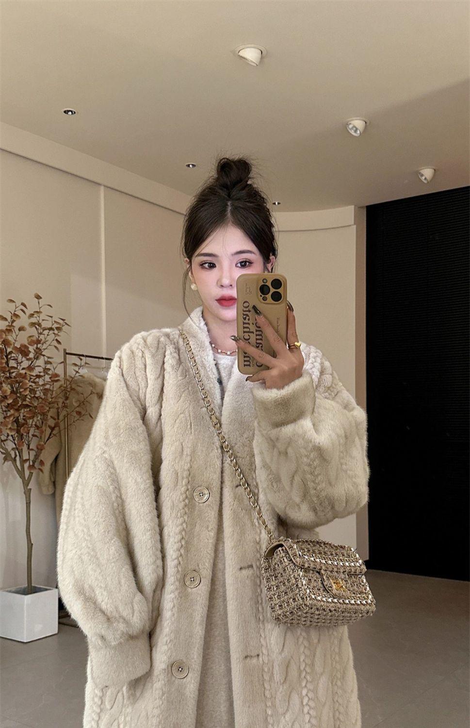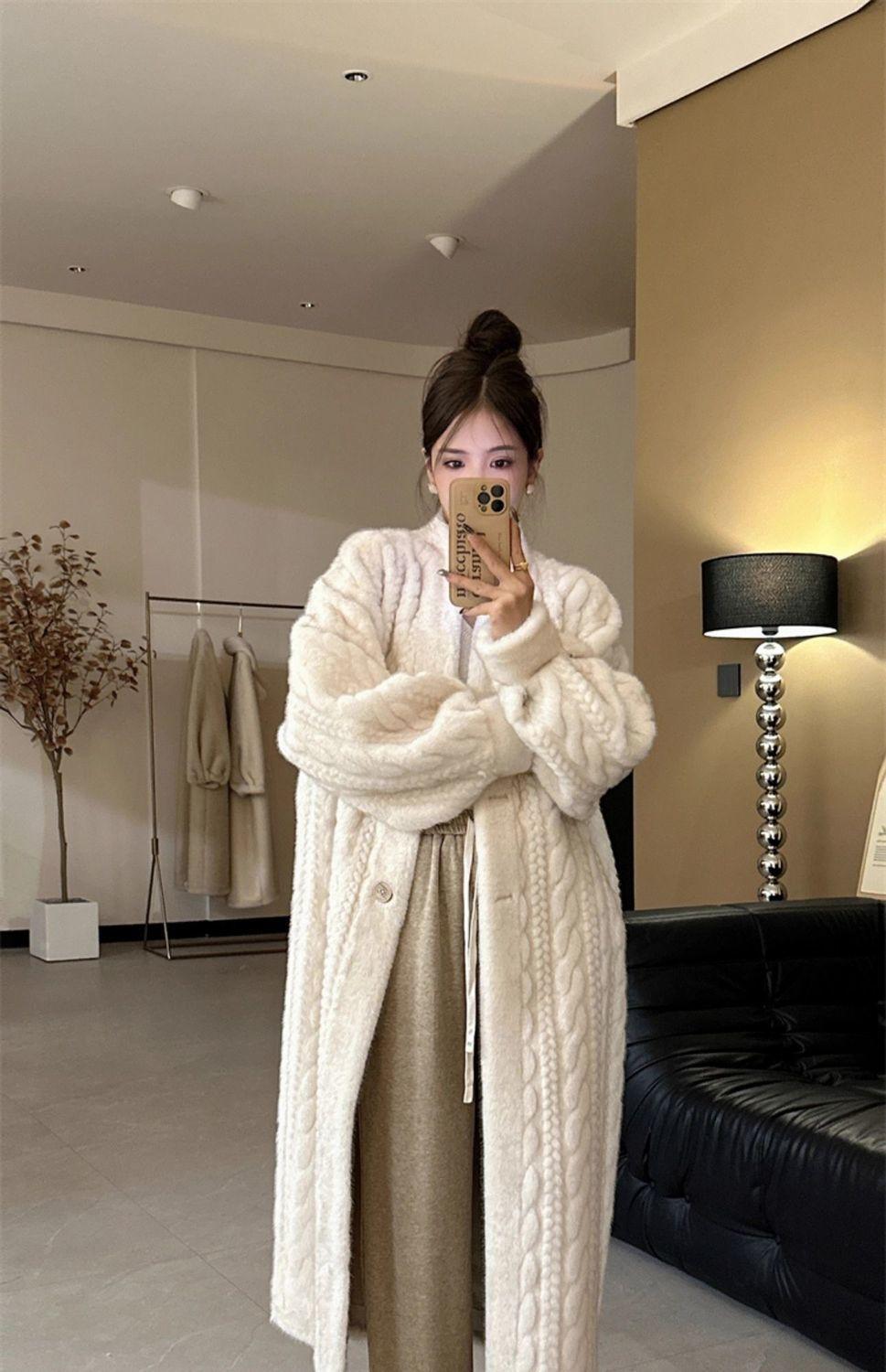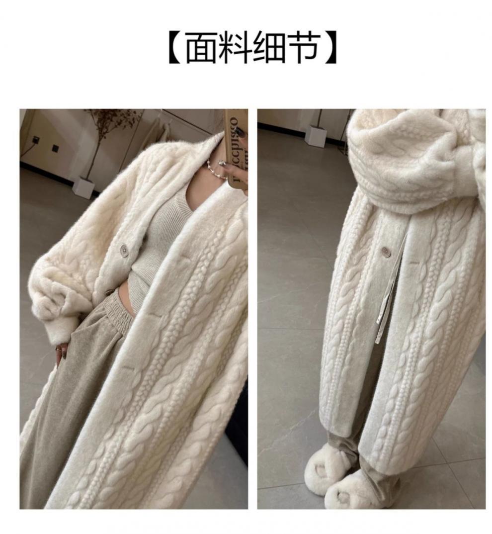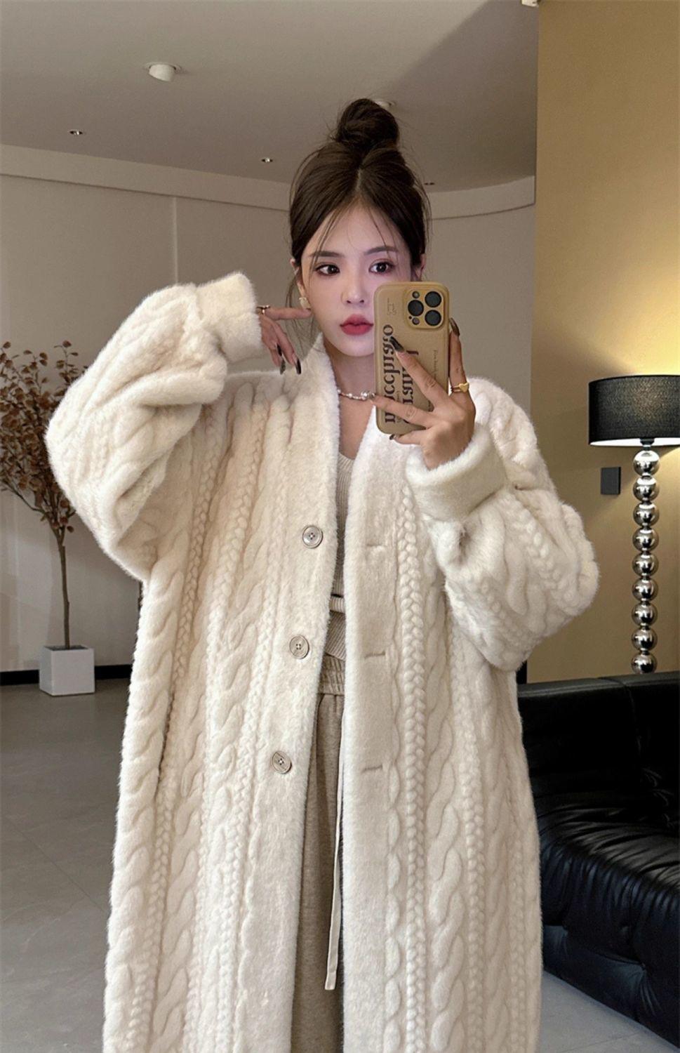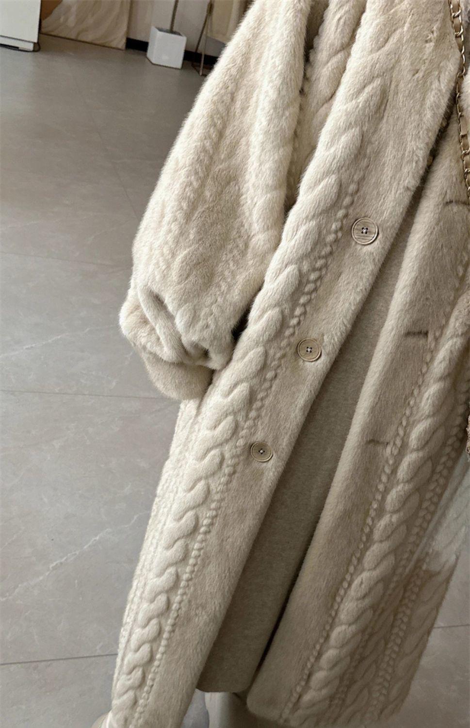 2024 Nueva Llegada Estilo Perezoso Cárdigan Largo Abrigo de Visón de Imitación Piel Mujeres Invierno Grueso Trenzado Visón Mujeres