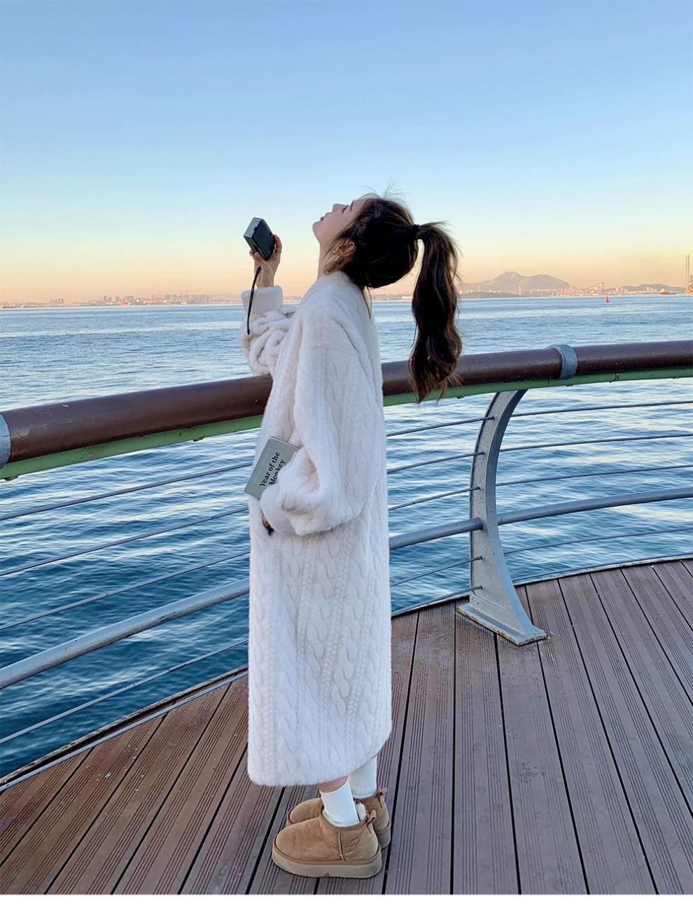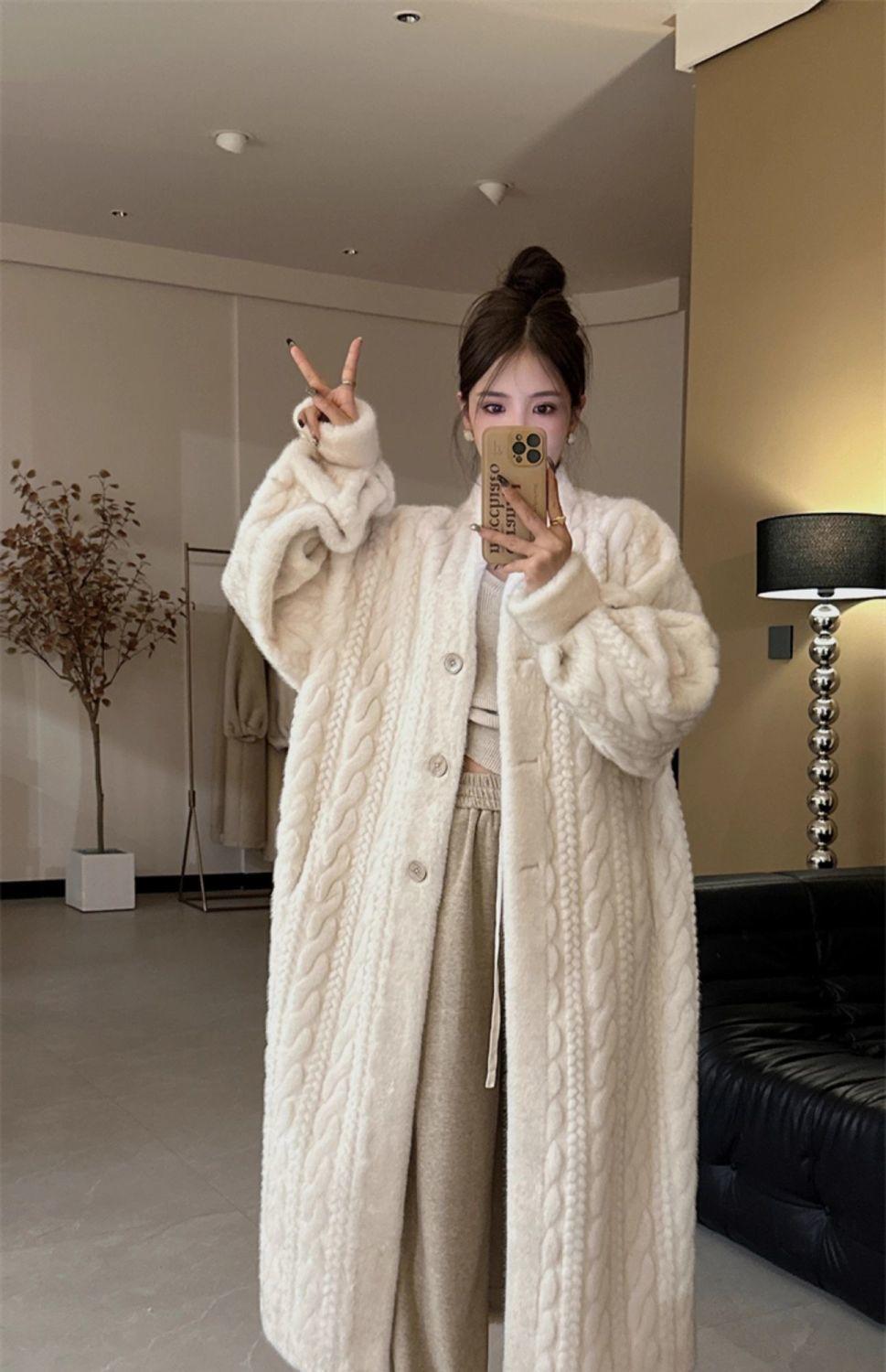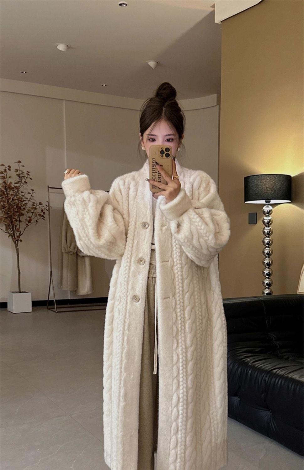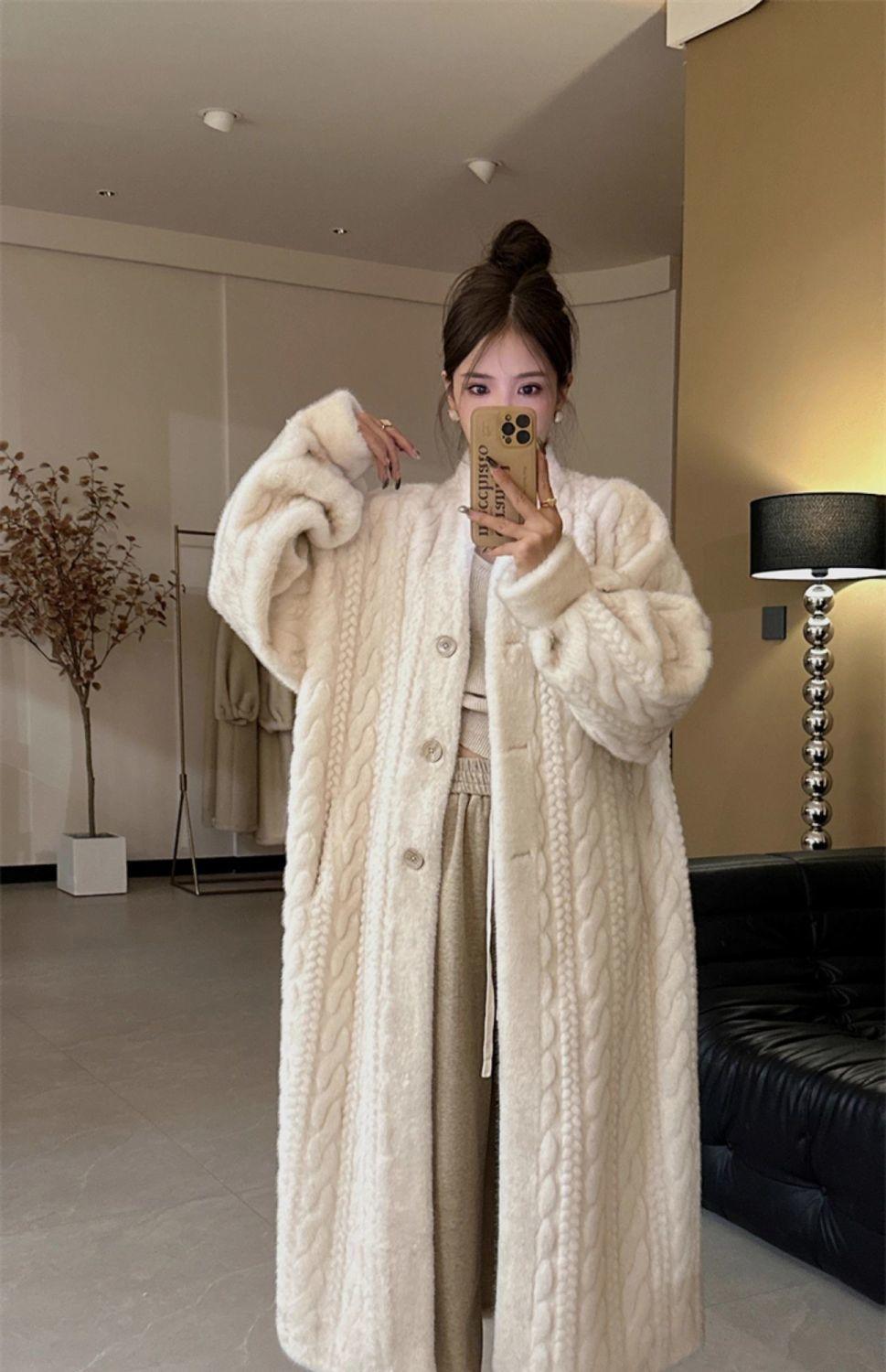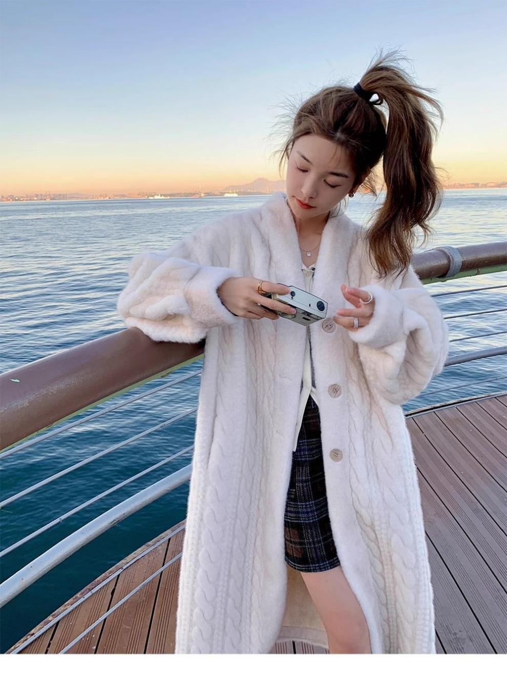 2024 Nueva Llegada Estilo Perezoso Cárdigan Largo Abrigo de Visón de Imitación Piel Mujeres Invierno Grueso Trenzado Visón Mujeres