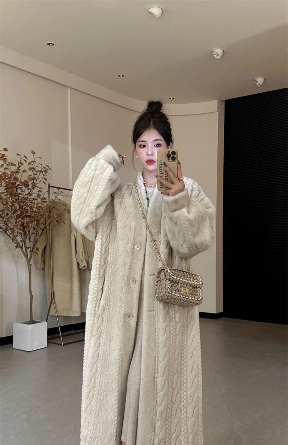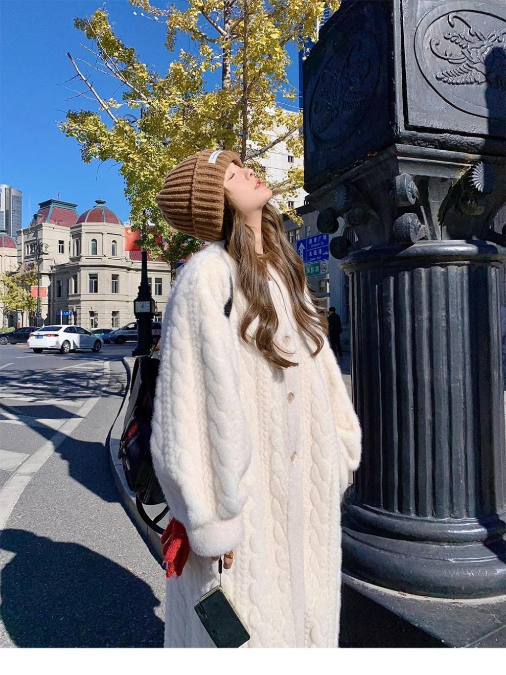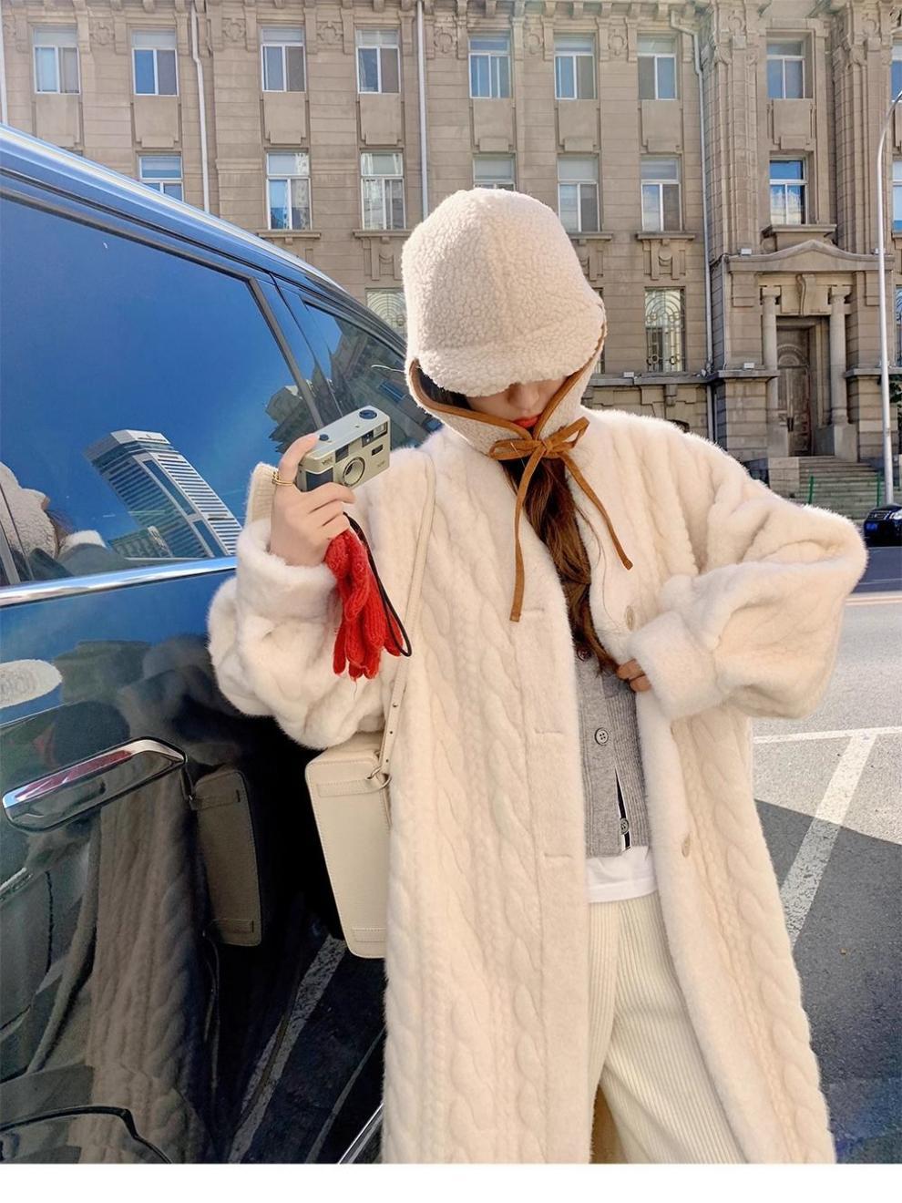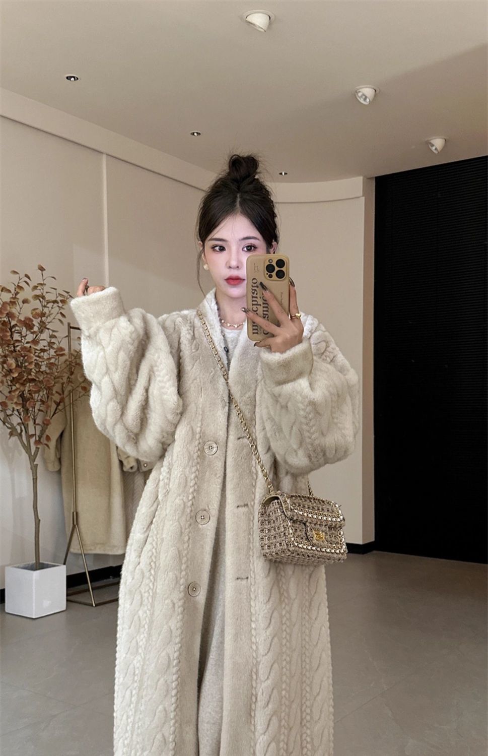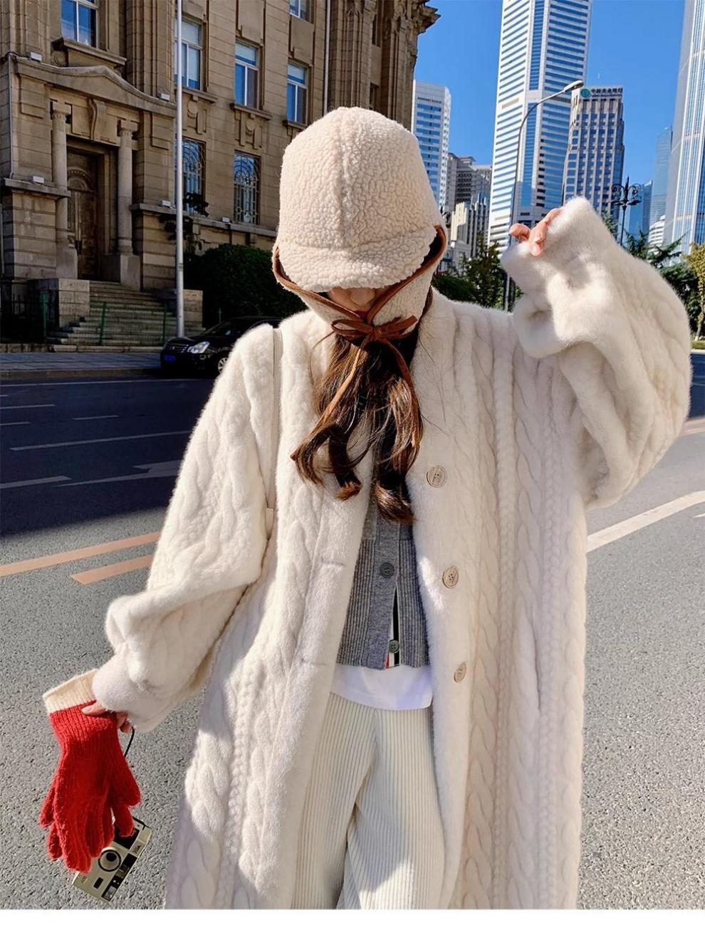 2024 Nueva Llegada Estilo Perezoso Cárdigan Largo Abrigo de Visón de Imitación Piel Mujeres Invierno Grueso Trenzado Visón Mujeres