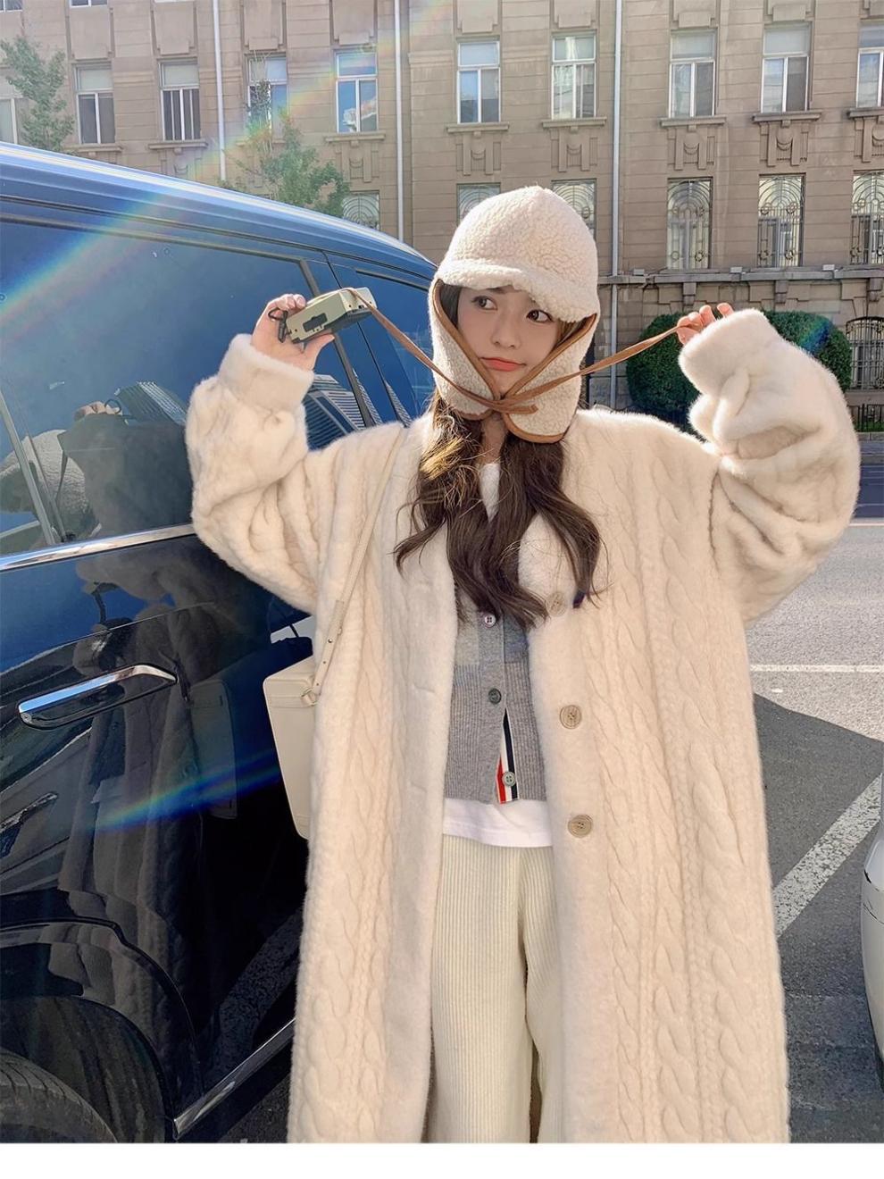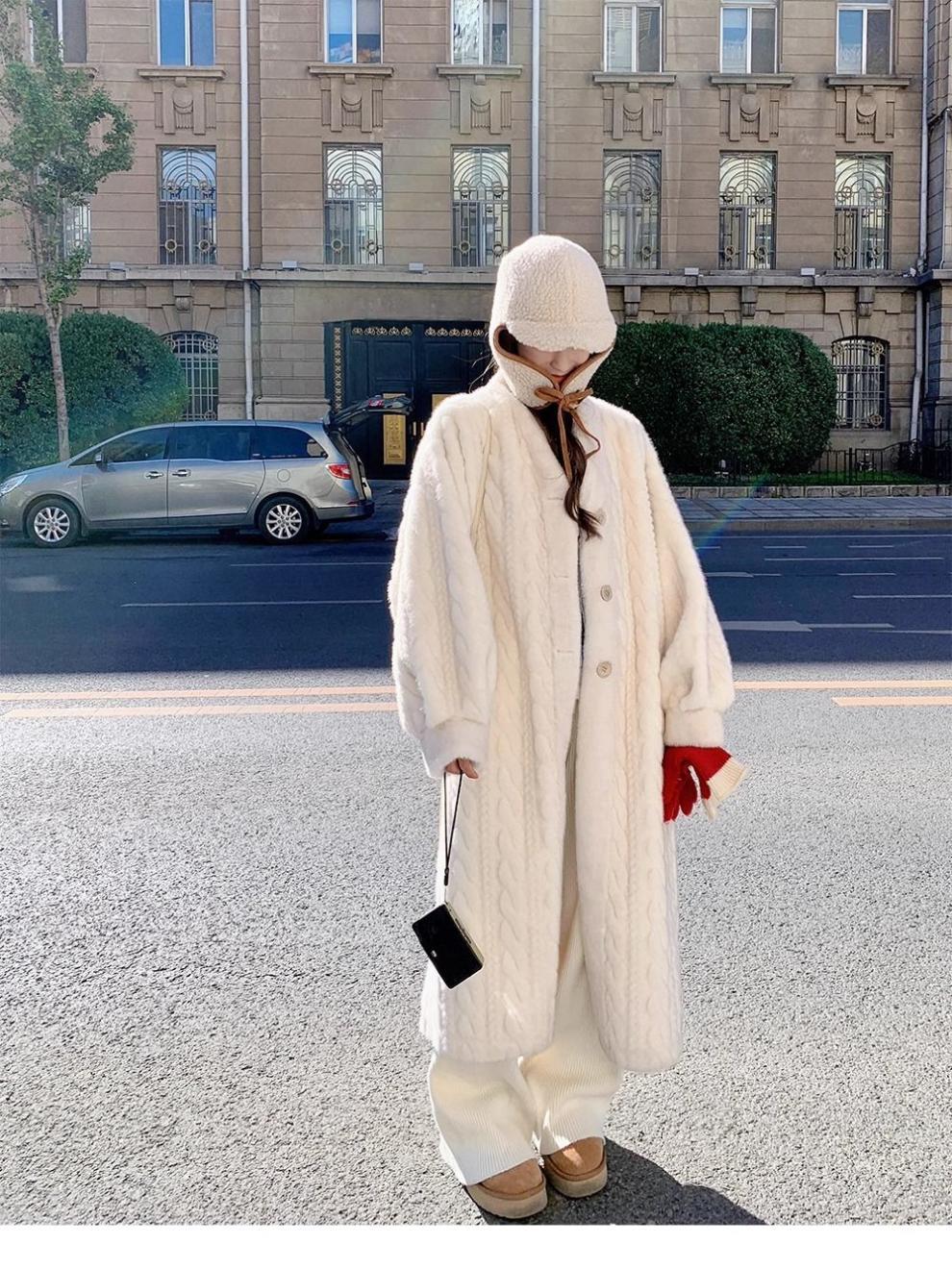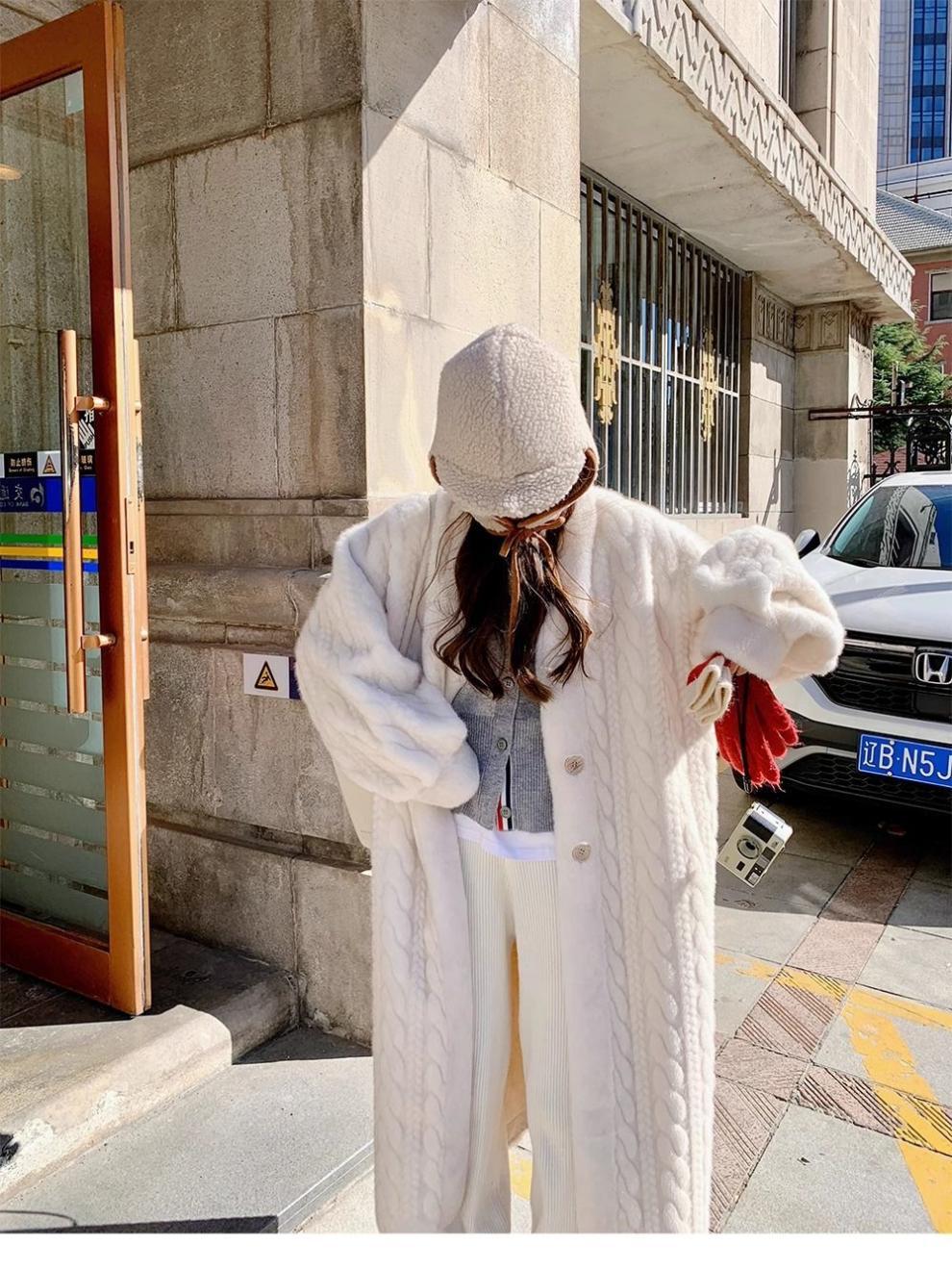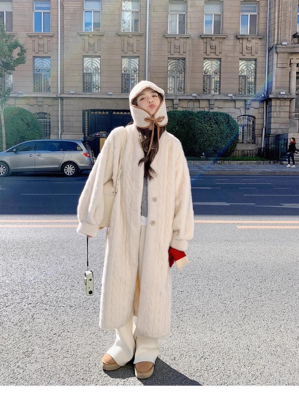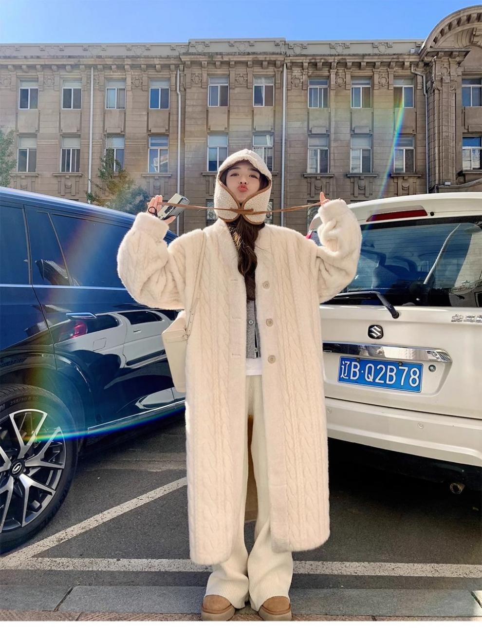 2024 Nueva Llegada Estilo Perezoso Cárdigan Largo Abrigo de Visón de Imitación Piel Mujeres Invierno Grueso Trenzado Visón Mujeres