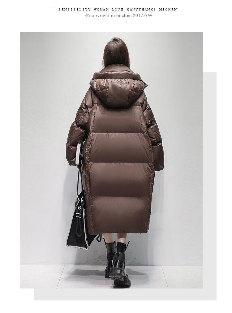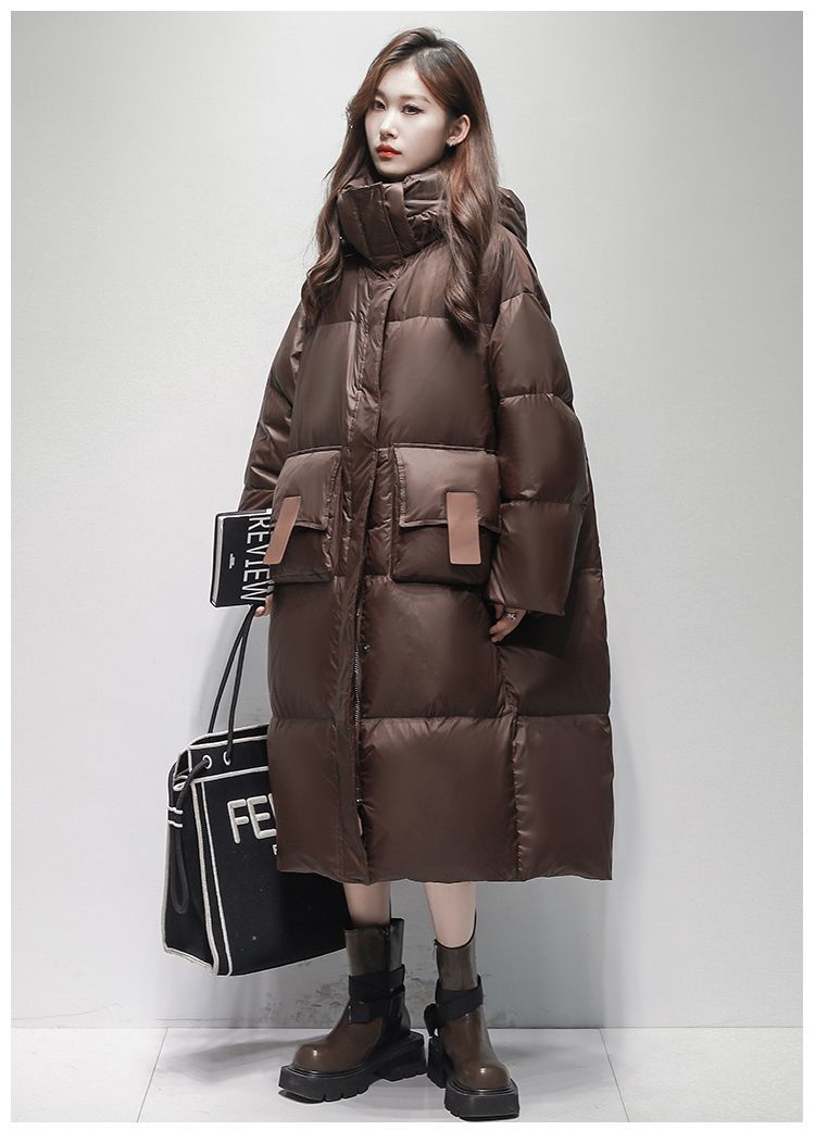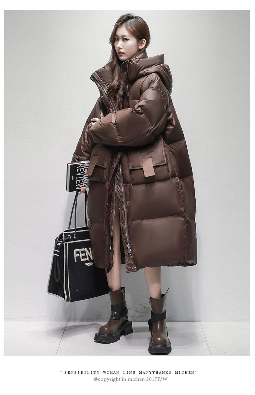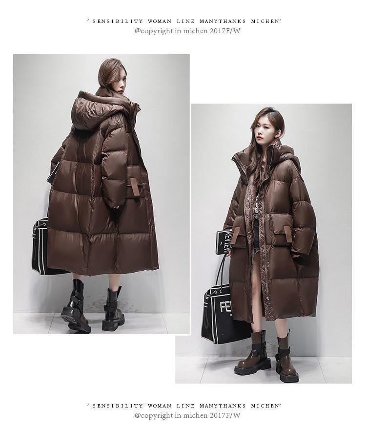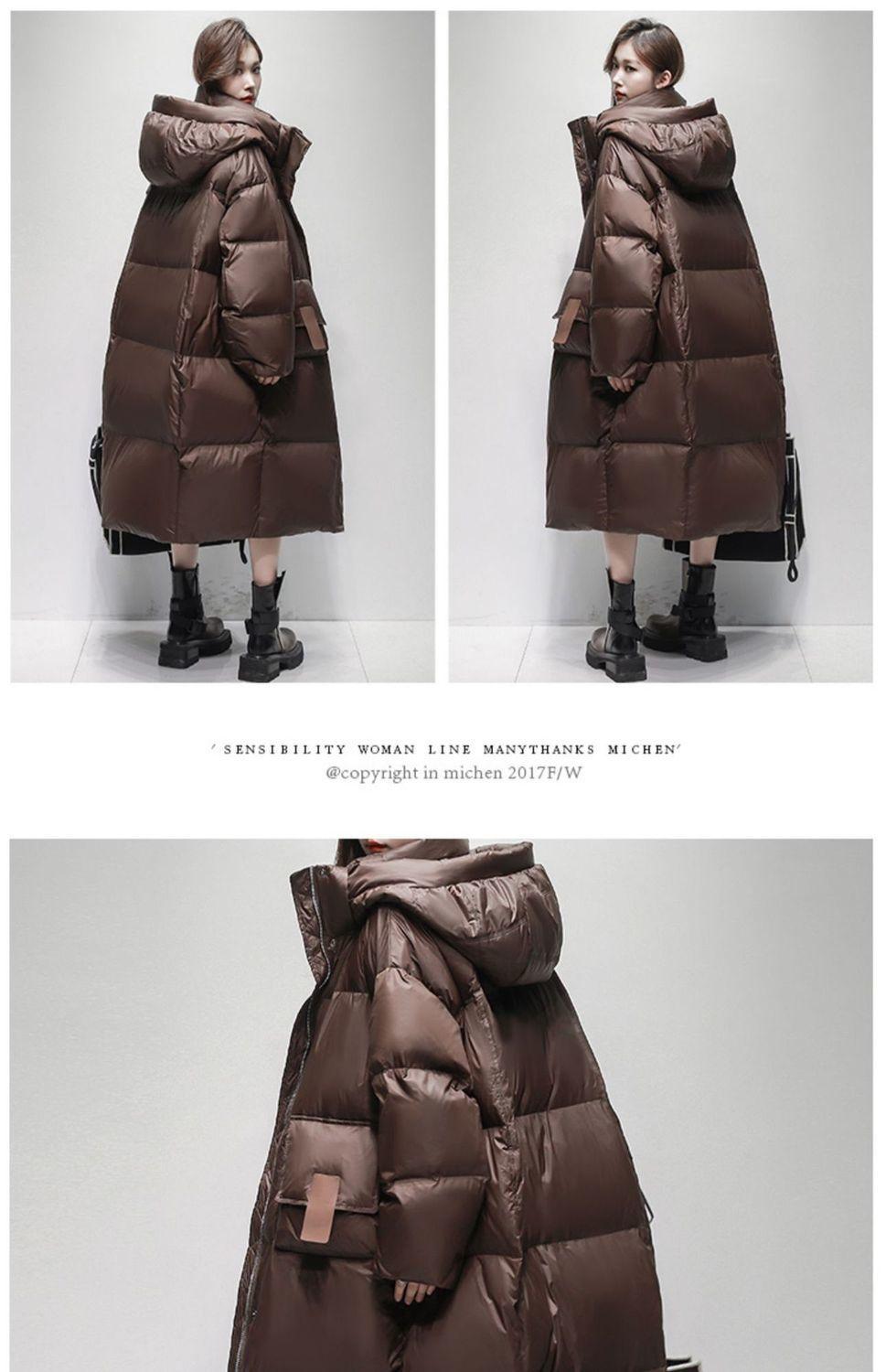 Chamarra de Plumón Maillard para Mujer Invierno 2024 Traje Coreano de Pan por Encima de la Rodilla Grueso Largo Medio Chamarra de Plumón de Pato Blanco