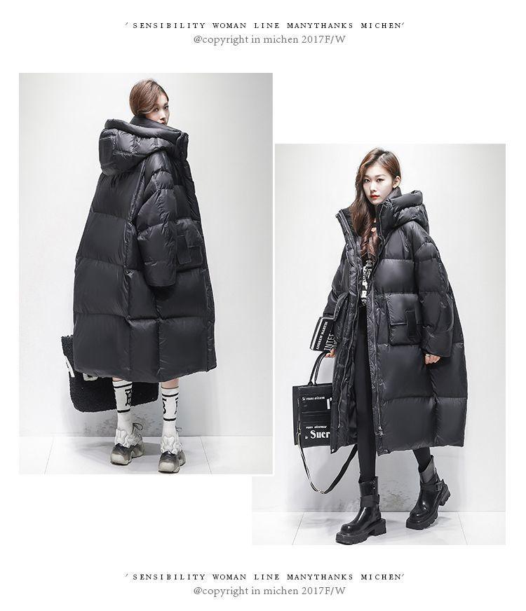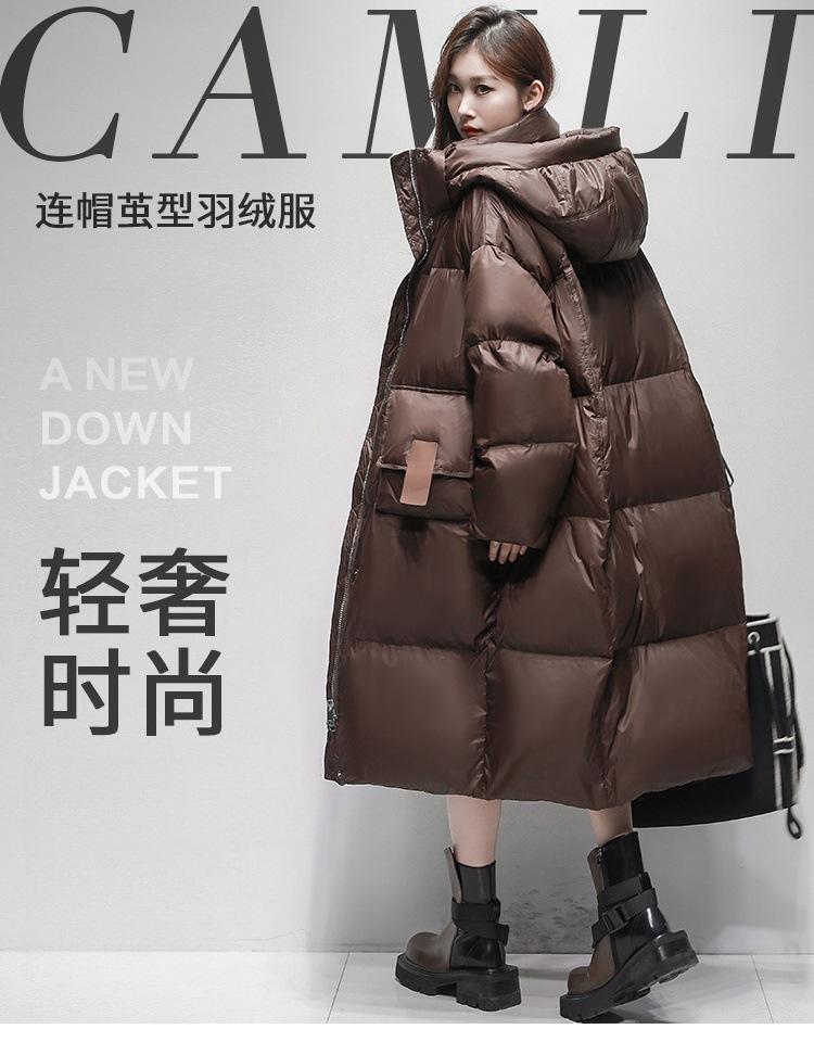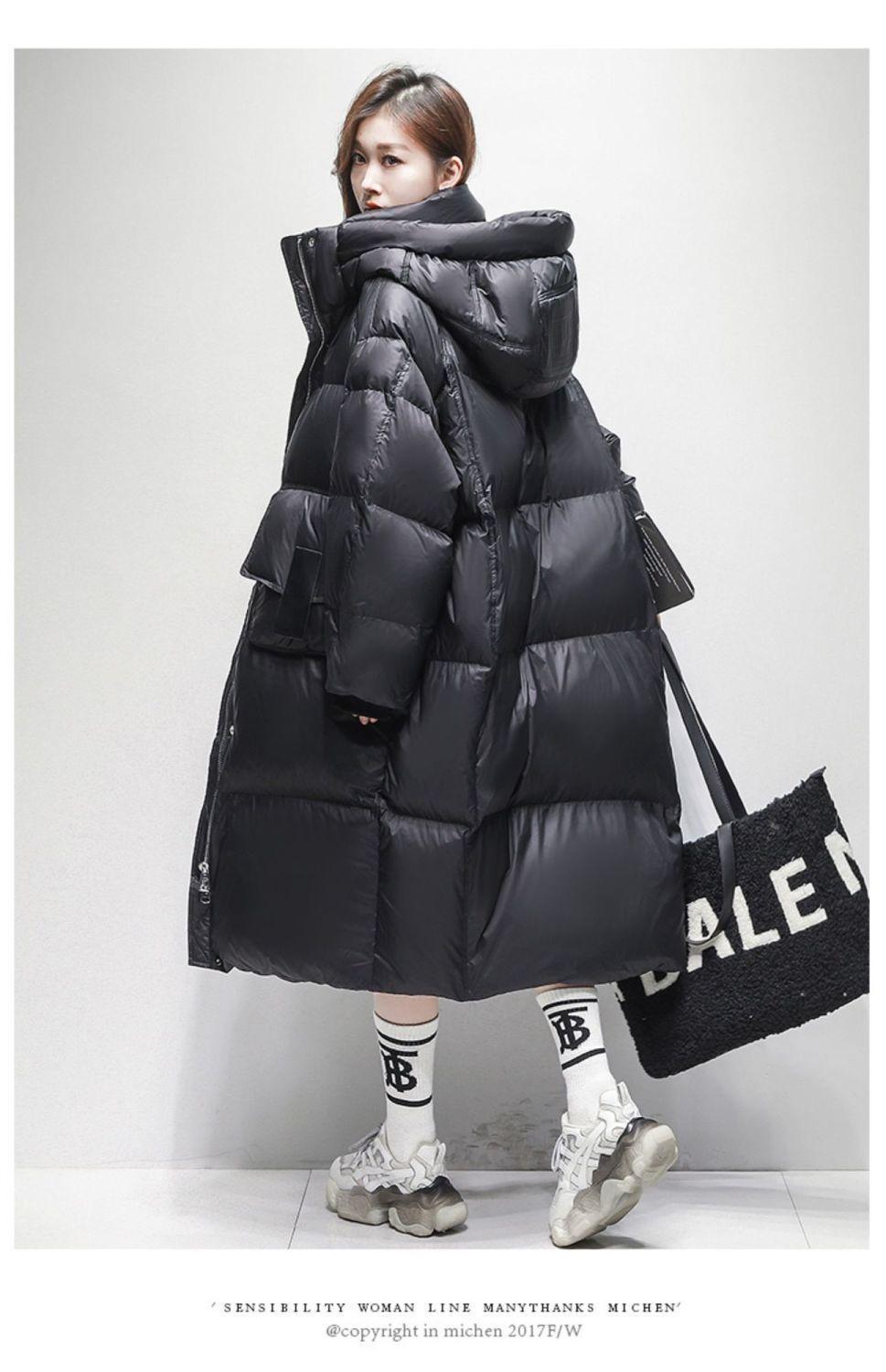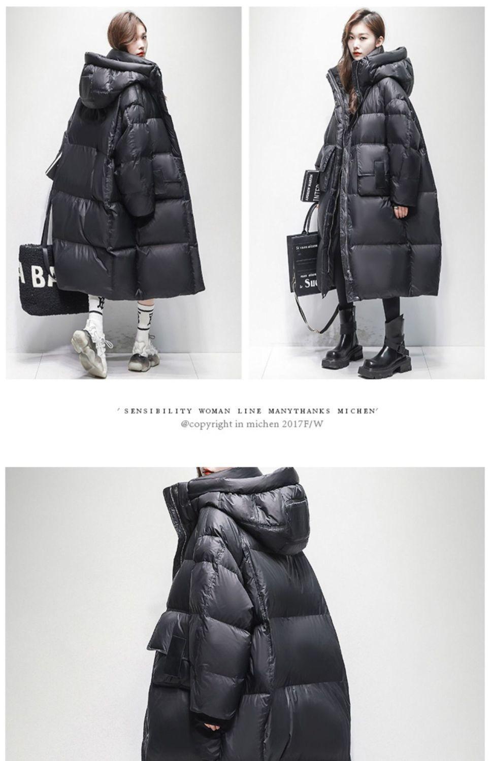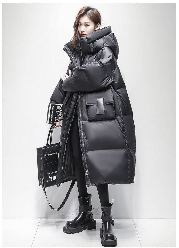 Chamarra de Plumón Maillard para Mujer Invierno 2024 Traje Coreano de Pan por Encima de la Rodilla Grueso Largo Medio Chamarra de Plumón de Pato Blanco