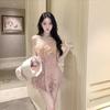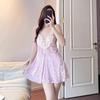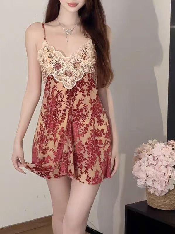 Camisón de Tirantes de Lujo Ligero Verano para Mujer 2025 Nuevo Flor Quemada Francés con Almohadilla en el Busto Encaje Puro Lujuria Pijama Sexy Verano