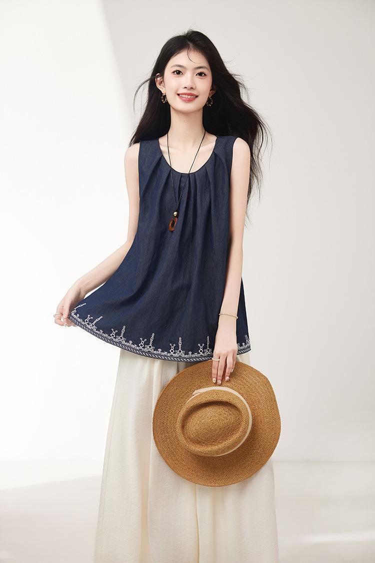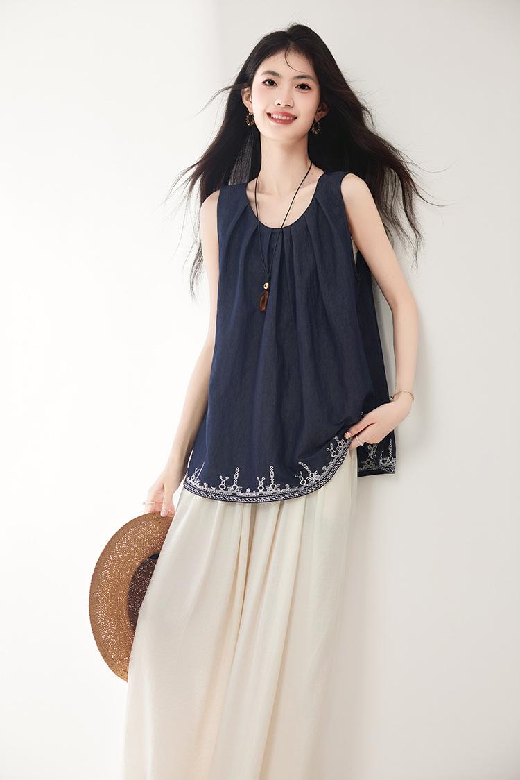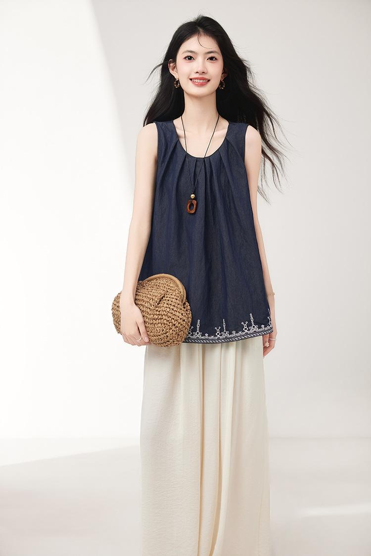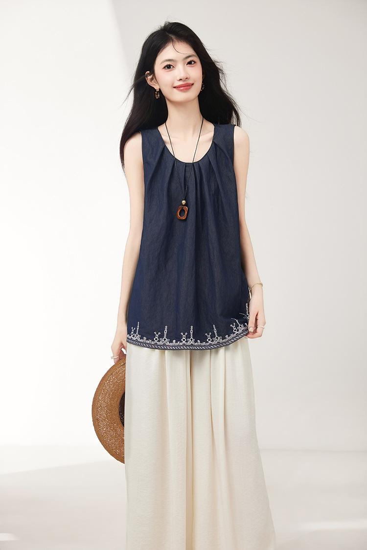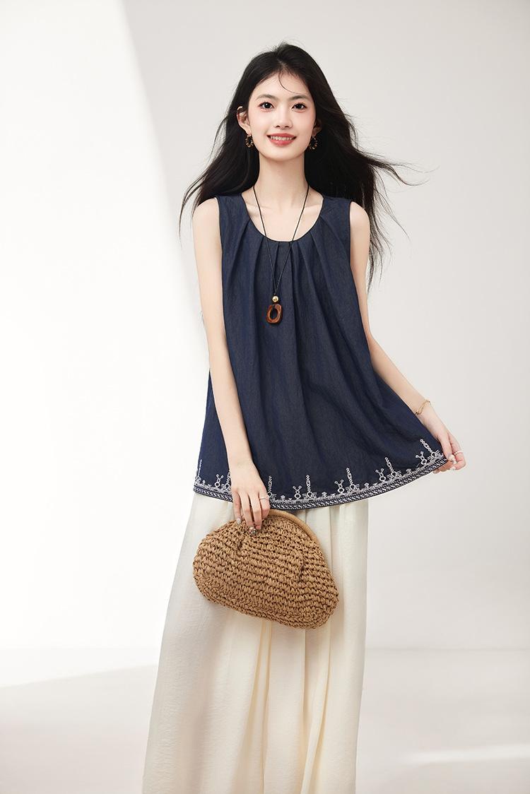 Verano 2025 Nuevo Bordado Pesado Moda de Alta Gama Nicho Diseño Holgado Chaleco Tops de Mujer