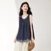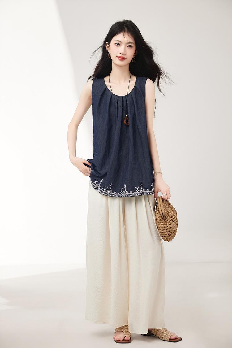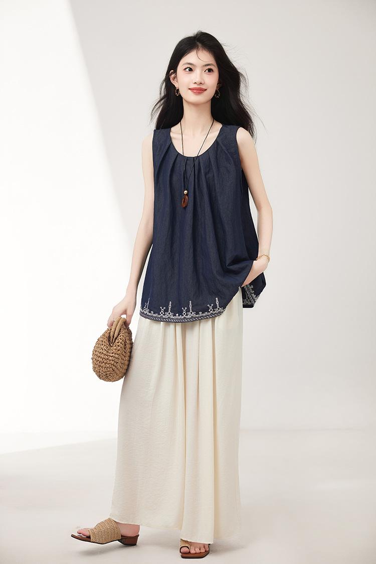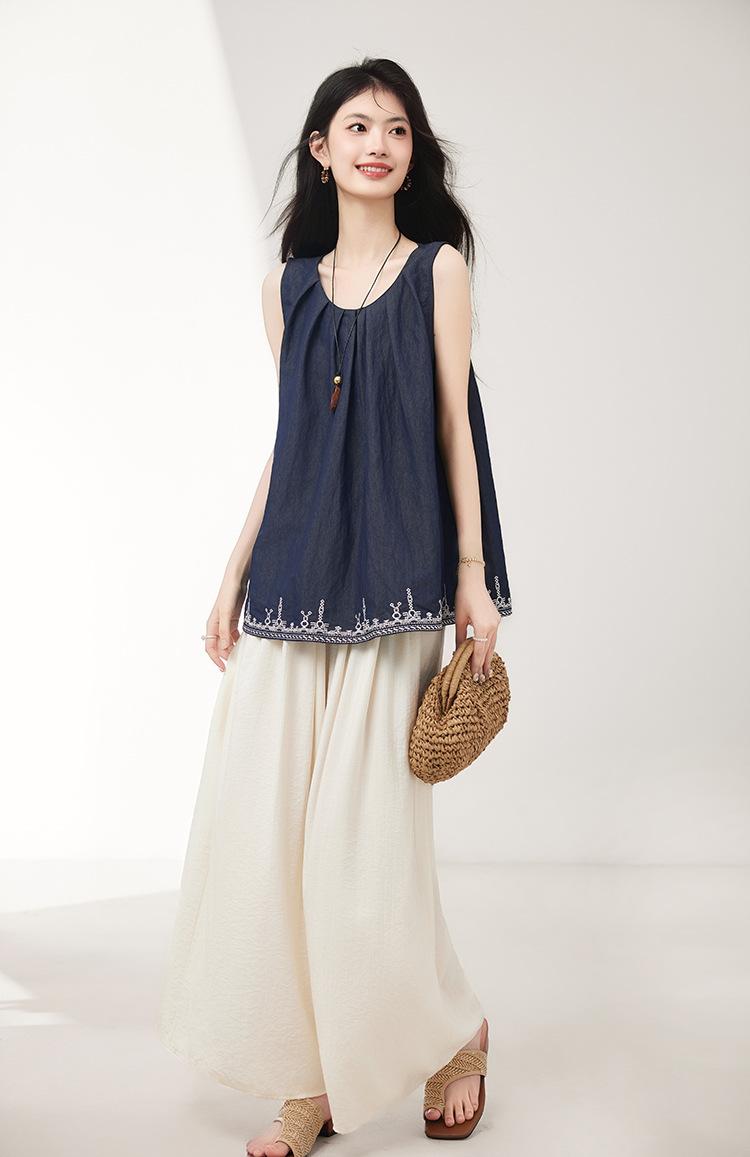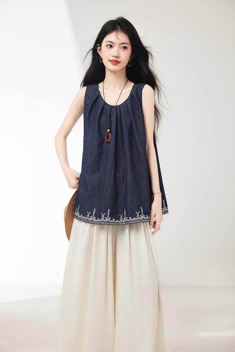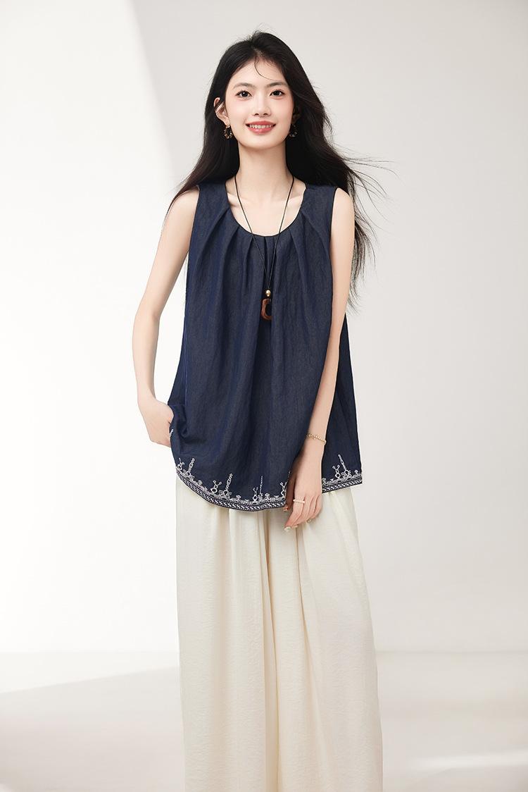 Verano 2025 Nuevo Bordado Pesado Moda de Alta Gama Nicho Diseño Holgado Chaleco Tops de Mujer