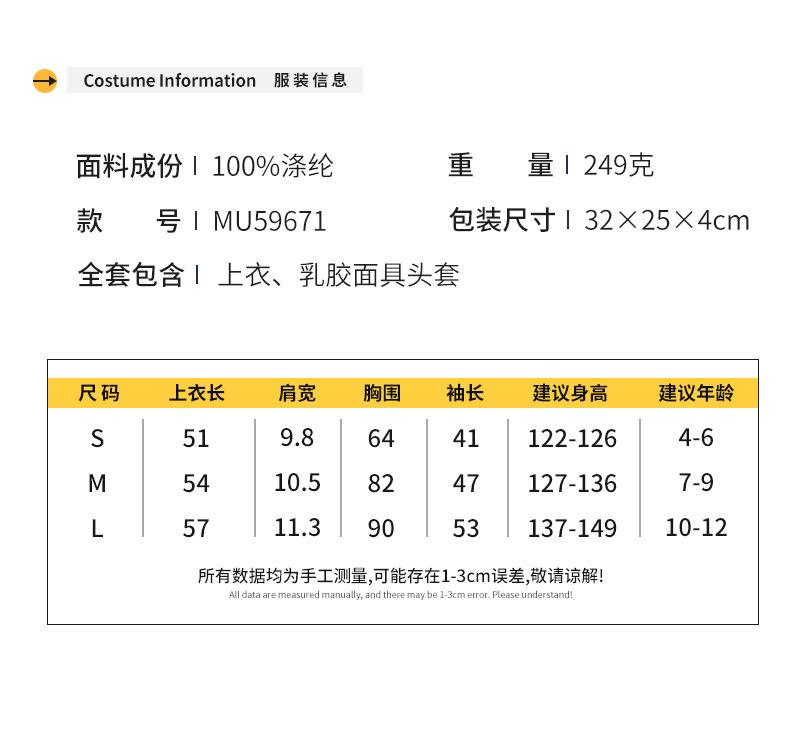 Traje de juego de rol cosplay de personaje de película infantil Gorilla Golden Steel para Halloween