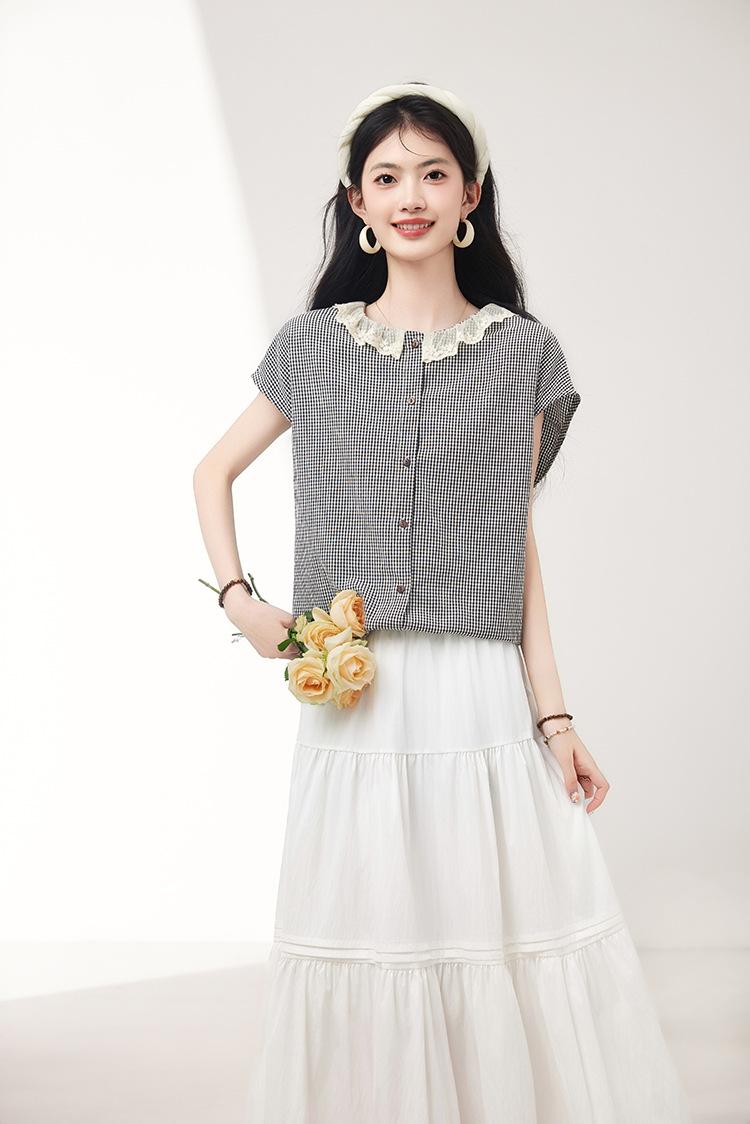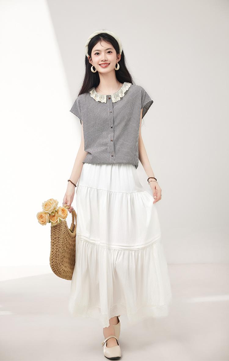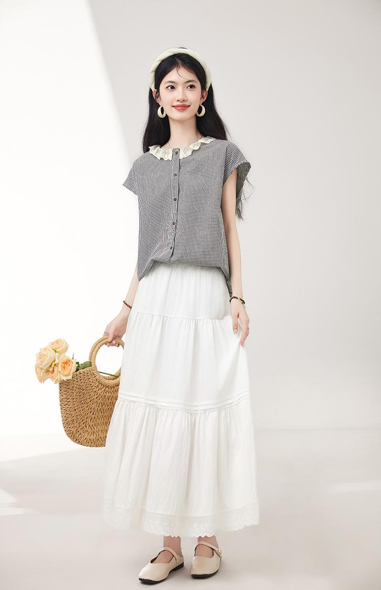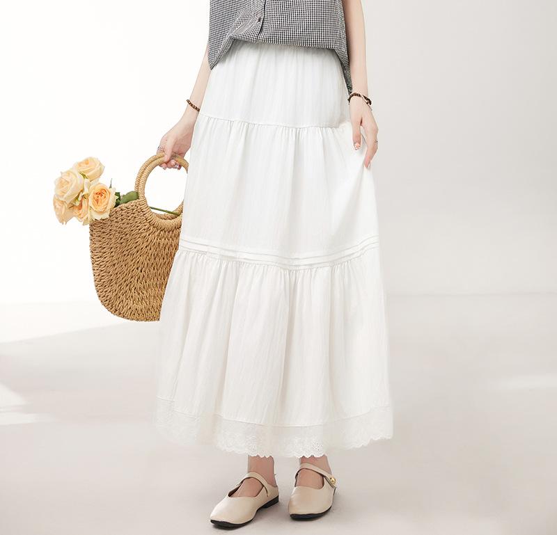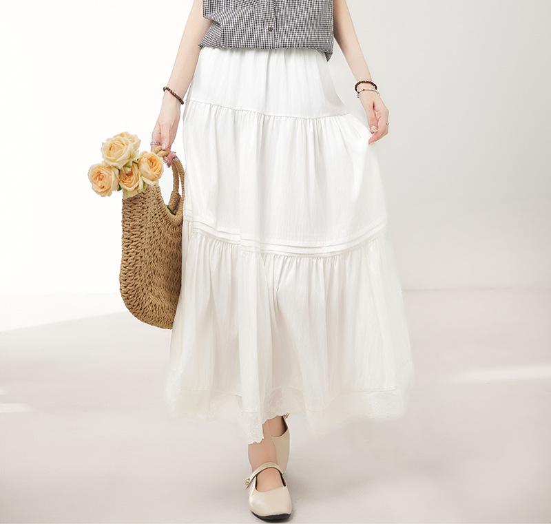Falda para Mujer 2025 Verano Nuevo Estilo Francés Hada Blanco Empalme Encaje Media Longitud Pastel A-Line Falda para Mujer