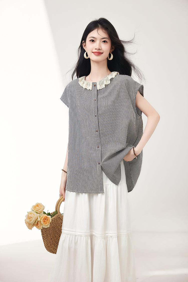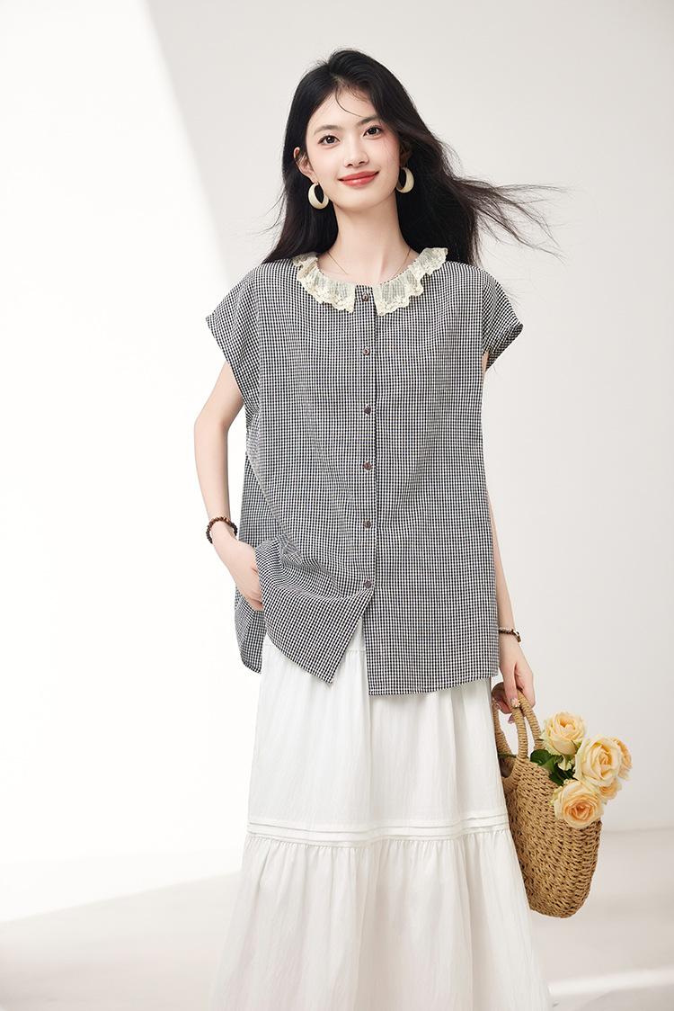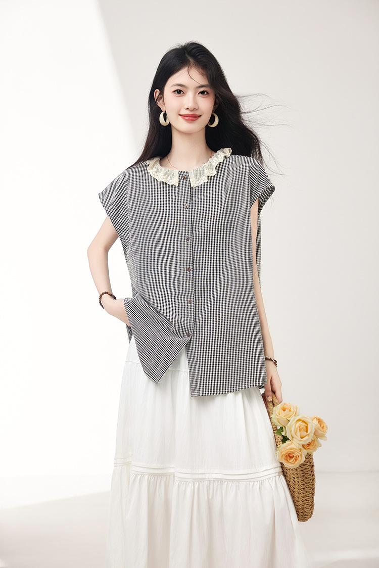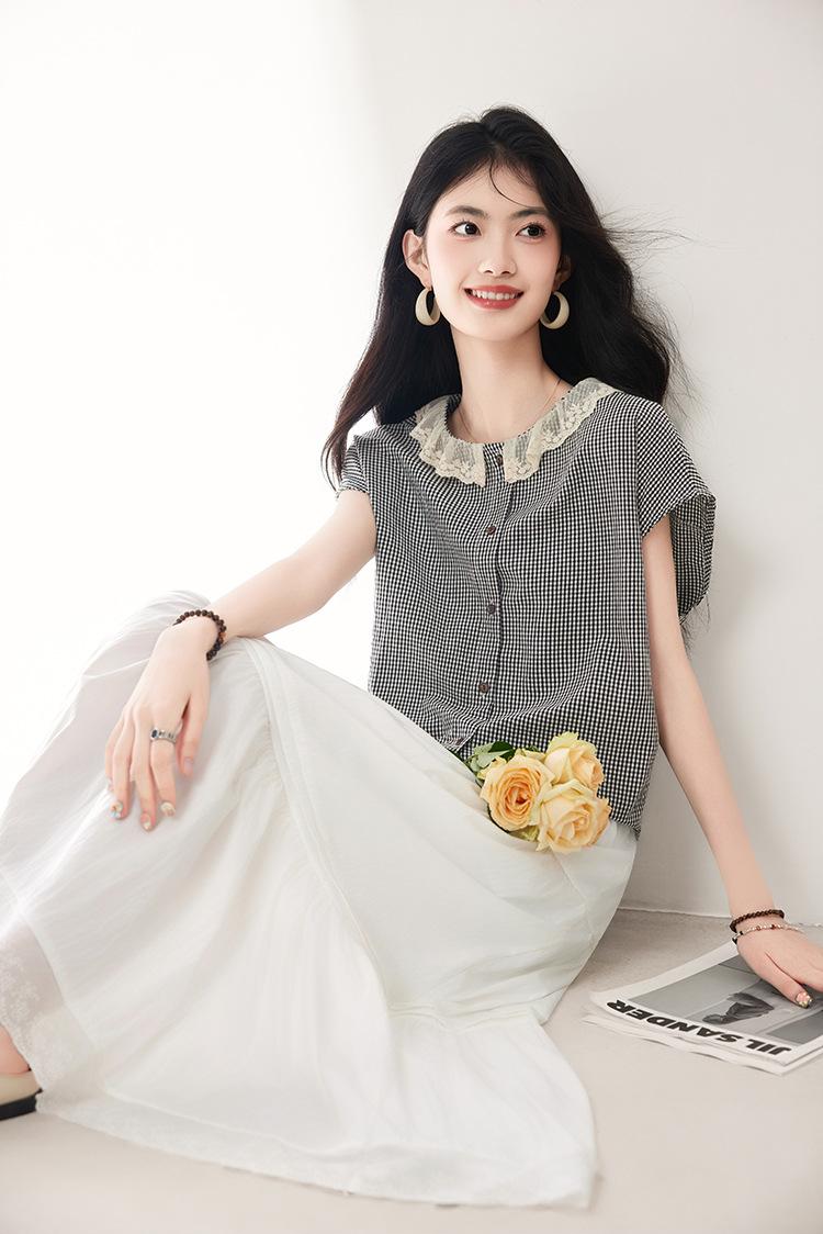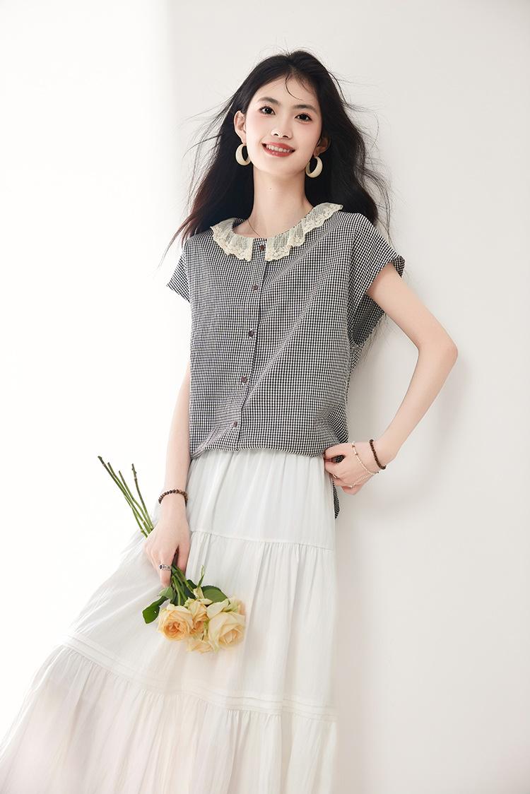 Falda para Mujer 2025 Verano Nuevo Estilo Francés Hada Blanco Empalme Encaje Media Longitud Pastel A-Line Falda para Mujer