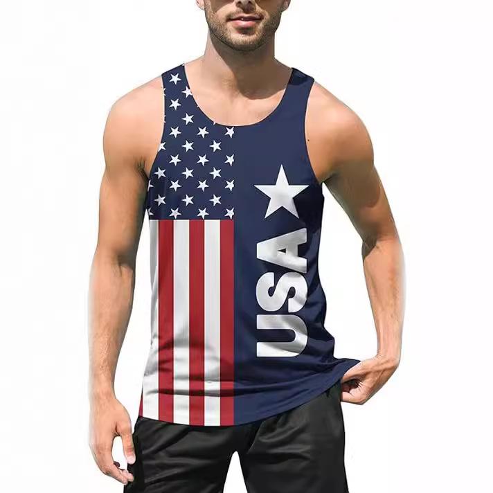 Chaleco para Hombre con Estampado 3D de Nueva Bandera Transfronteriza Amazon Europeo y Americano Suelto Jersey Top Bajo