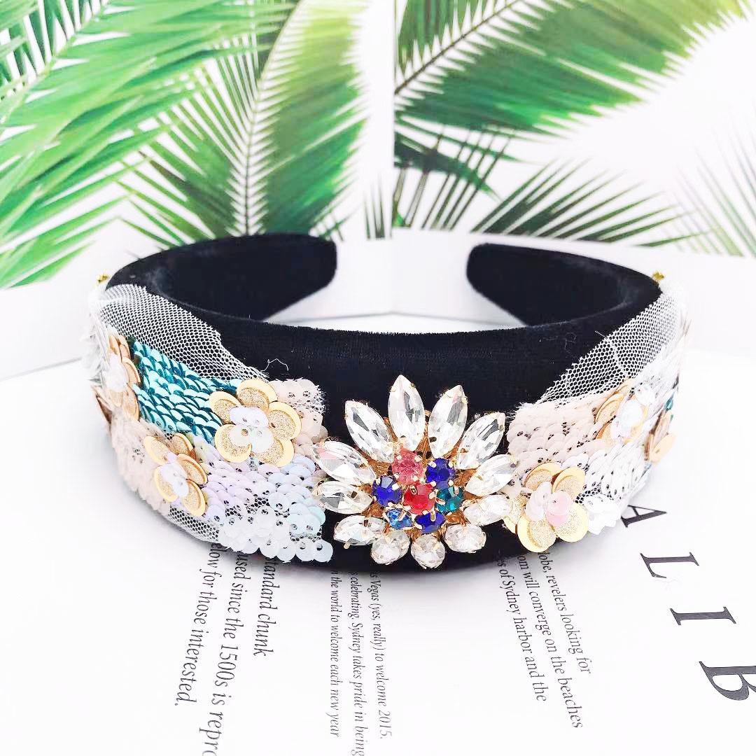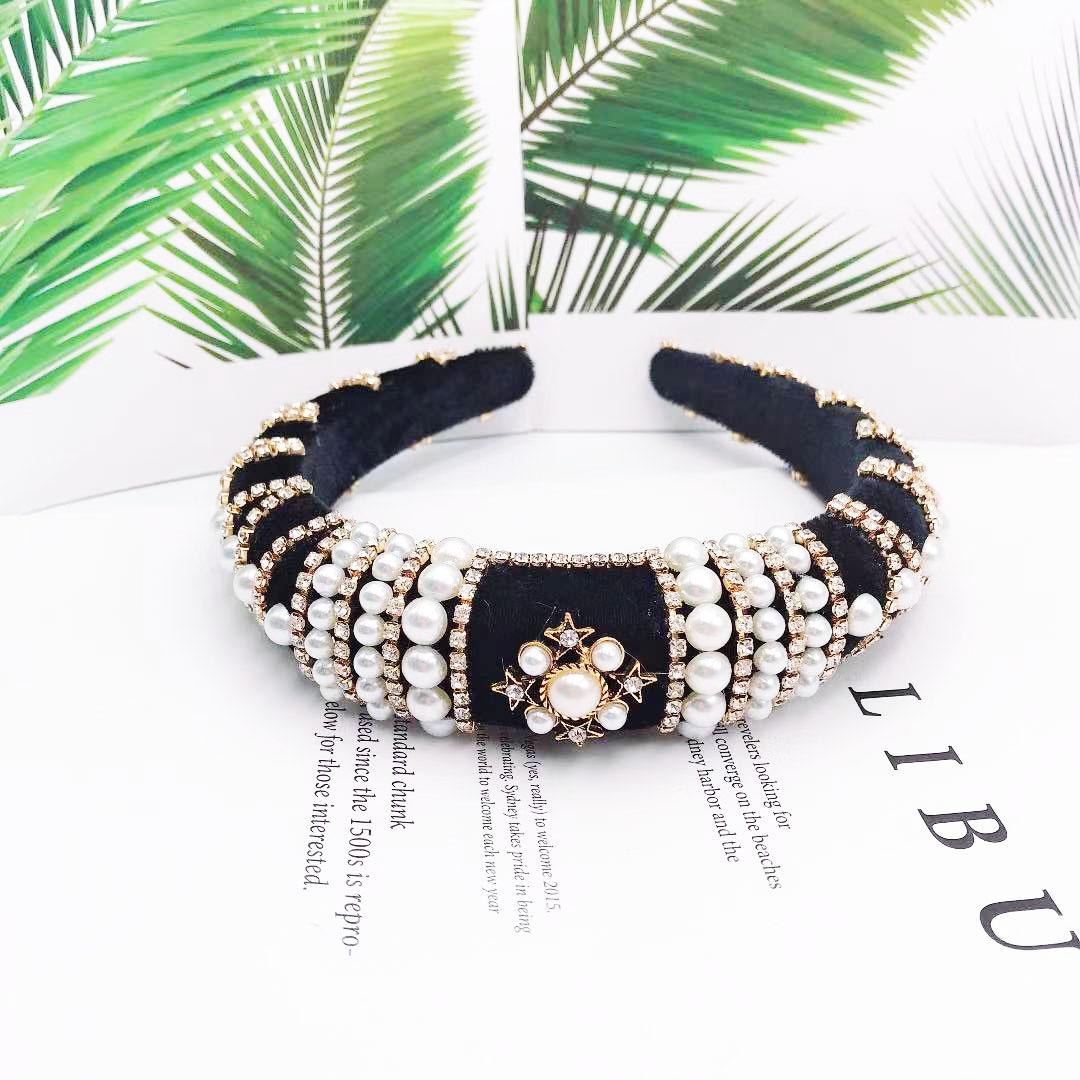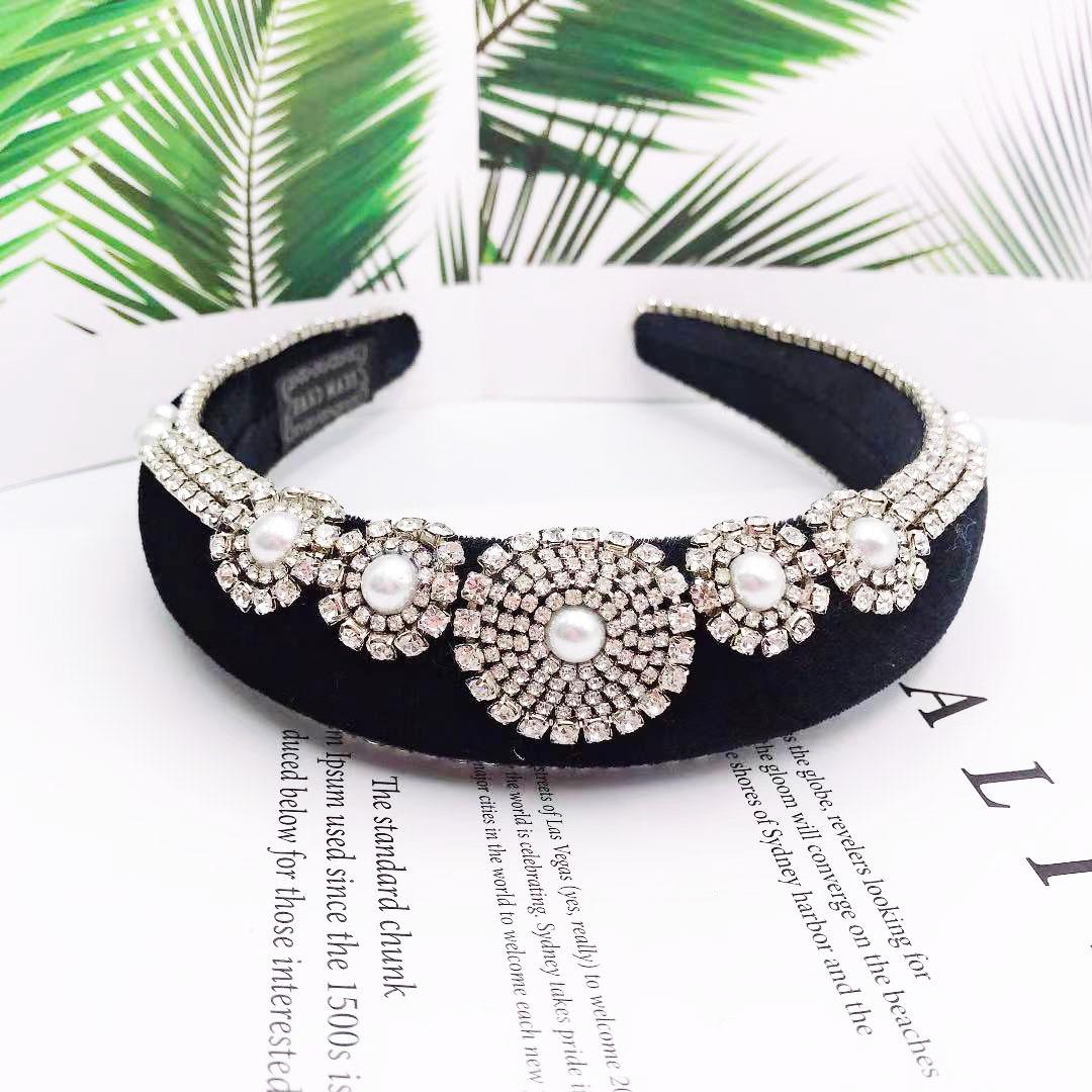 Diadema Barroca Transfronteriza Europea y Americana Personalizada Perla Diamante de Imitación Gema Geométrica Flor Diadema para Mujer Ocio Viaje Accesorios para el Cabello