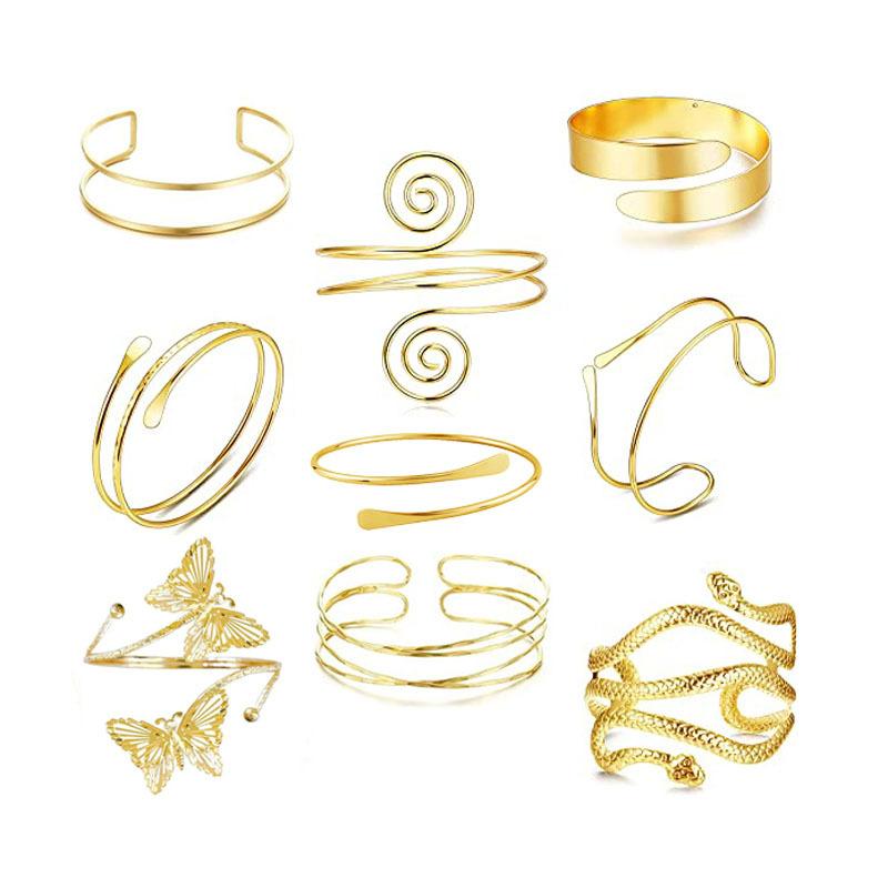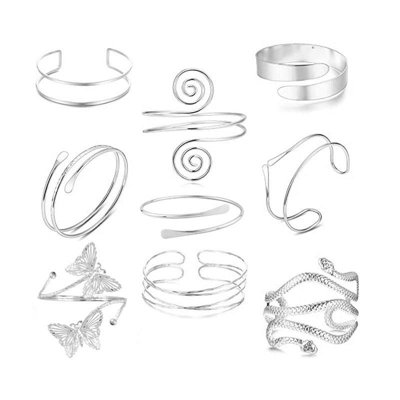 Anillo Europeo y Americano Transfronterizo Hueco Multicapa de Brazo Cruzado Exagerado Personalizado Simple Hip-hop Abierto Ajustable Pulsera de Serpiente para Mujer