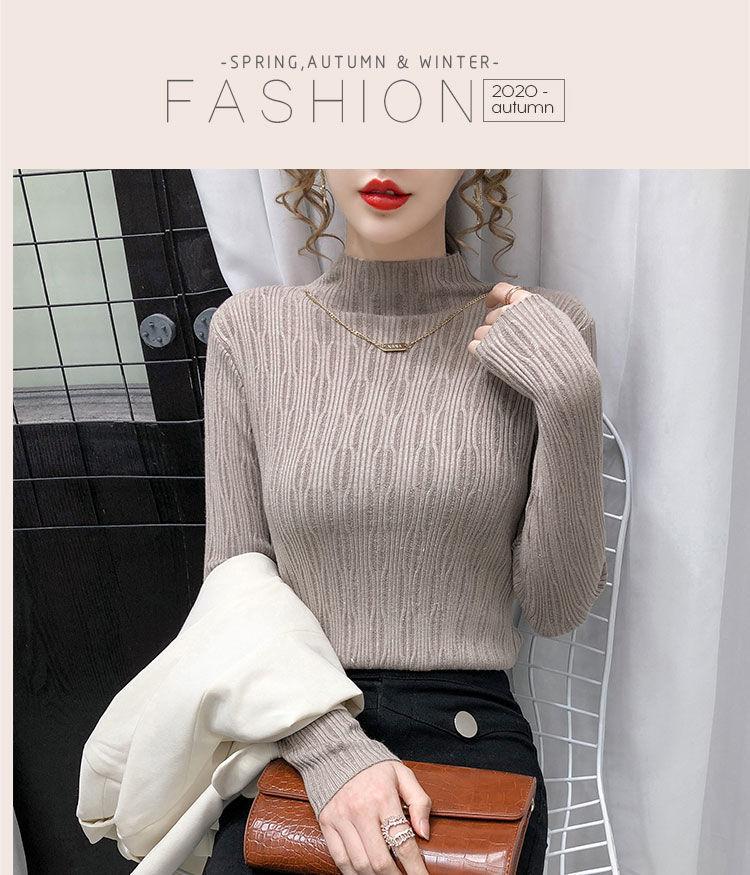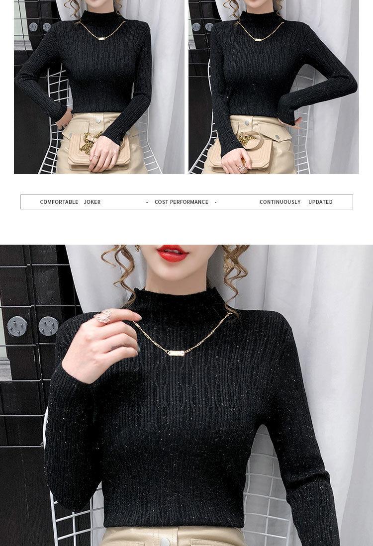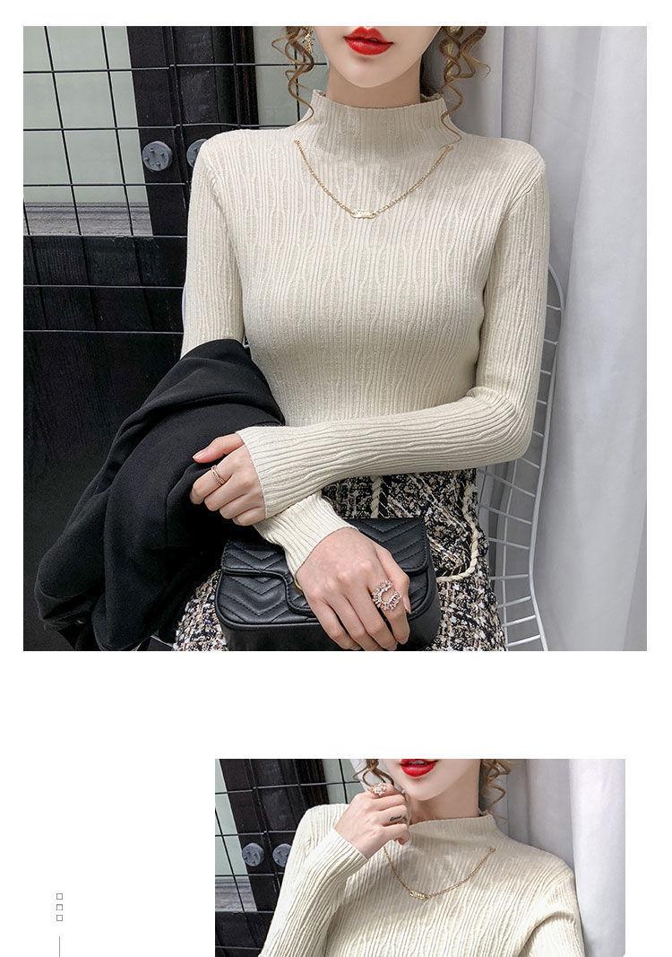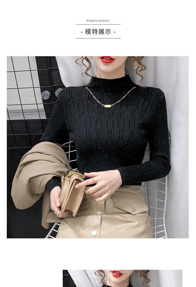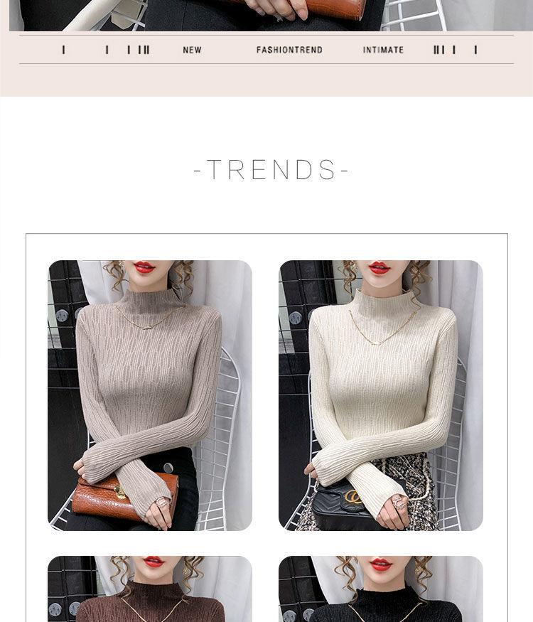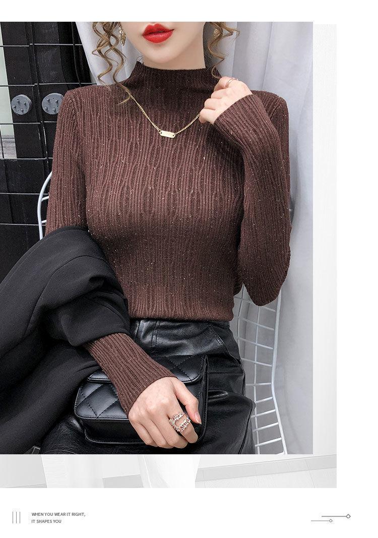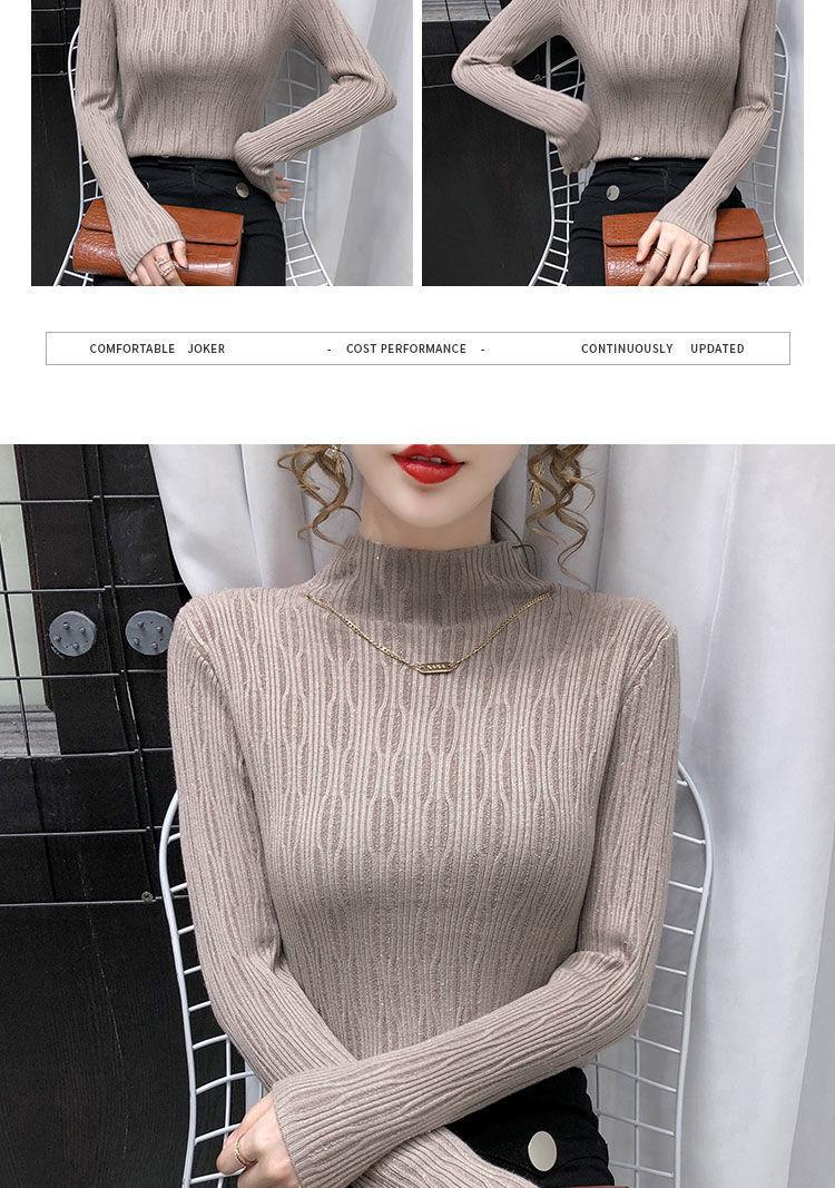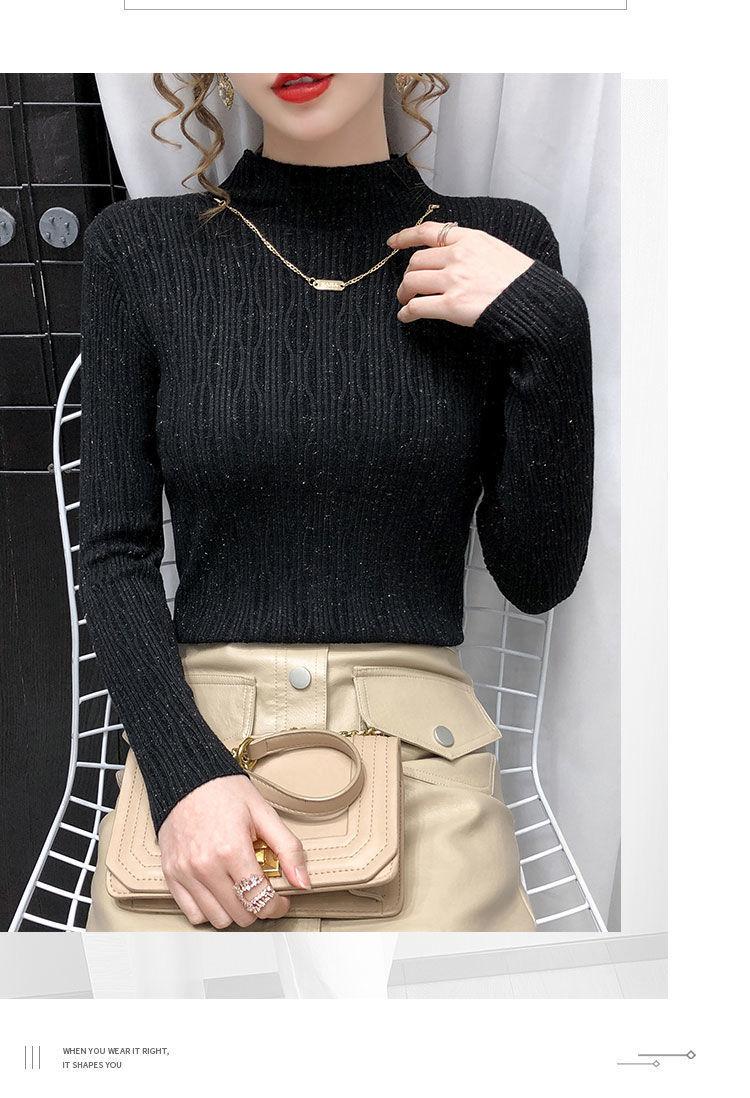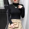 Suéter Nuevo de Primavera y Otoño para Mujer Camiseta Base para Mujer Top Interior de Manga Larga Ajustado Combinable Suéter de Medio Cuello para Mujer
