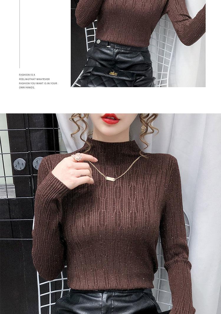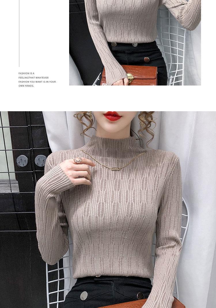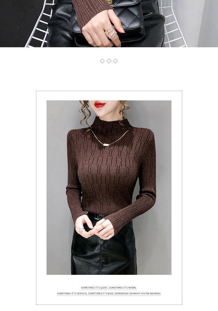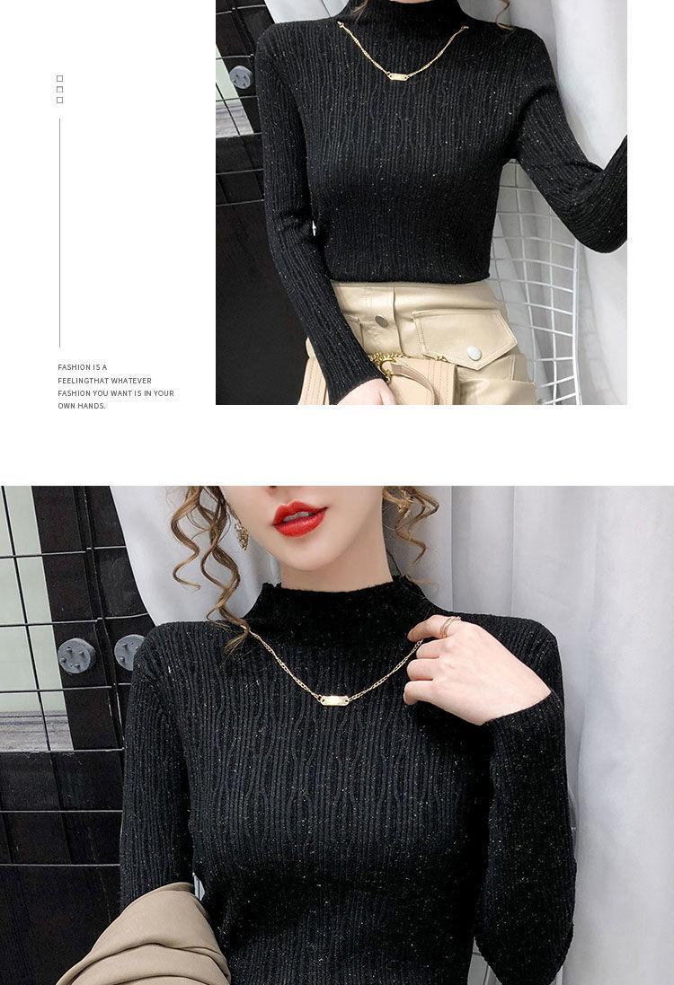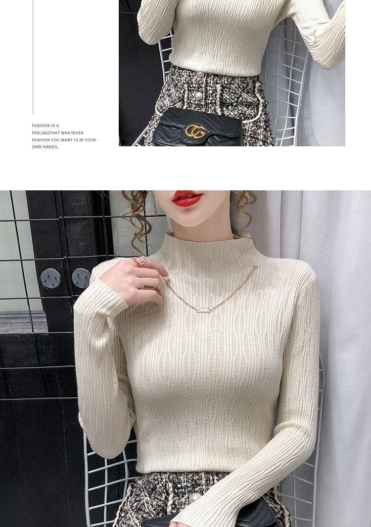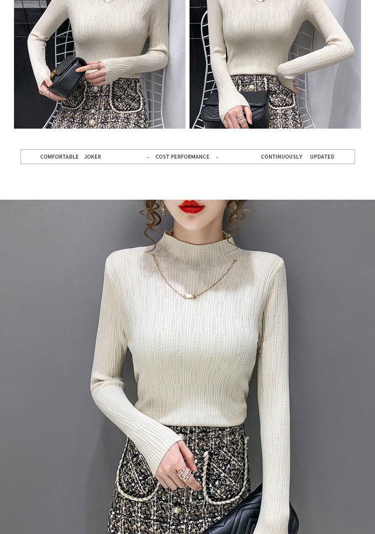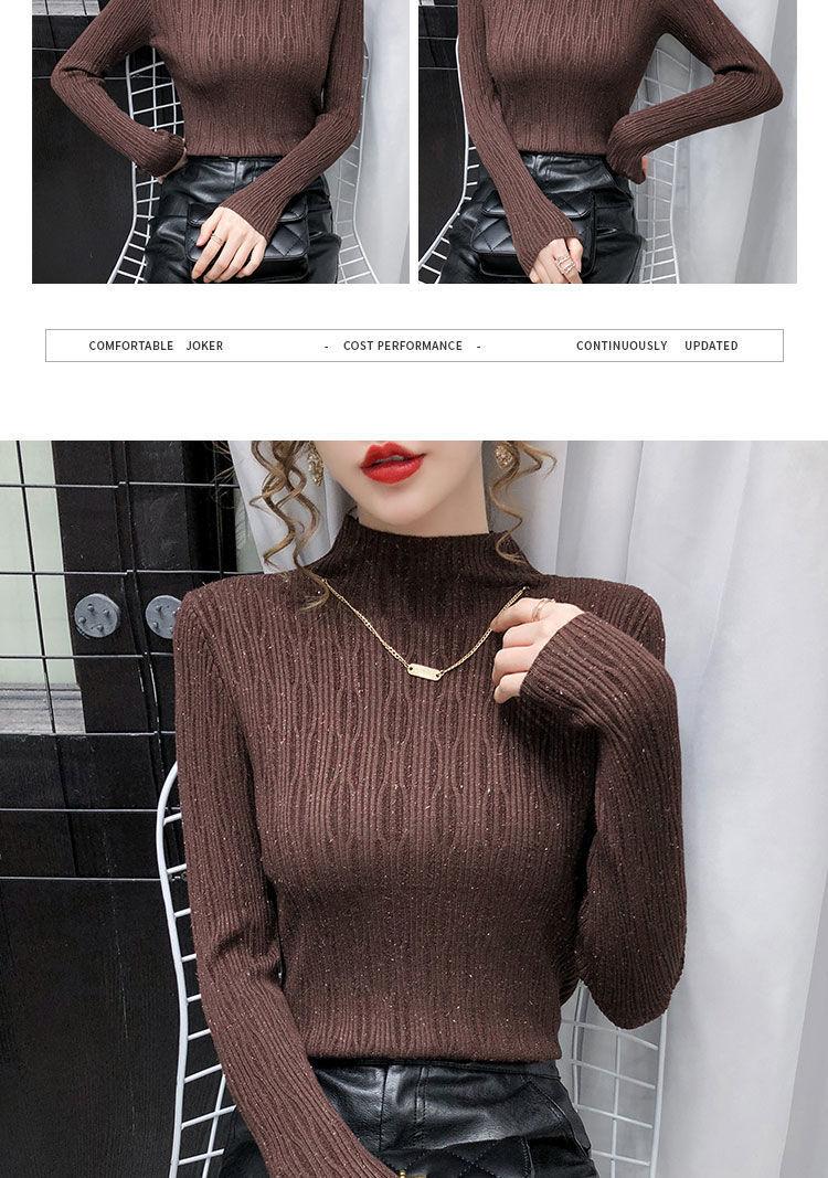 Suéter Nuevo de Primavera y Otoño para Mujer Camiseta Base para Mujer Top Interior de Manga Larga Ajustado Combinable Suéter de Medio Cuello para Mujer