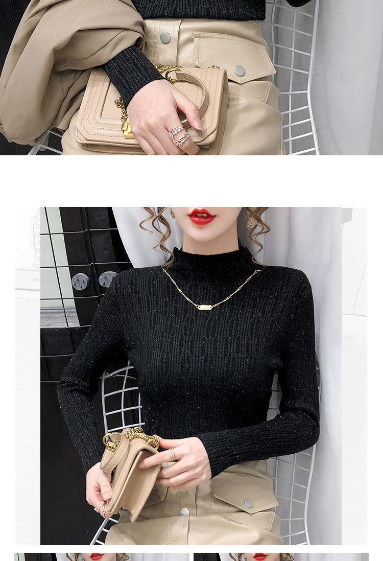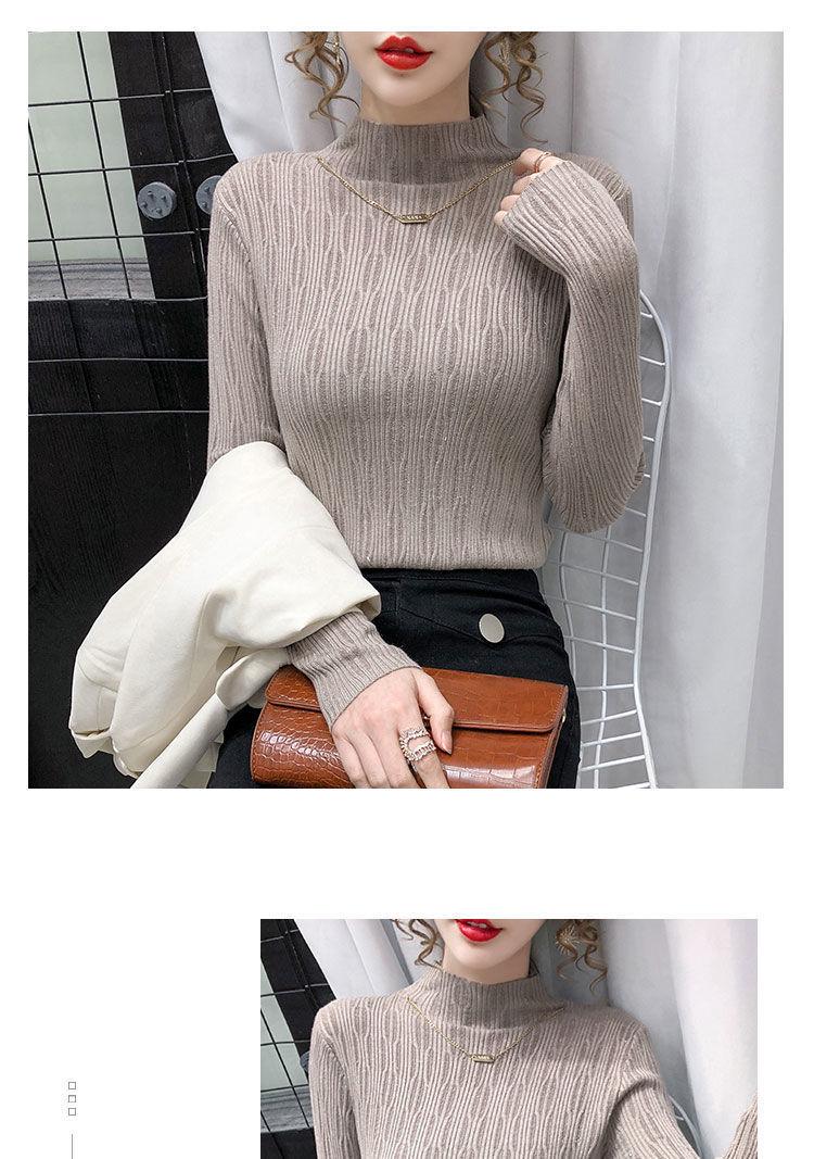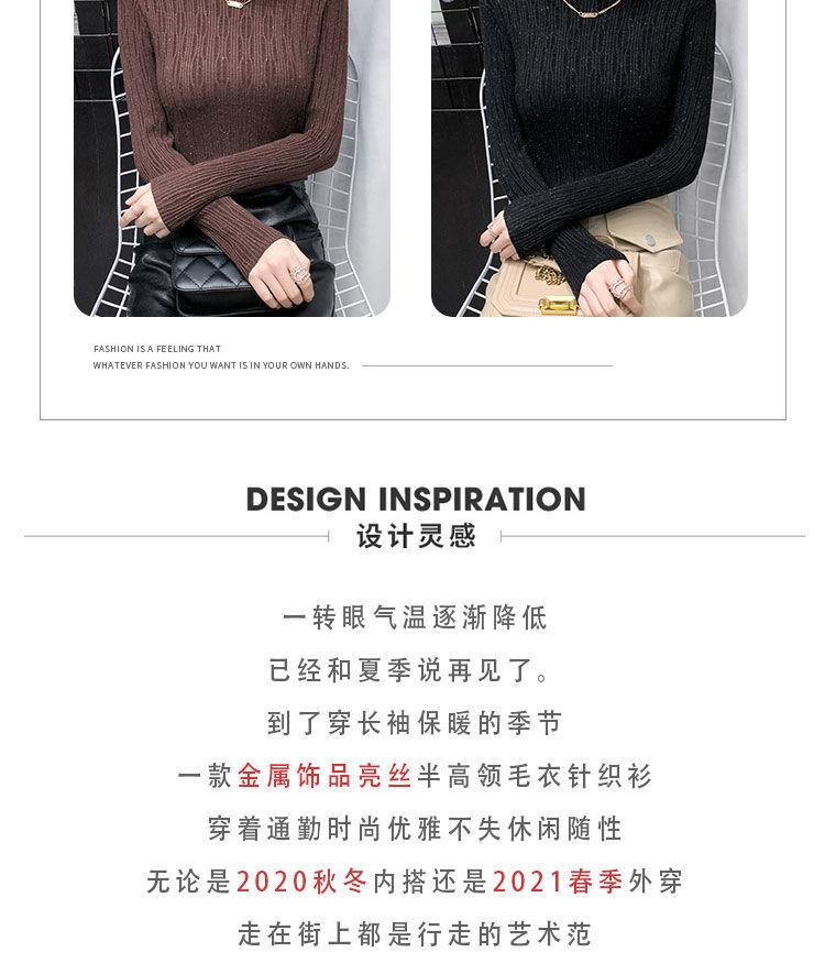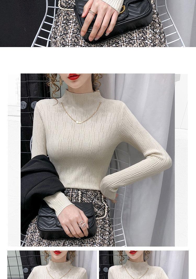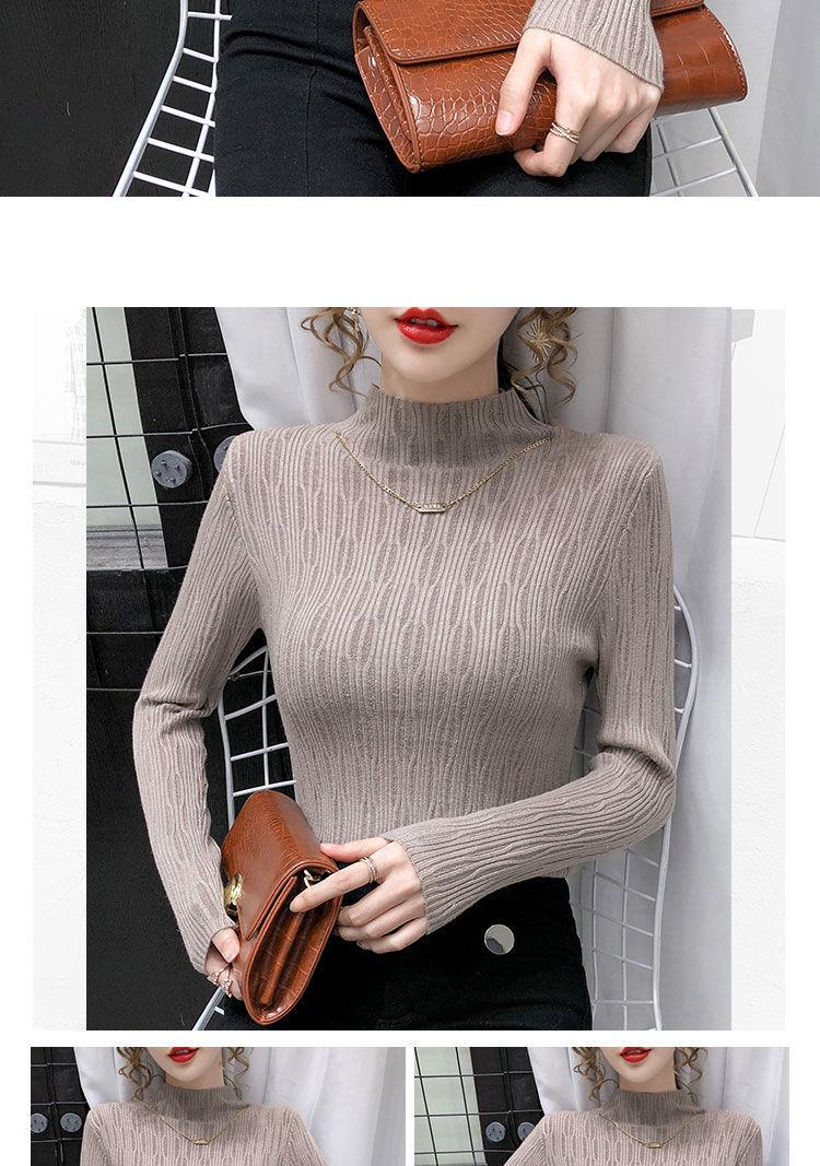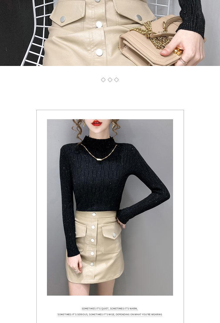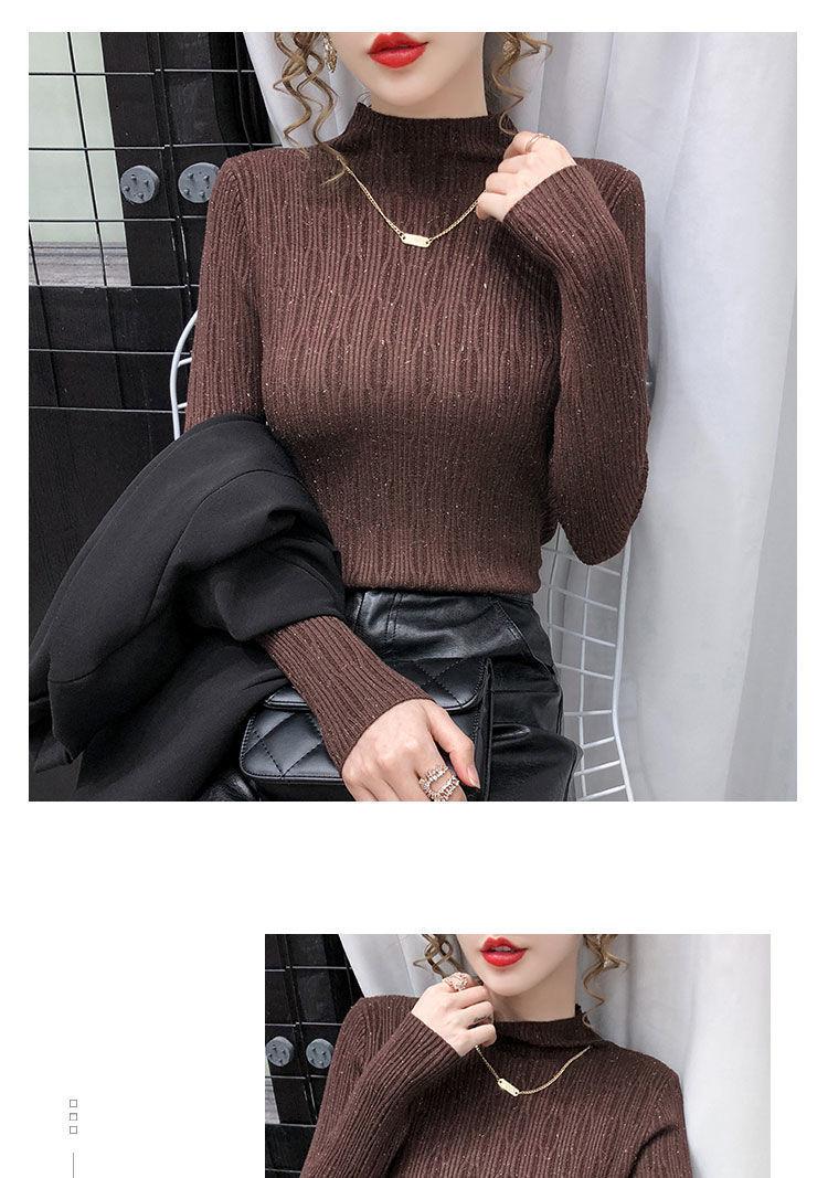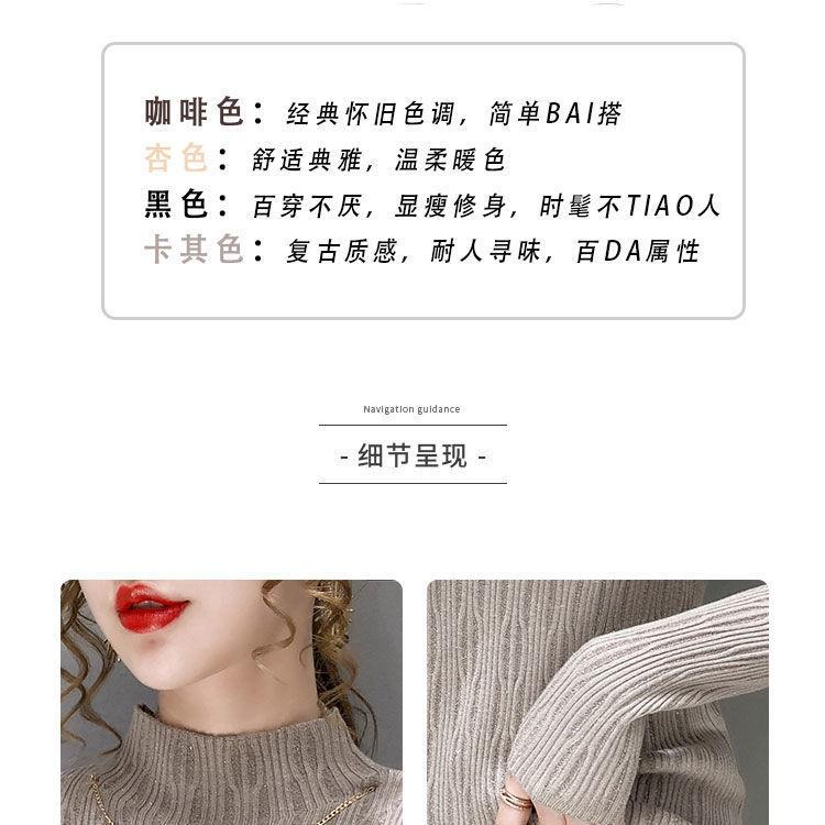 Suéter Nuevo de Primavera y Otoño para Mujer Camiseta Base para Mujer Top Interior de Manga Larga Ajustado Combinable Suéter de Medio Cuello para Mujer