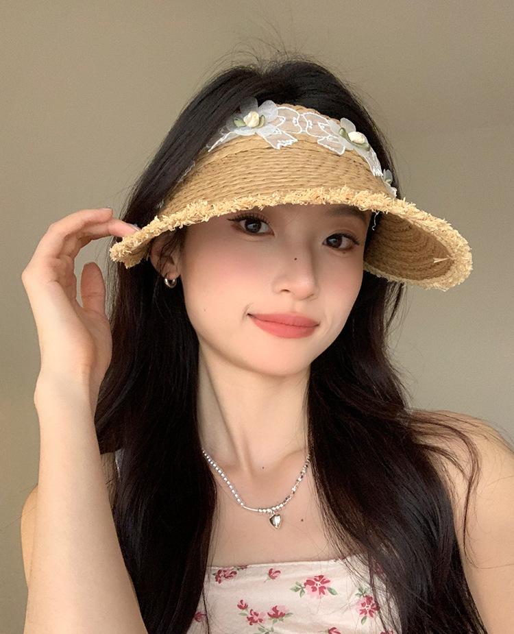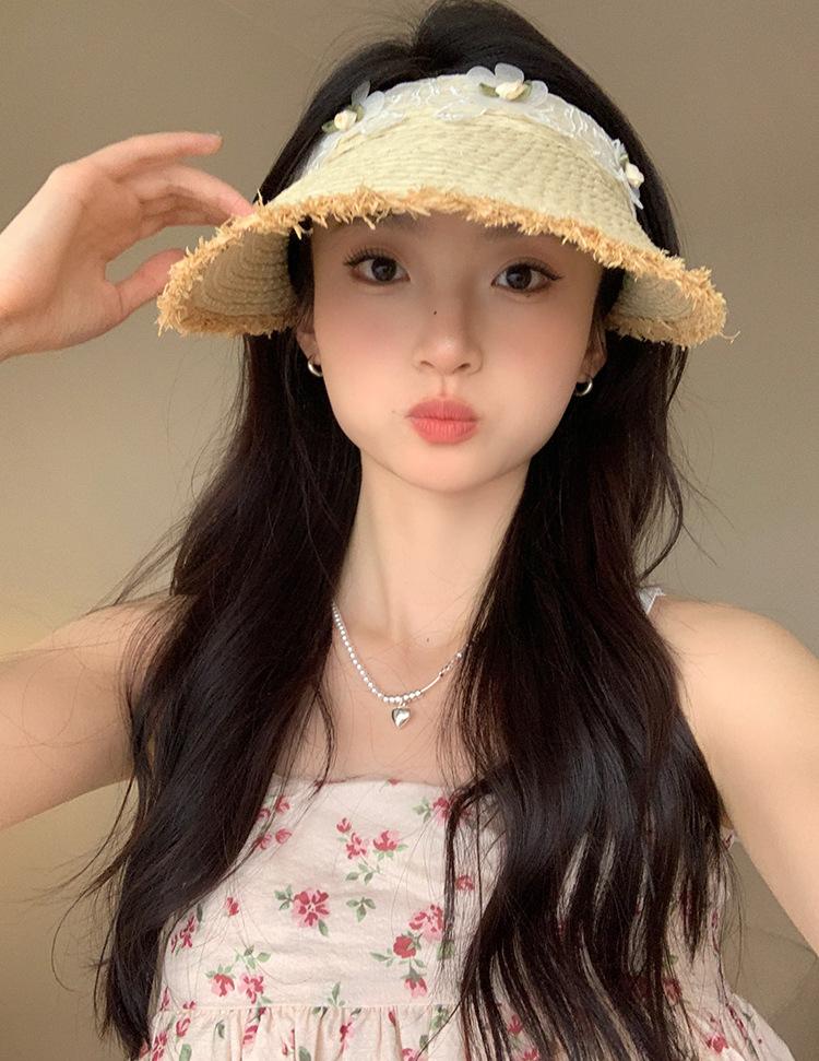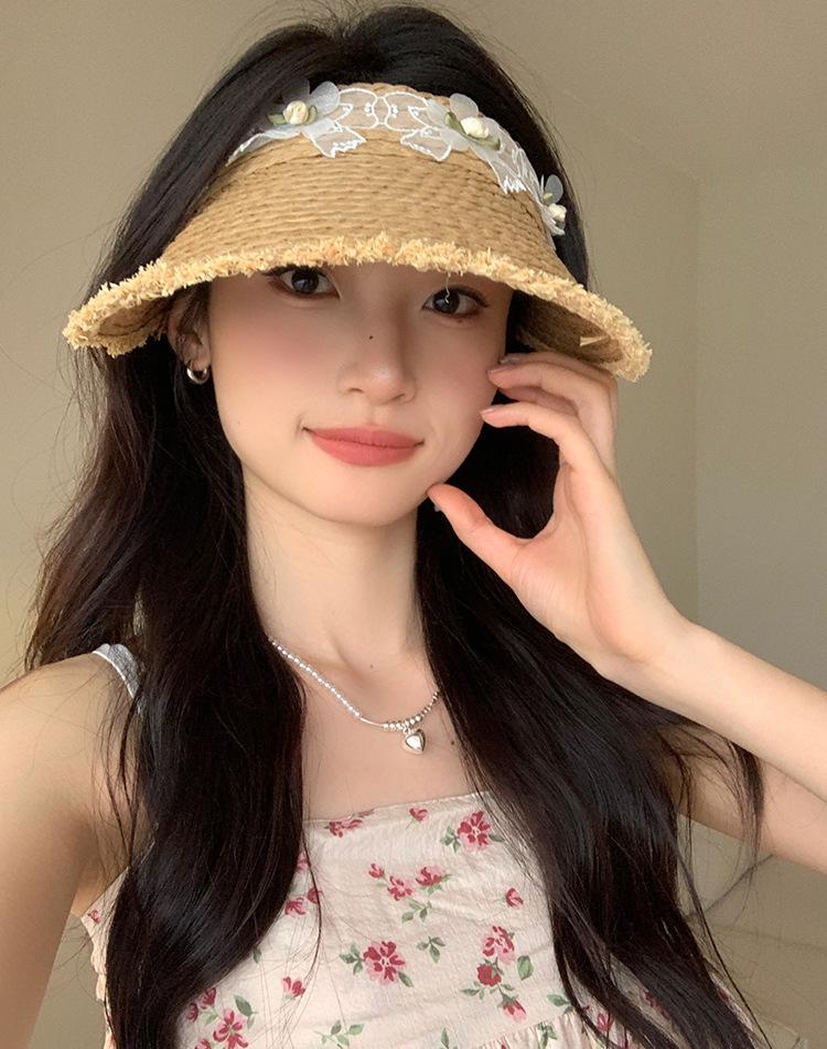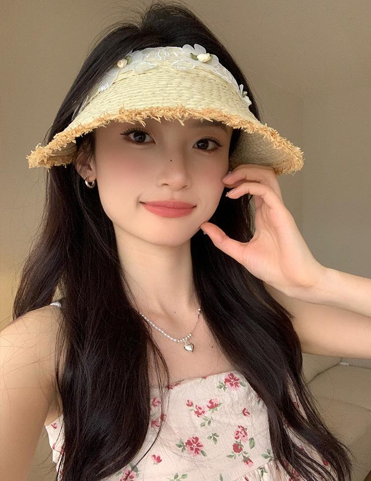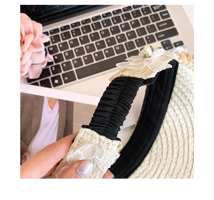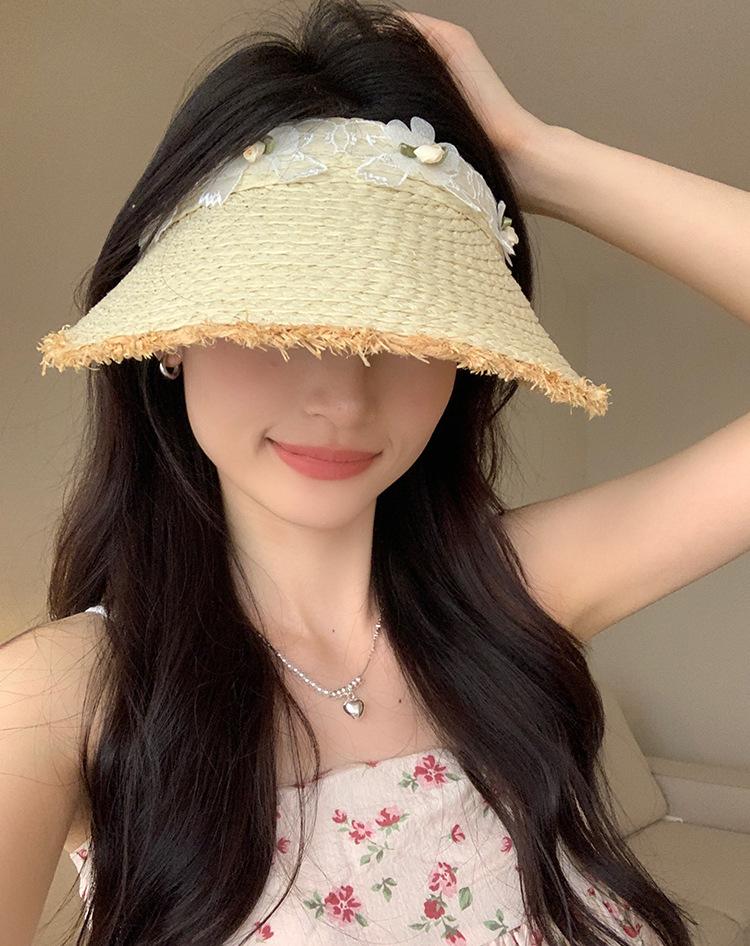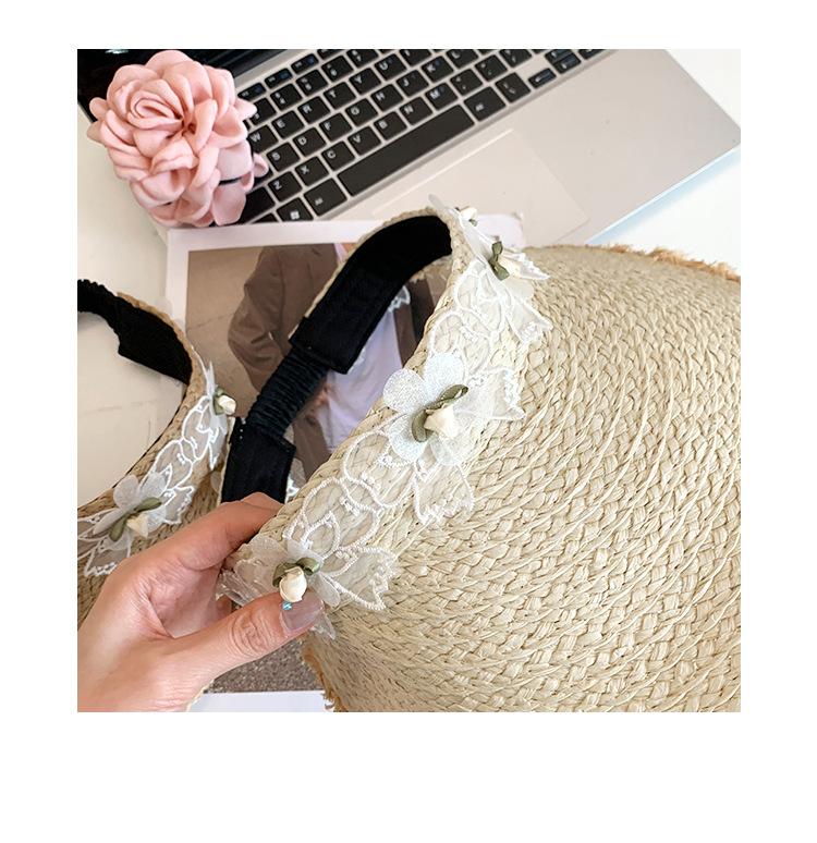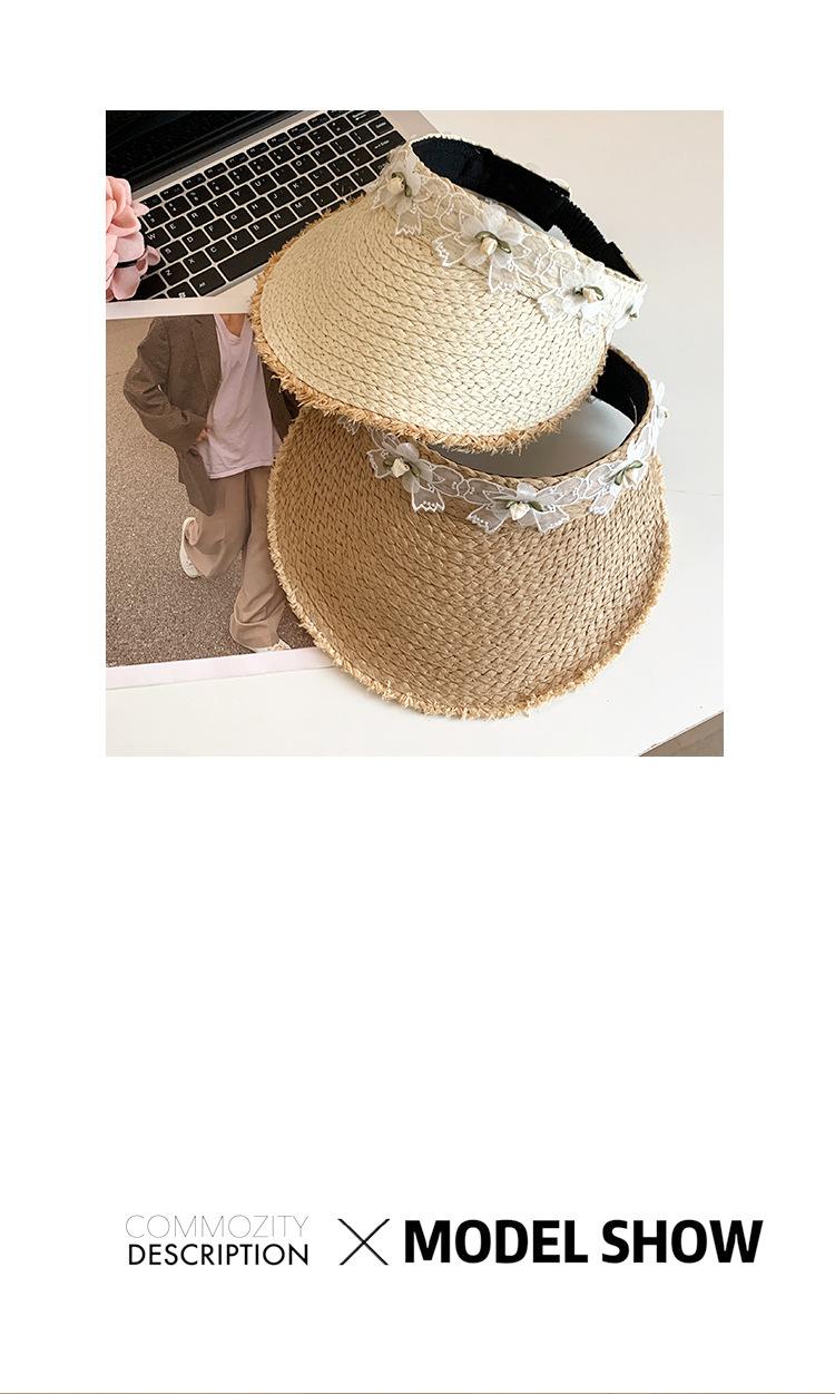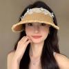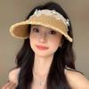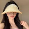 Sombrero de Paja de Copa Vacía con Lazo de Flor para Mujer Nuevo Estilo Coreano Versátil Casual para Viaje al Aire Libre Sombrero de Ala Ancha para Protección Solar