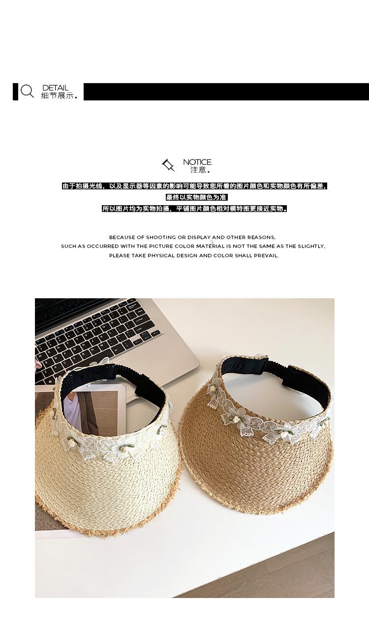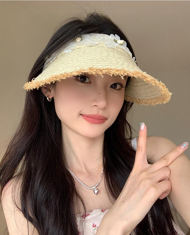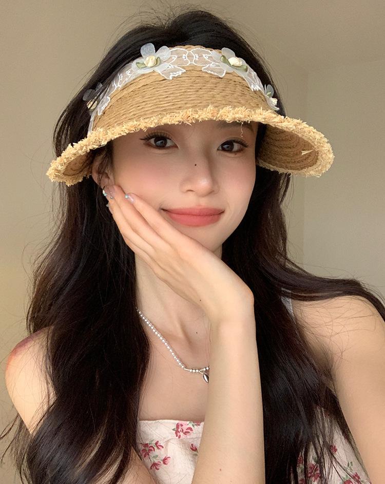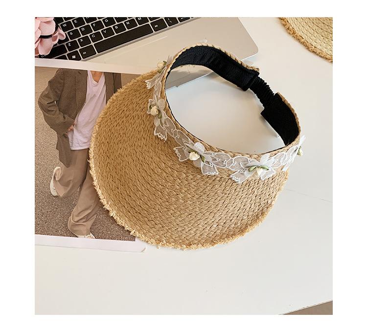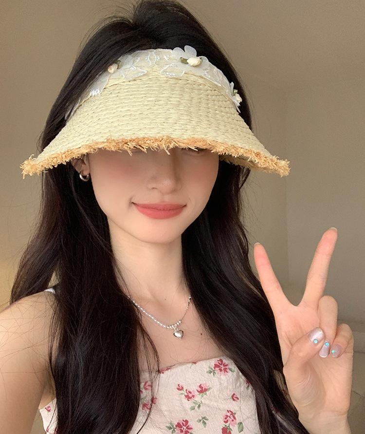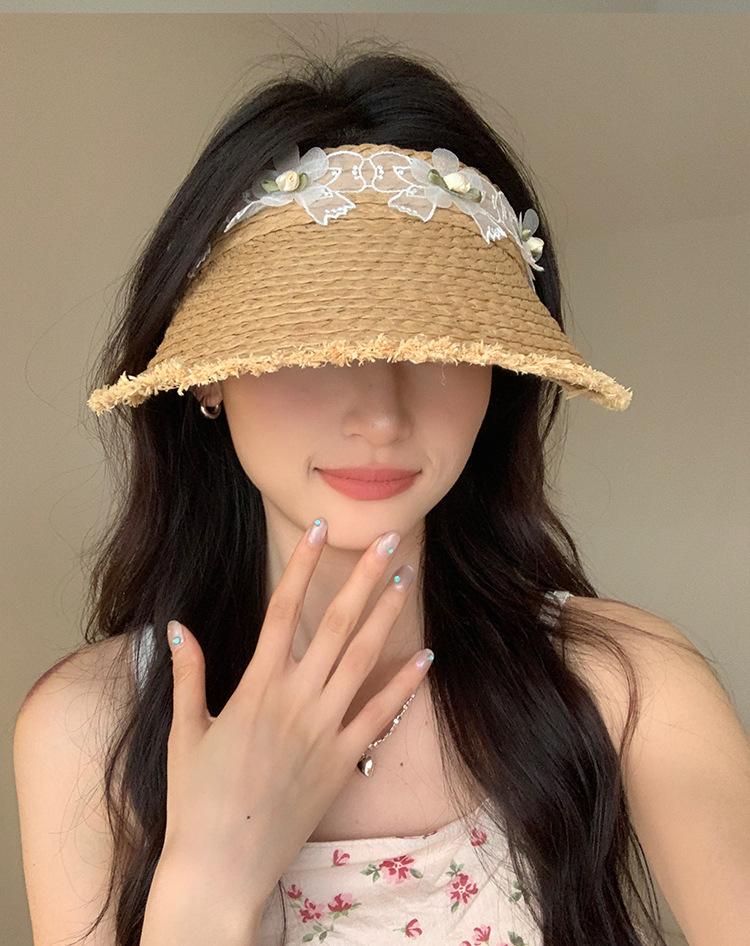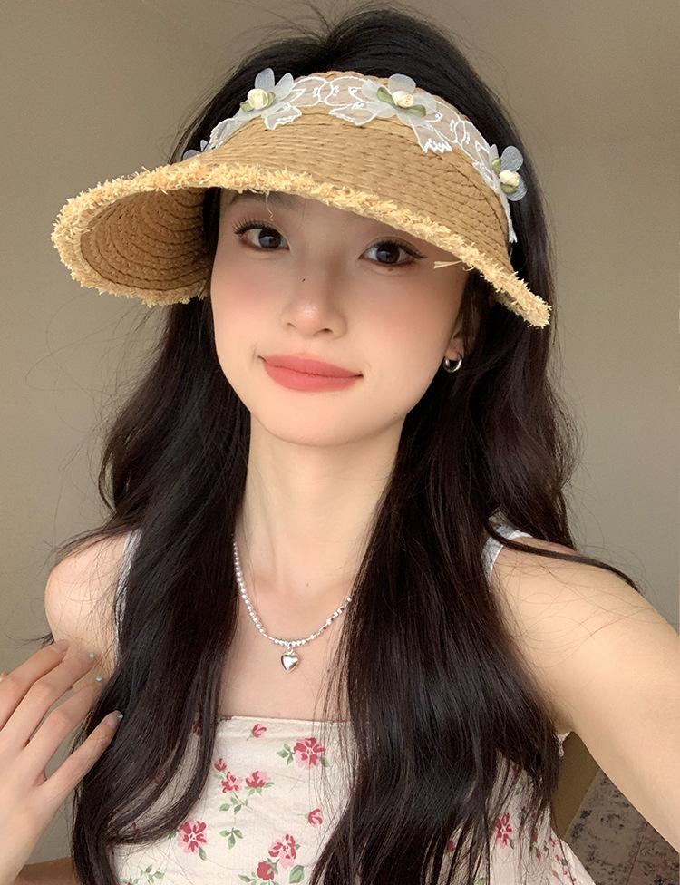 Sombrero de Paja de Copa Vacía con Lazo de Flor para Mujer Nuevo Estilo Coreano Versátil Casual para Viaje al Aire Libre Sombrero de Ala Ancha para Protección Solar