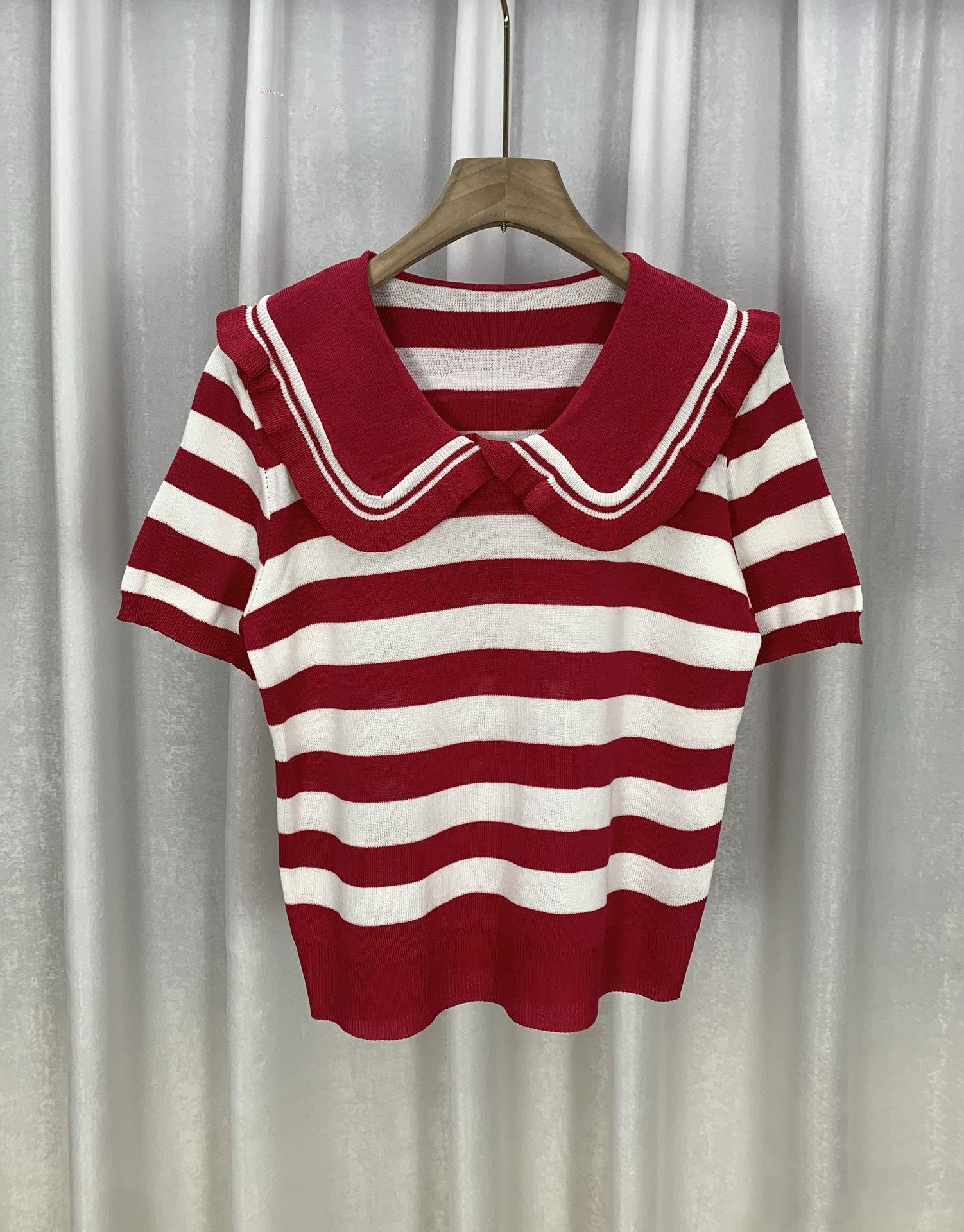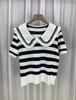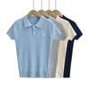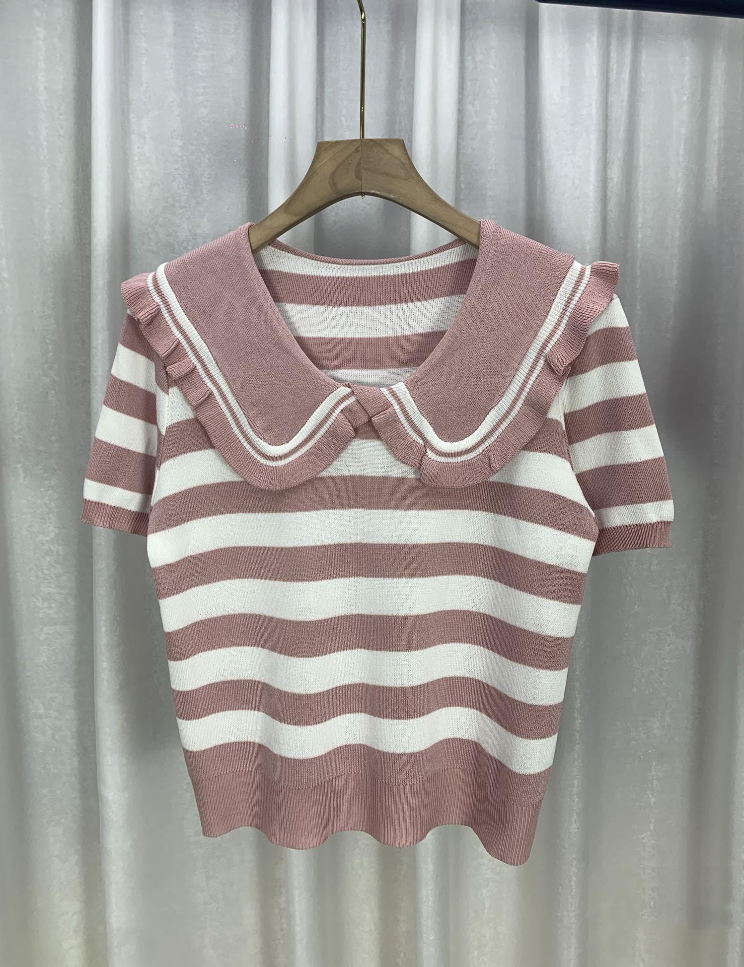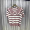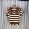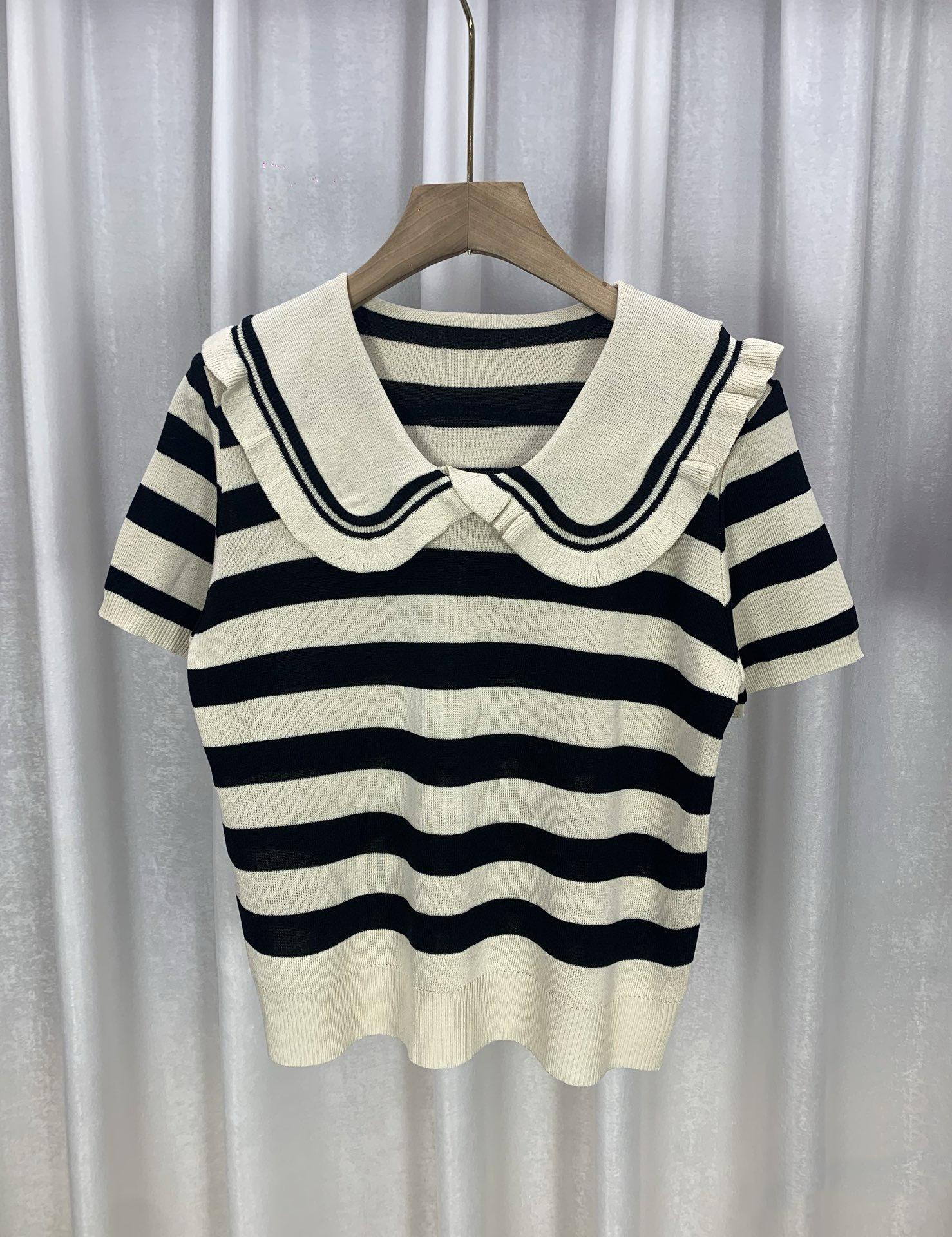 Polo para mujer suéter de manga corta 2024 adelgazante versátil chica hot retro verano nuevo top corto a rayas para mujer