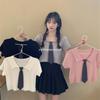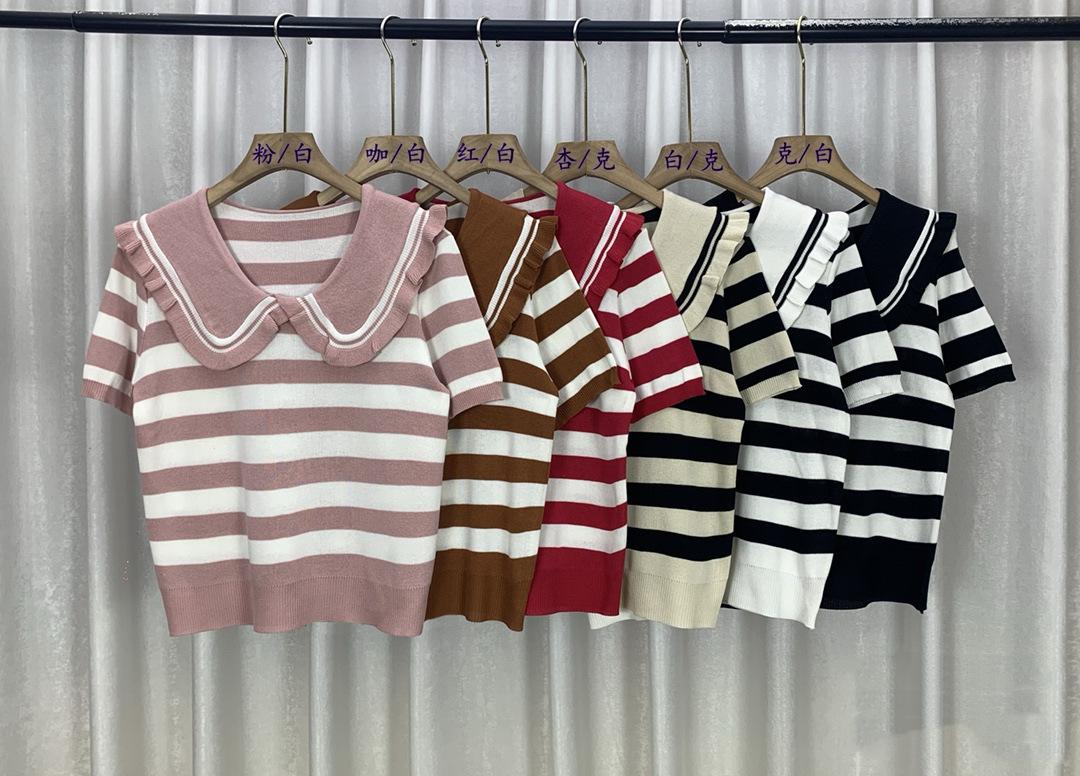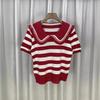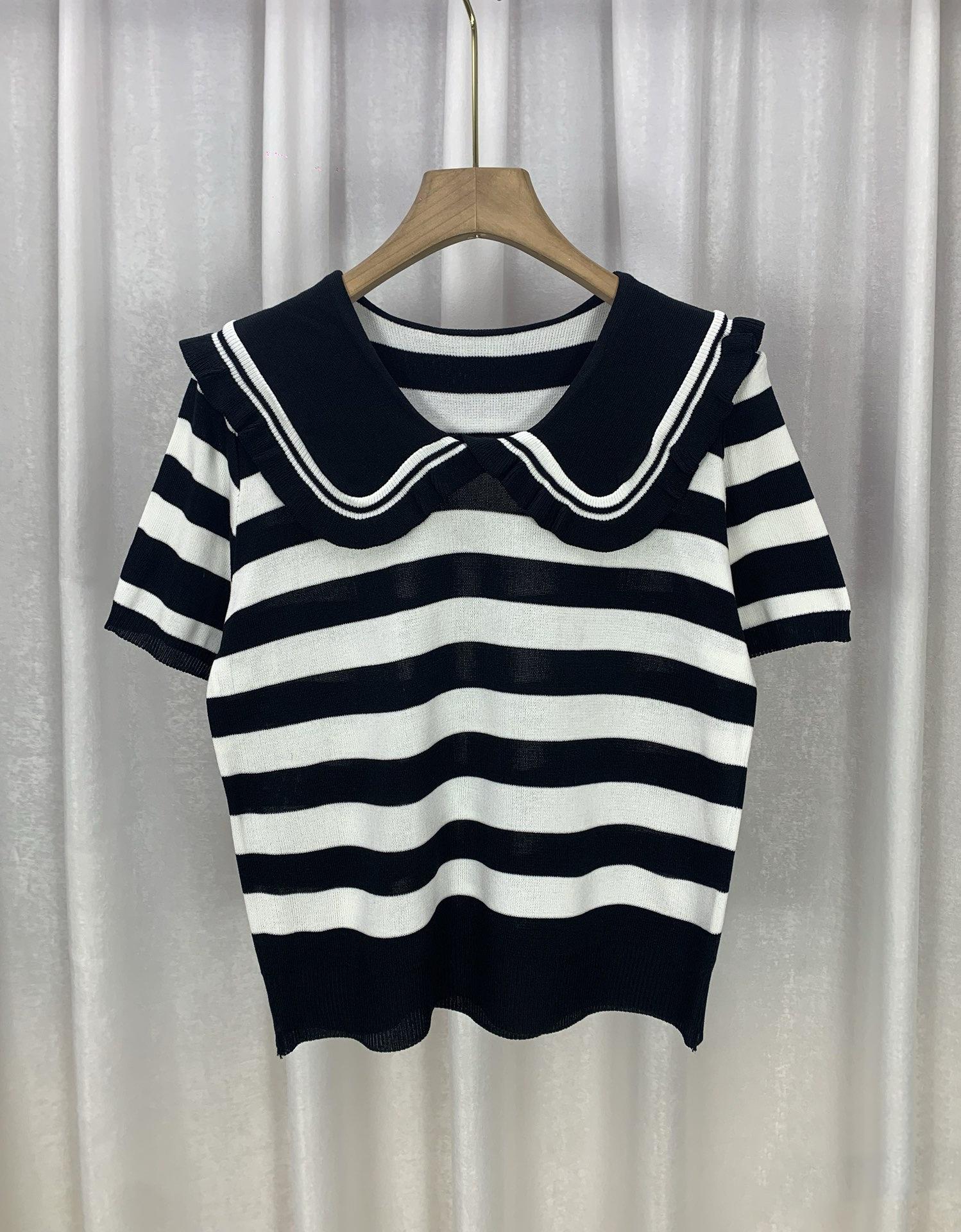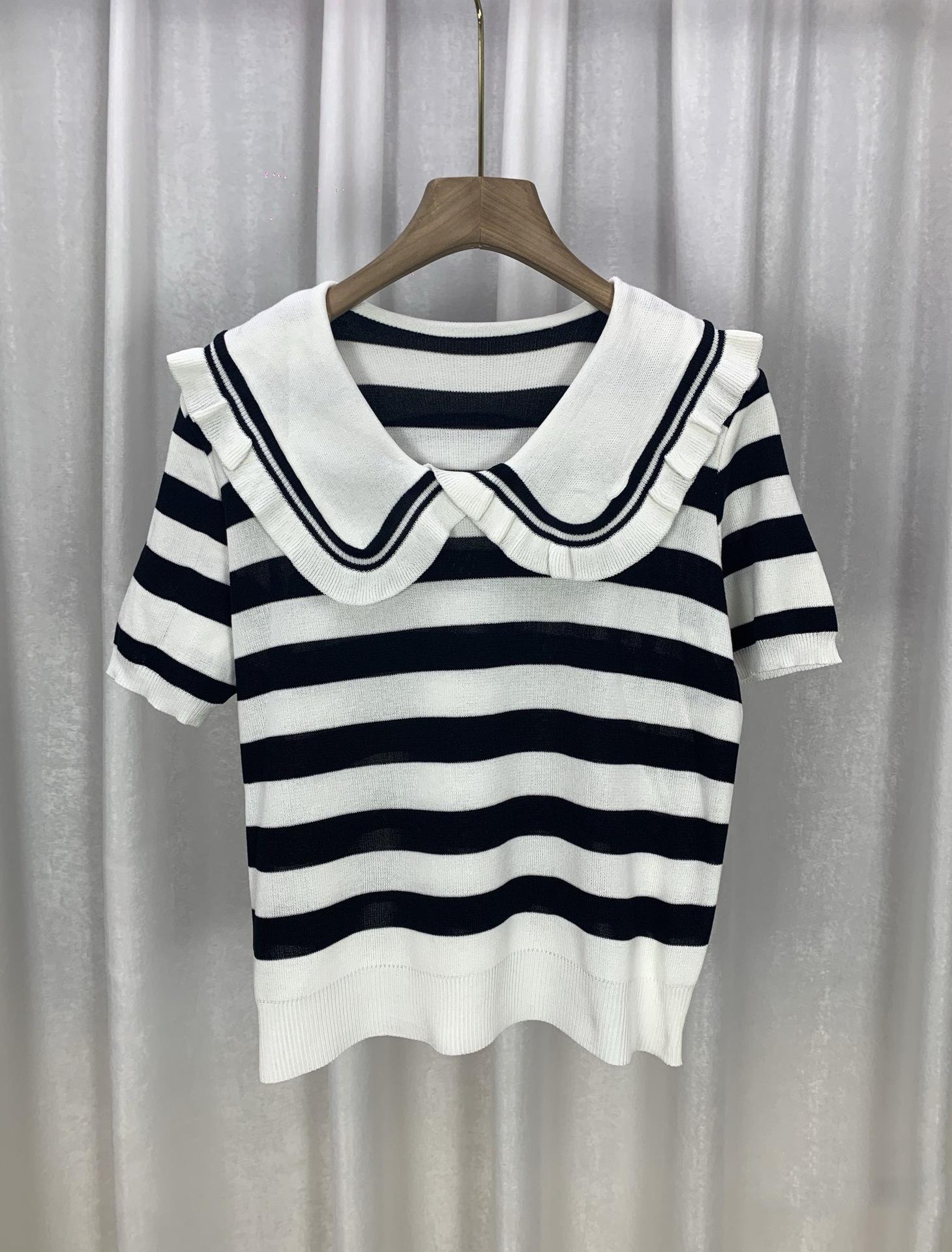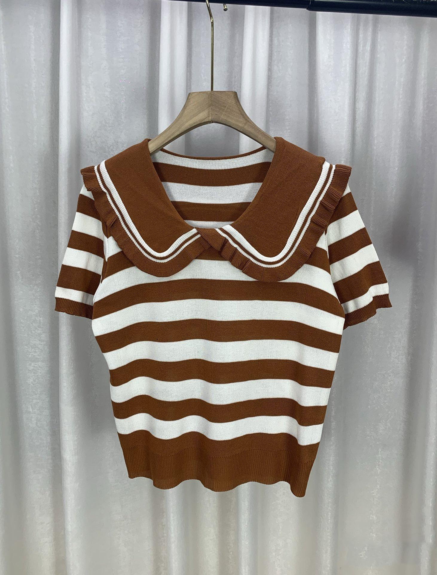 Polo para mujer suéter de manga corta 2024 adelgazante versátil chica hot retro verano nuevo top corto a rayas para mujer