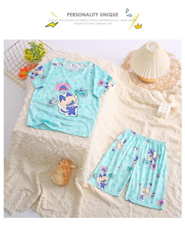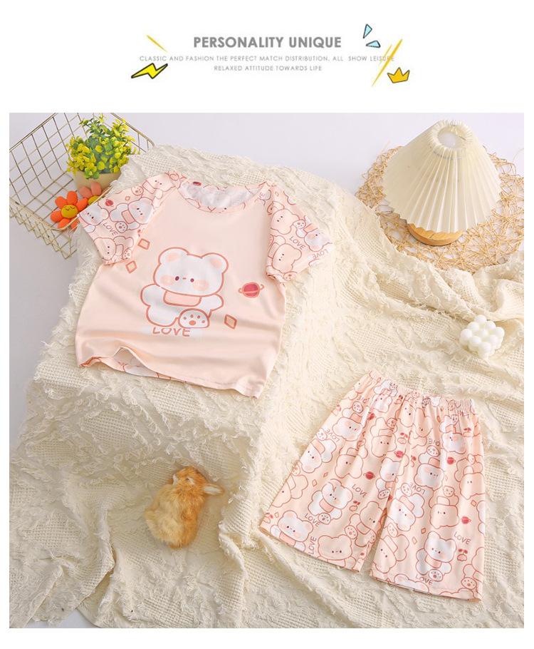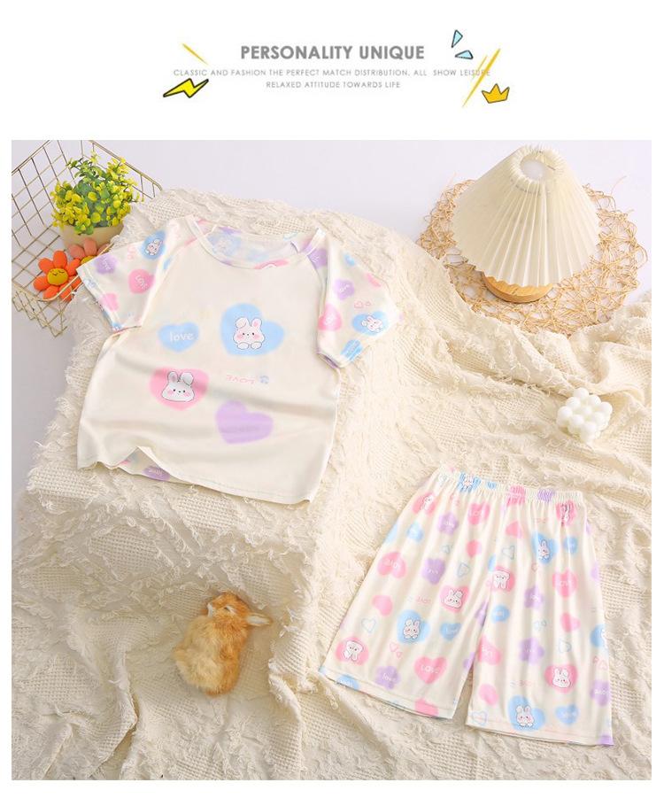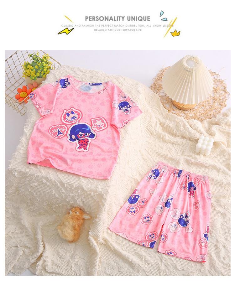 Pijamas de verano para niños, ropa fina con aire acondicionado para niños y niñas, ropa de casa para niños grandes, conjunto de verano de manga corta para niñas