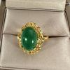 Anillo de Esmeralda Natural con Forma de Flor Hueca, Abierto, Temperamento, Estilo Corte, Retro, Floración, Jaspe